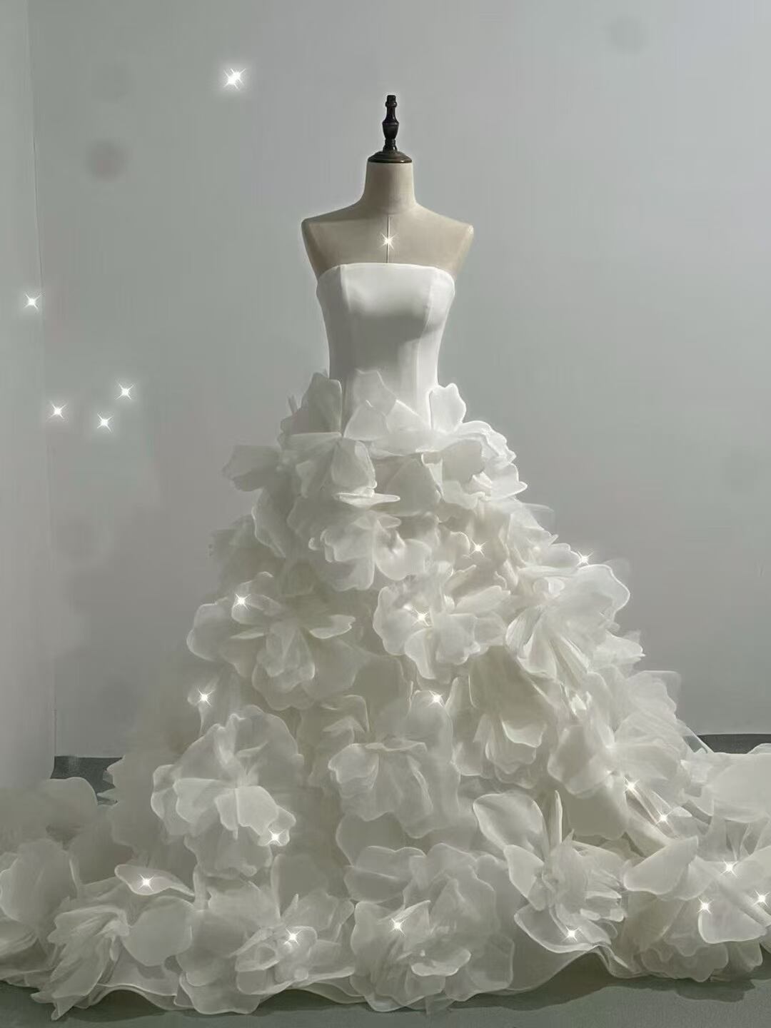 ウェディングドレス バラトレーン ベアトップ プリンセスライン 優雅なシルエット 抜群におしゃれ度が際立つ