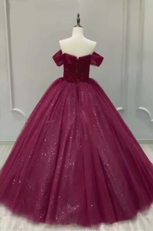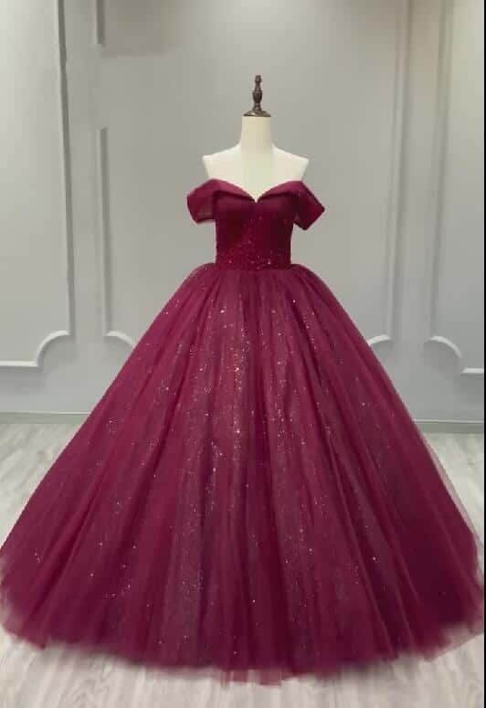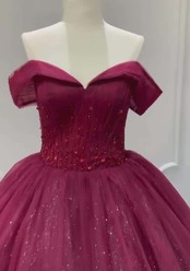 カラードレス ボルドー色 オフショルダー ハンドメイド キャミソール キラキラグリッターチュール 床付く 花嫁