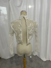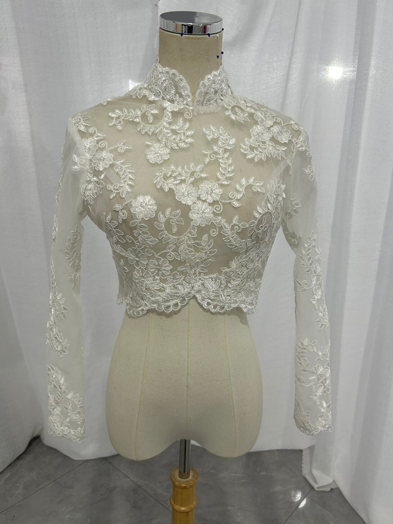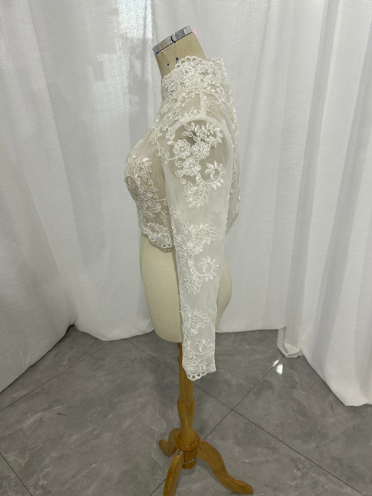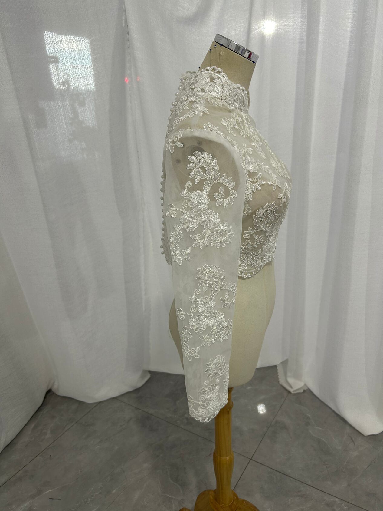 ウェディングドレス レース ボレロ パールボタン 長袖 ハイネック 結婚式 披露宴 二次会 前撮り