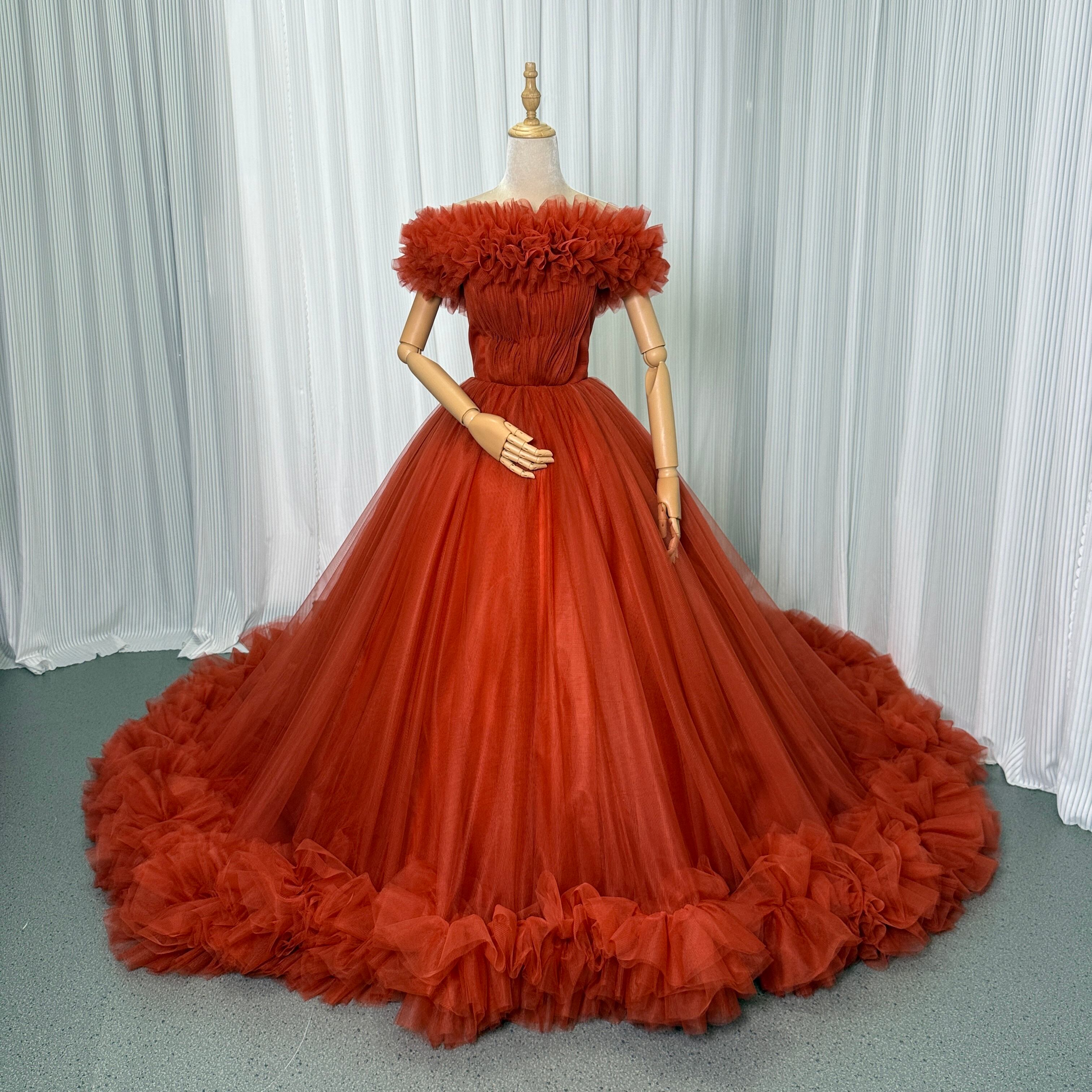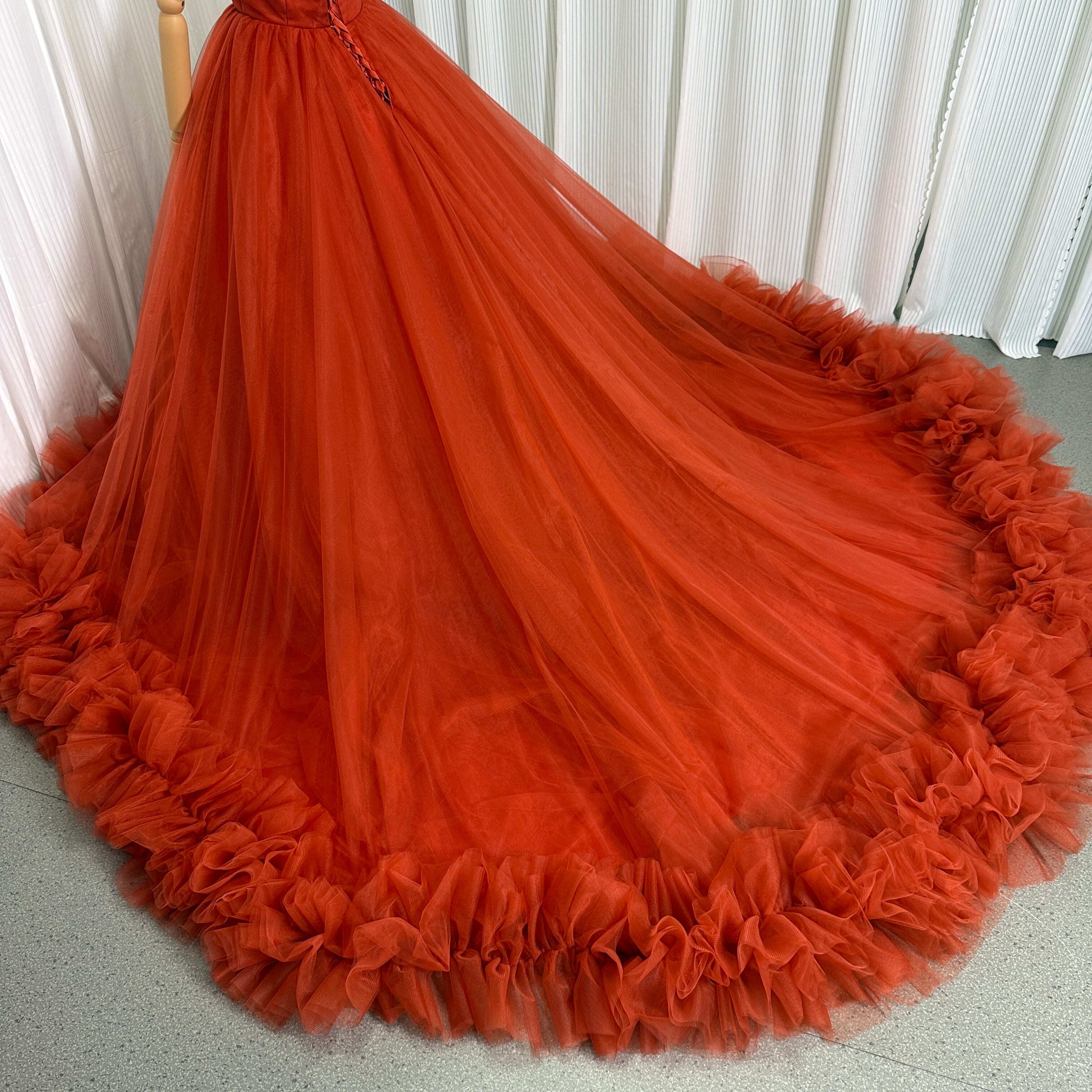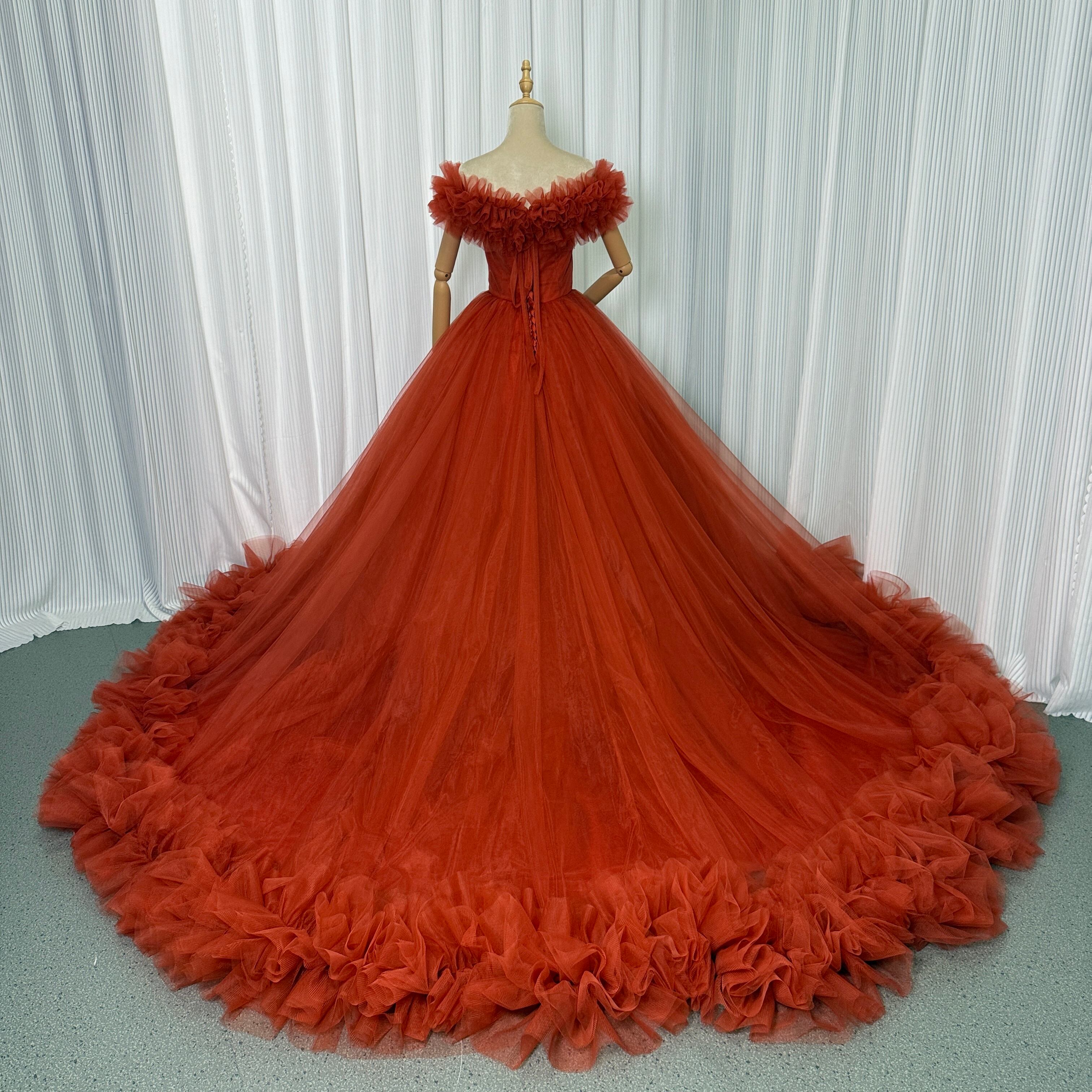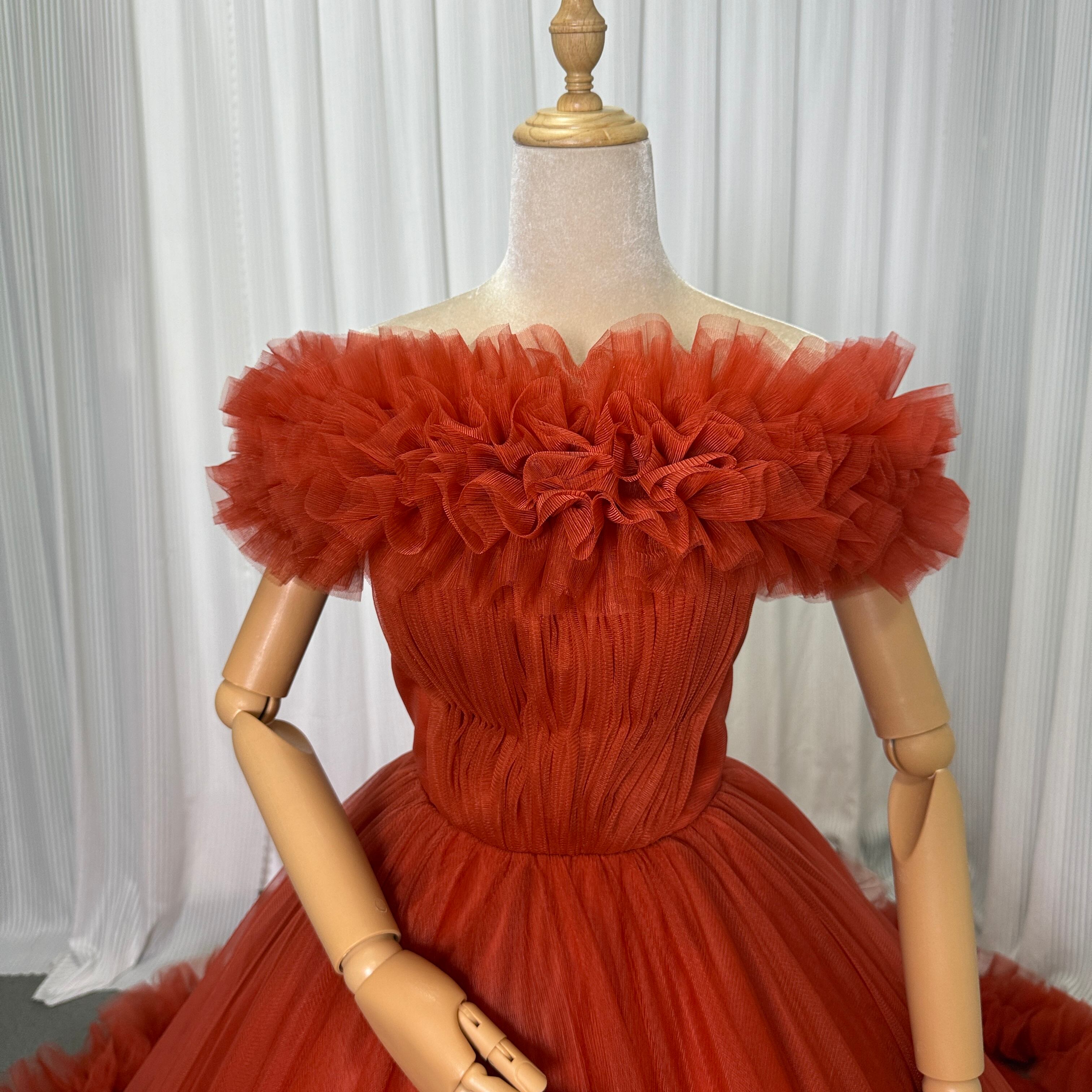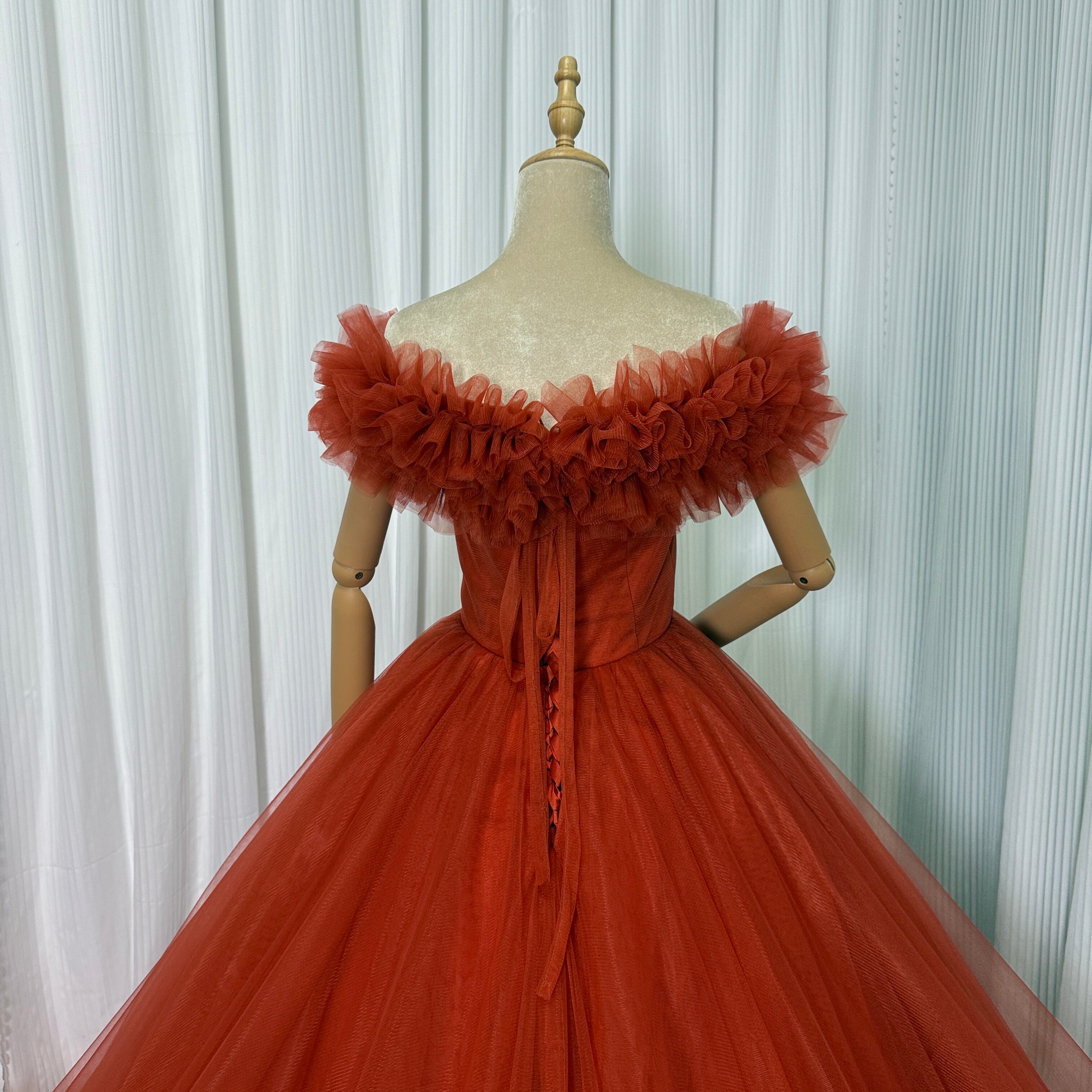 カラードレス 取り外しオフショルダー テラコッタ色 ラッフルフリル プリンセスライン ブライダル 結婚式