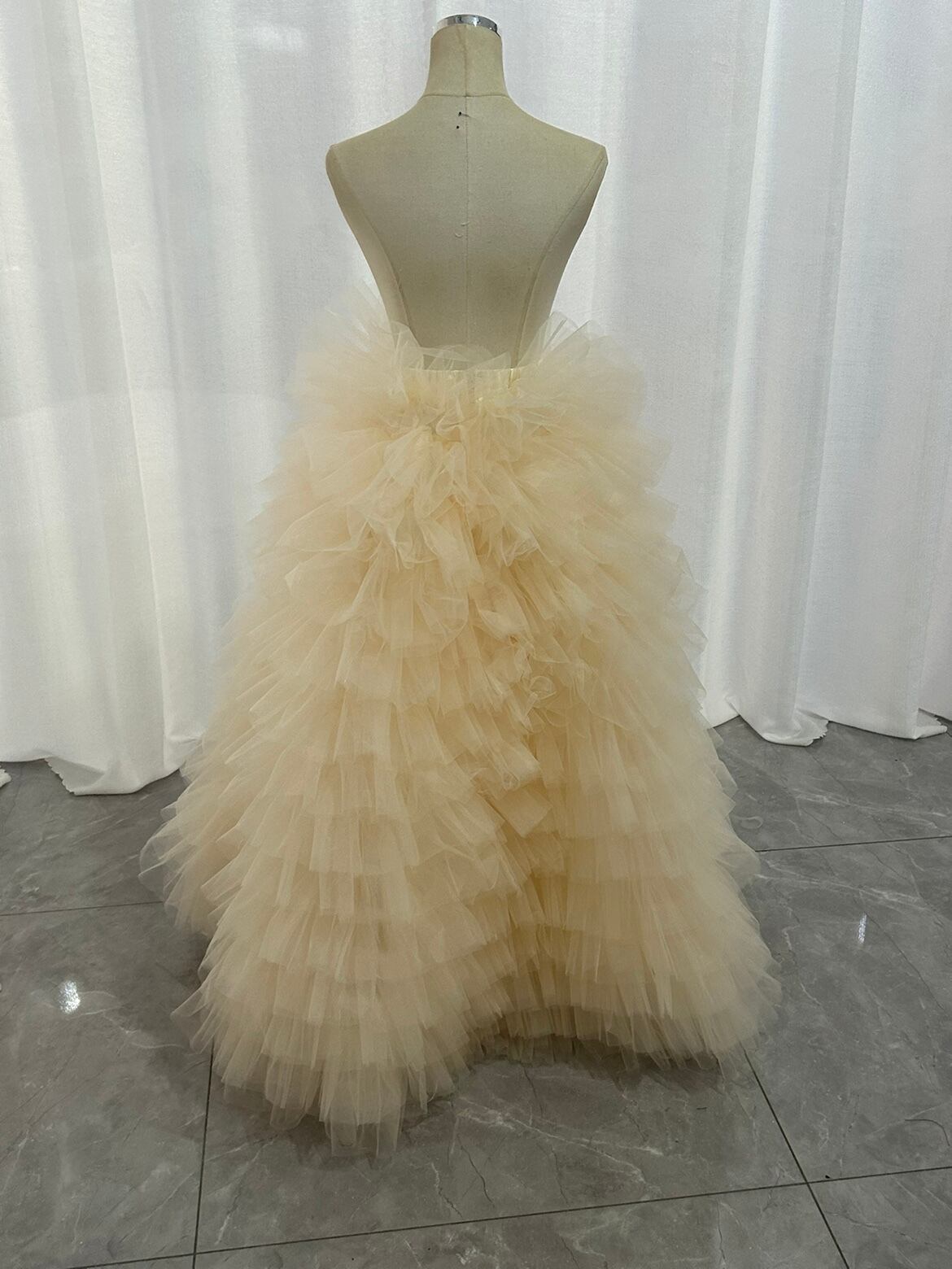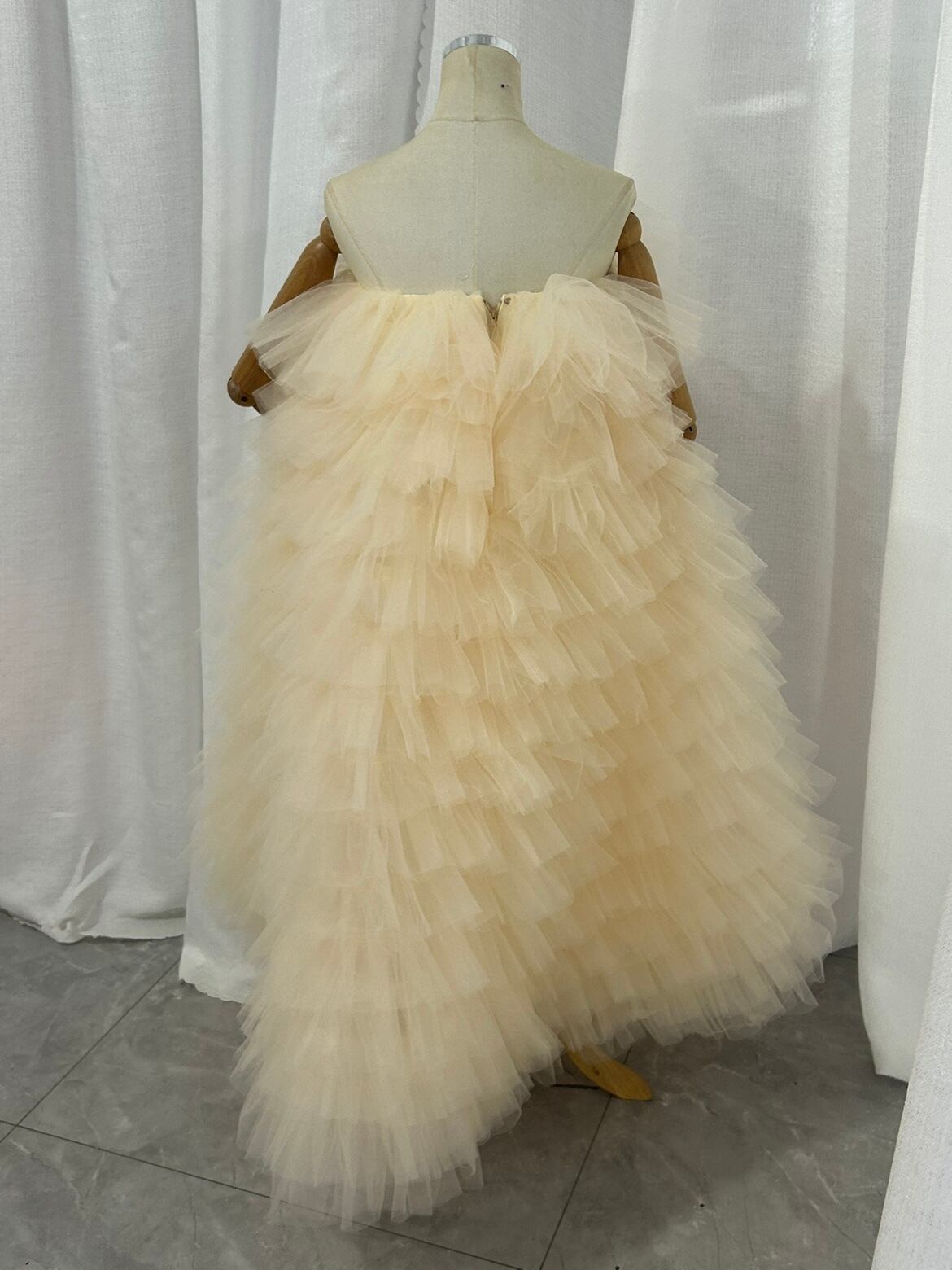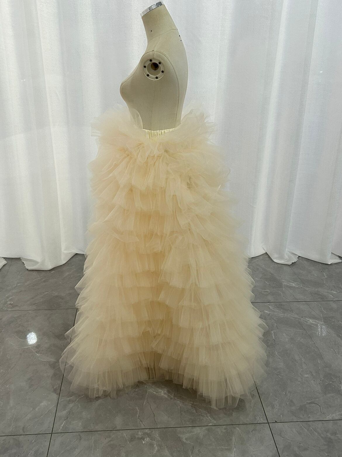 オーバースカート カラードレス 薄シャンパン色 柔らかく重ねたチュールスカート ストレッチ 花嫁 前撮り
