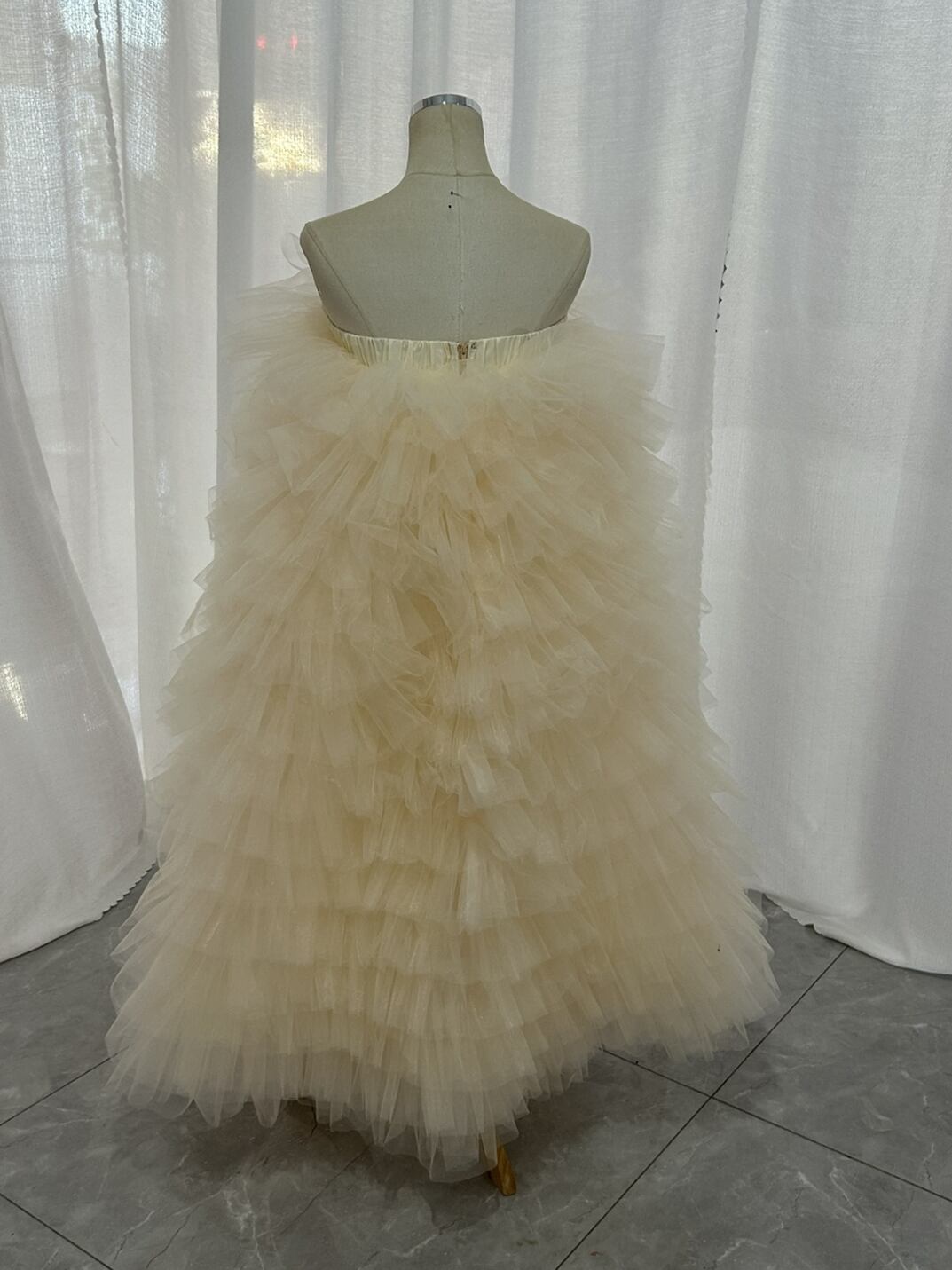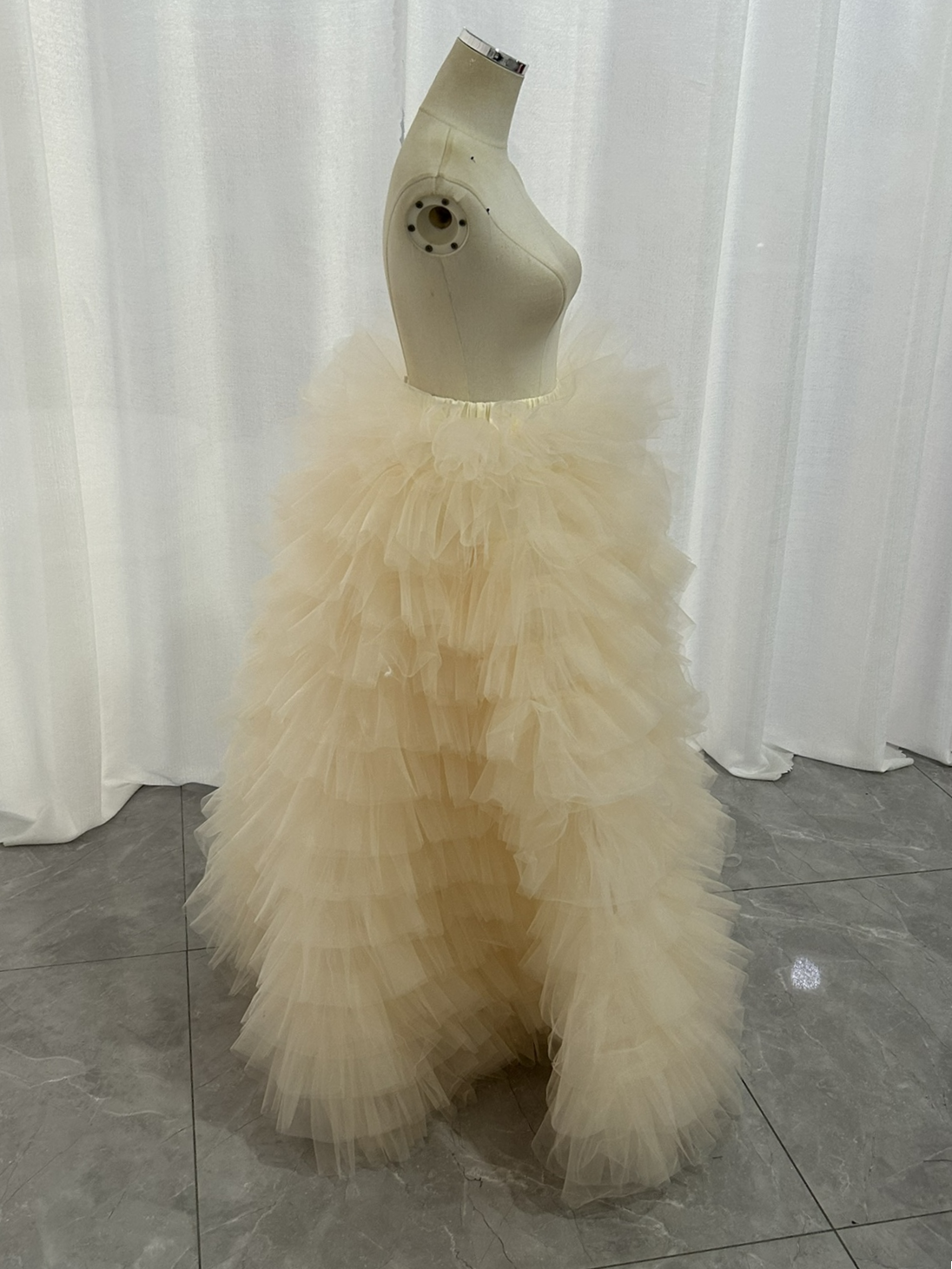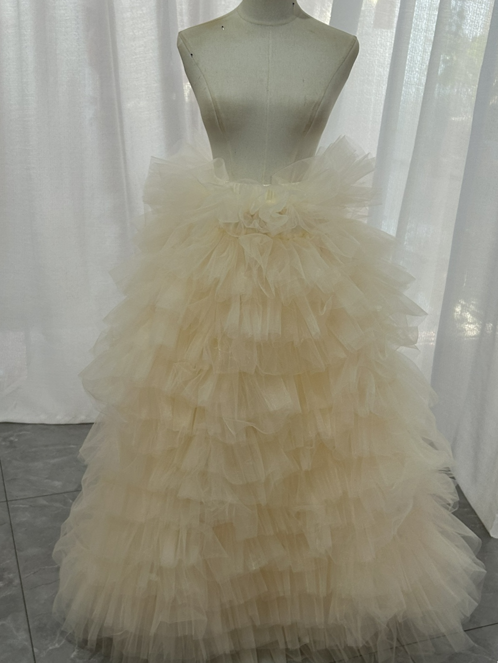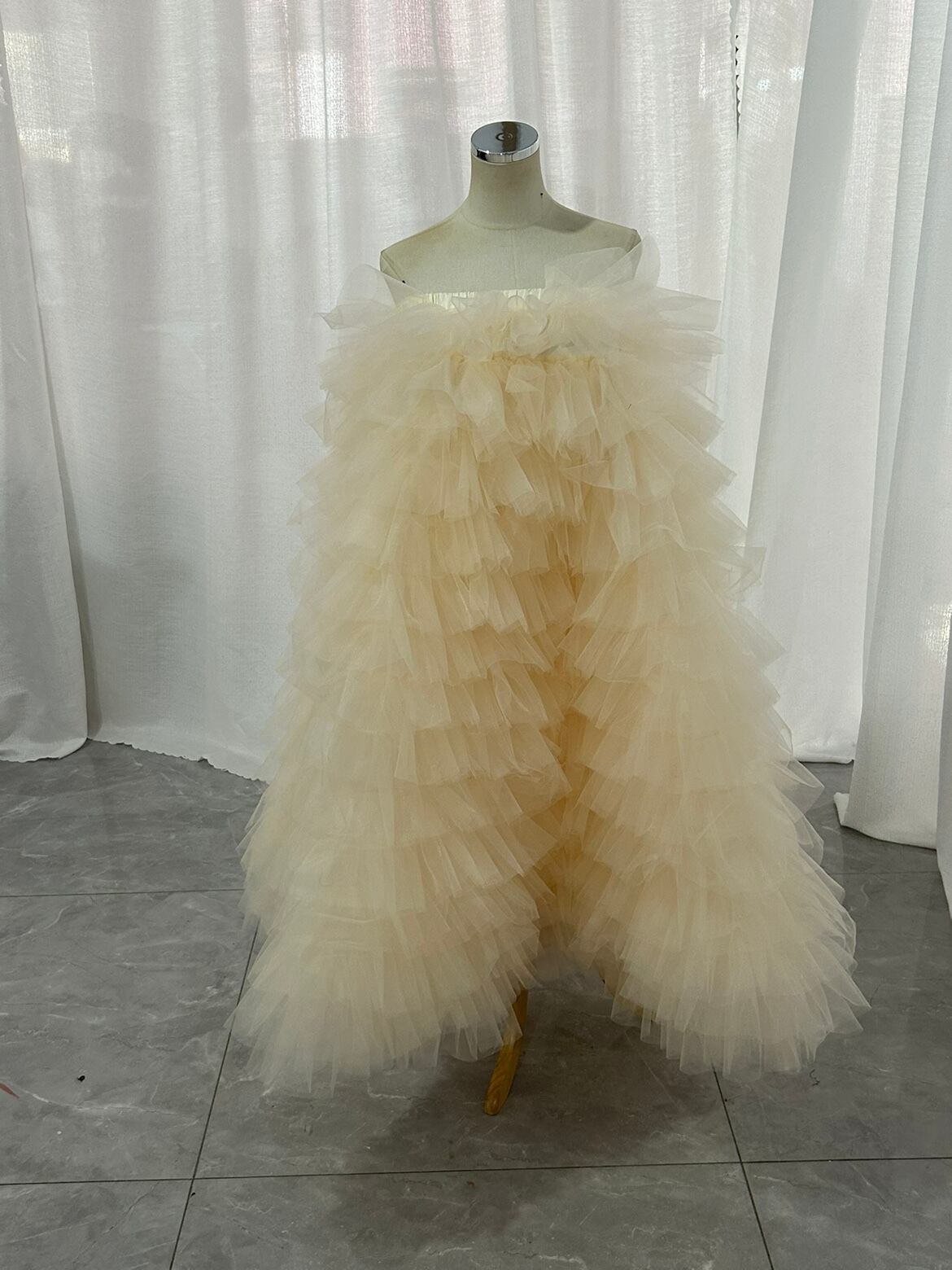 オーバースカート カラードレス 薄シャンパン色 柔らかく重ねたチュールスカート ストレッチ 花嫁 前撮り
