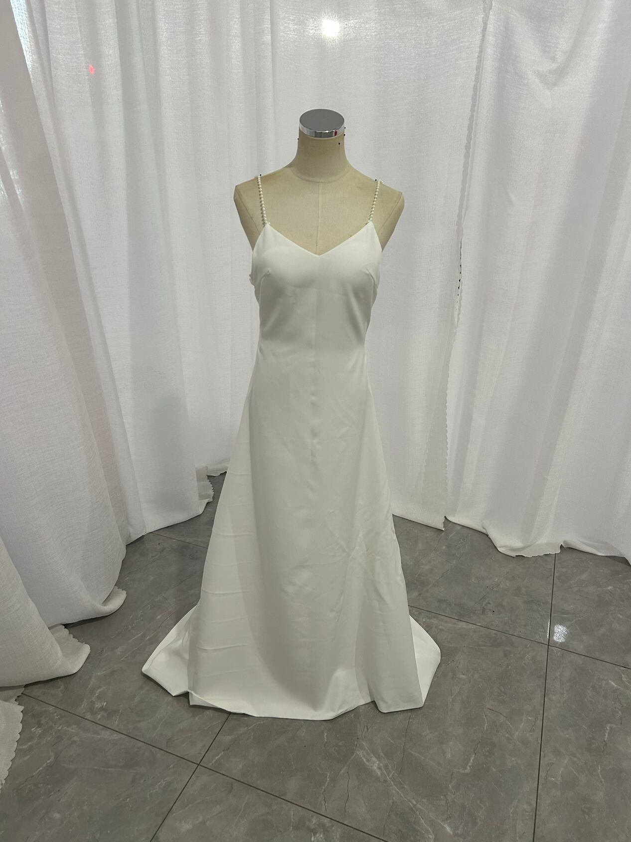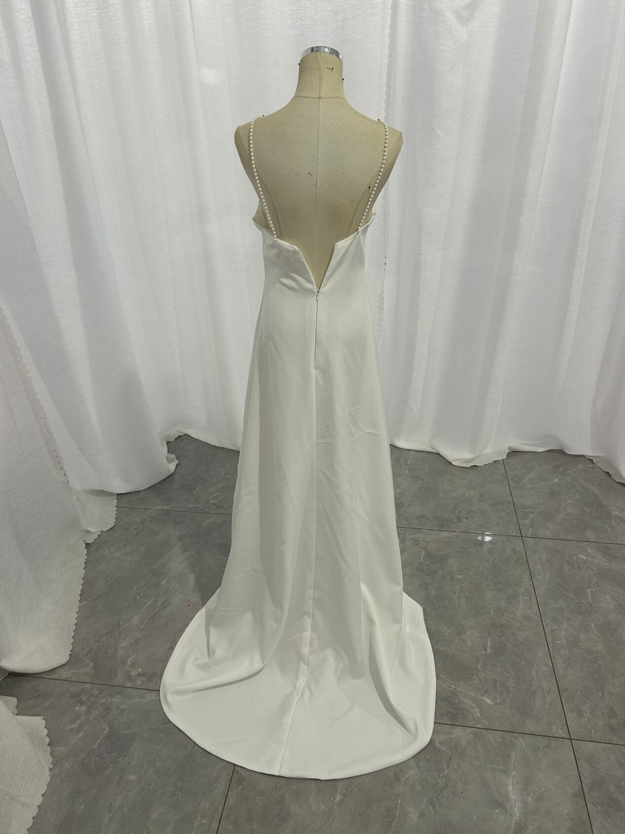 パーティードレス キャミソール ビーズ 背中見せ ファスナー 細見えシルエット Vネックドレス ブライダル