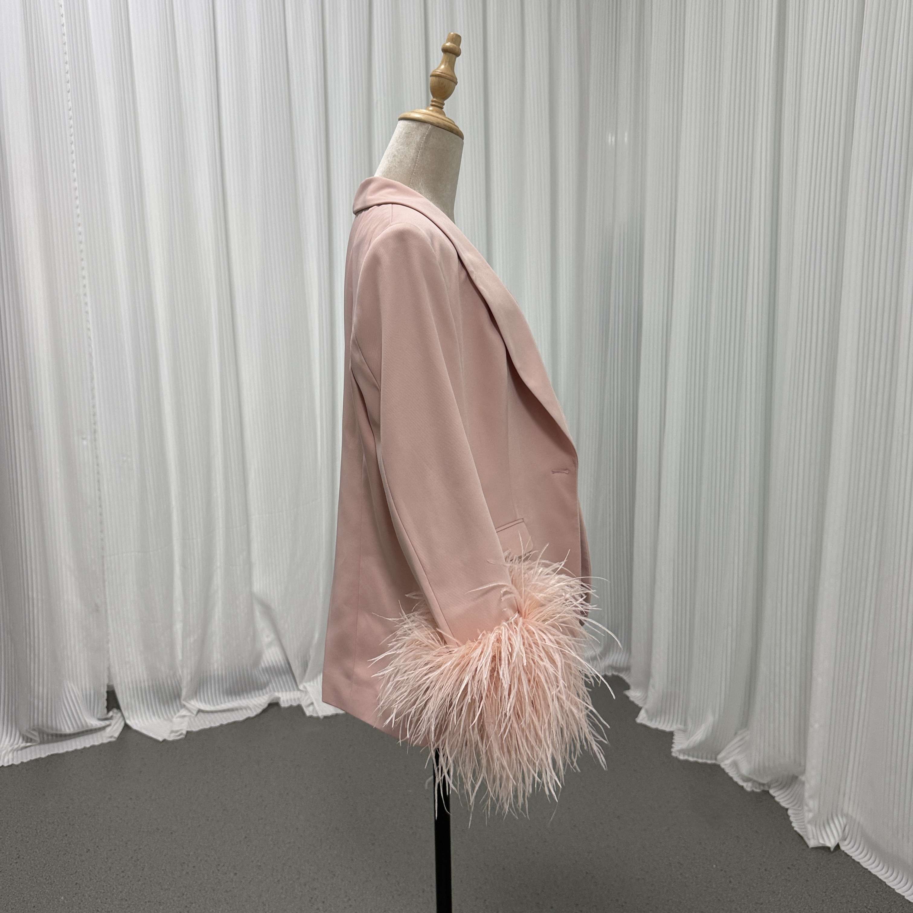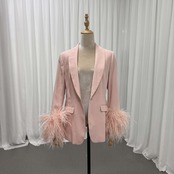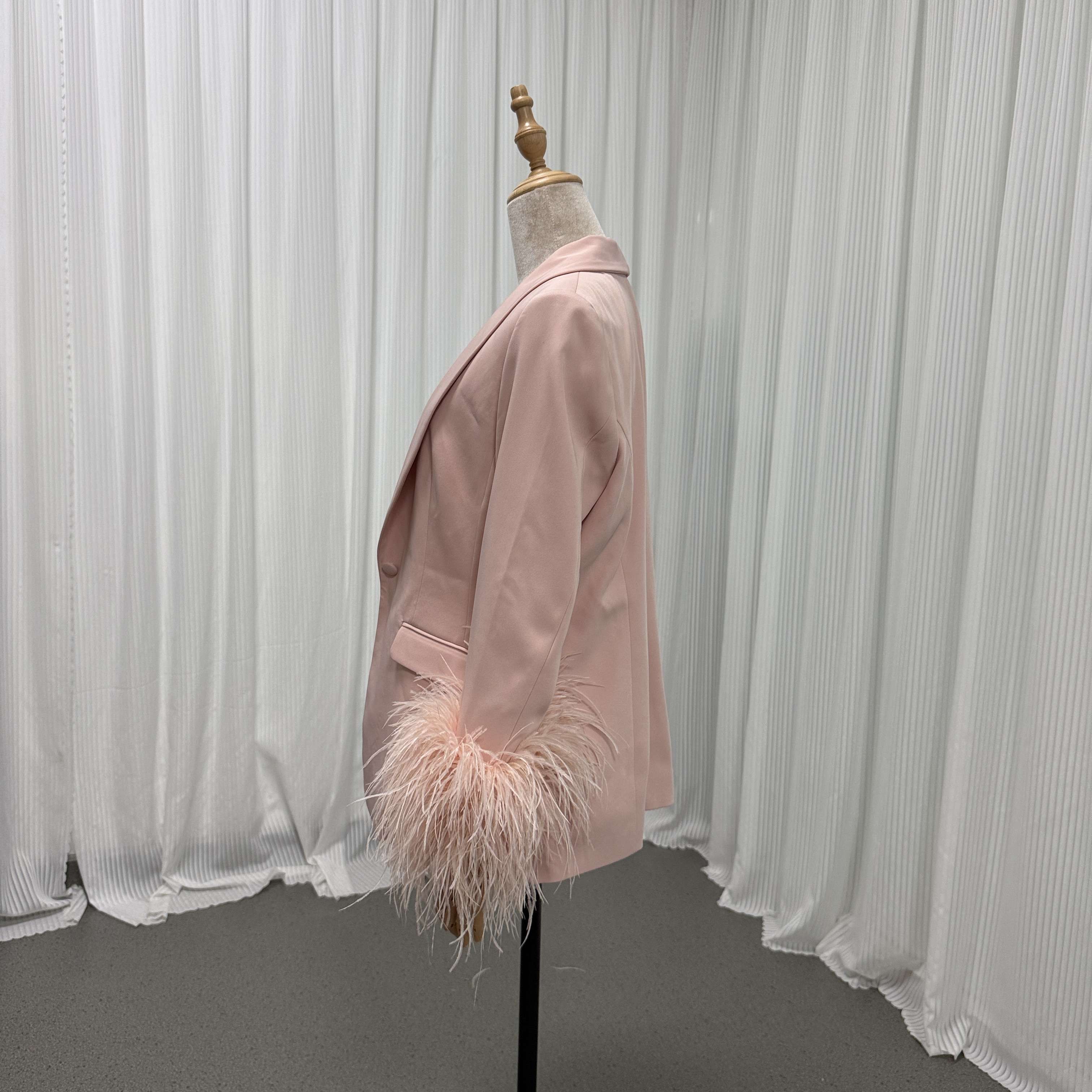 ジャケット ピンク フェザー 前撮り 発表会など 裾引き 抜群におしゃれ度が際立つ オーダーメイド