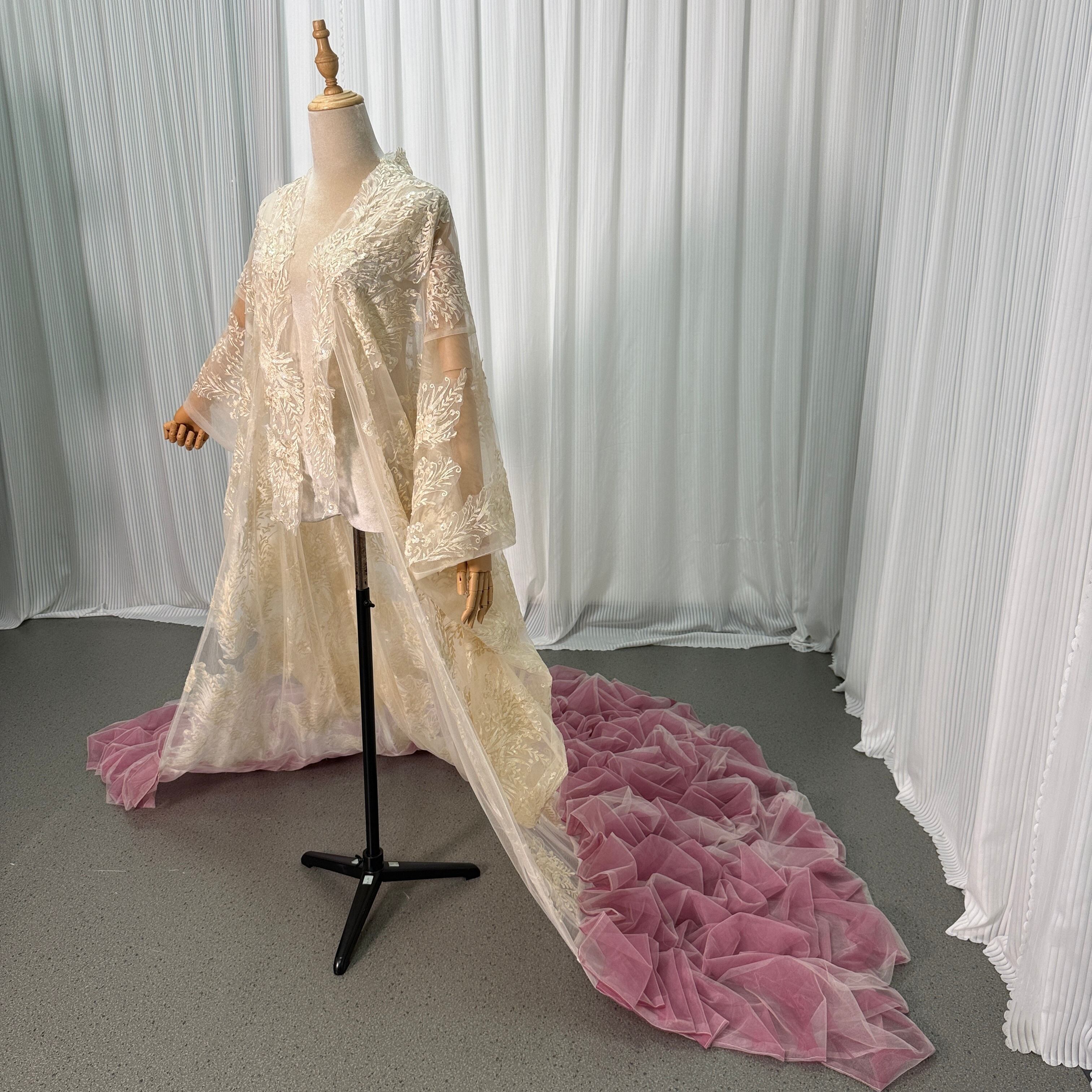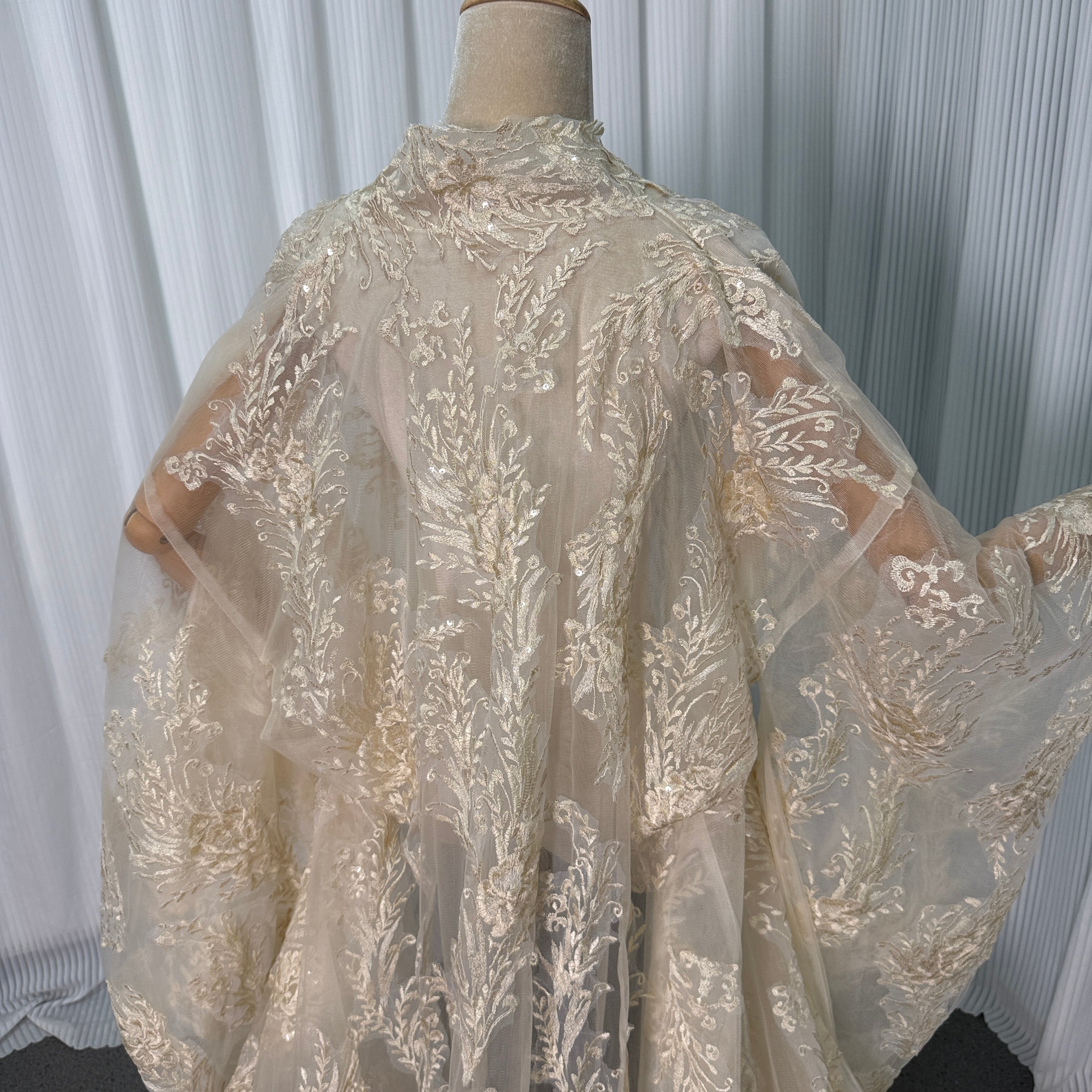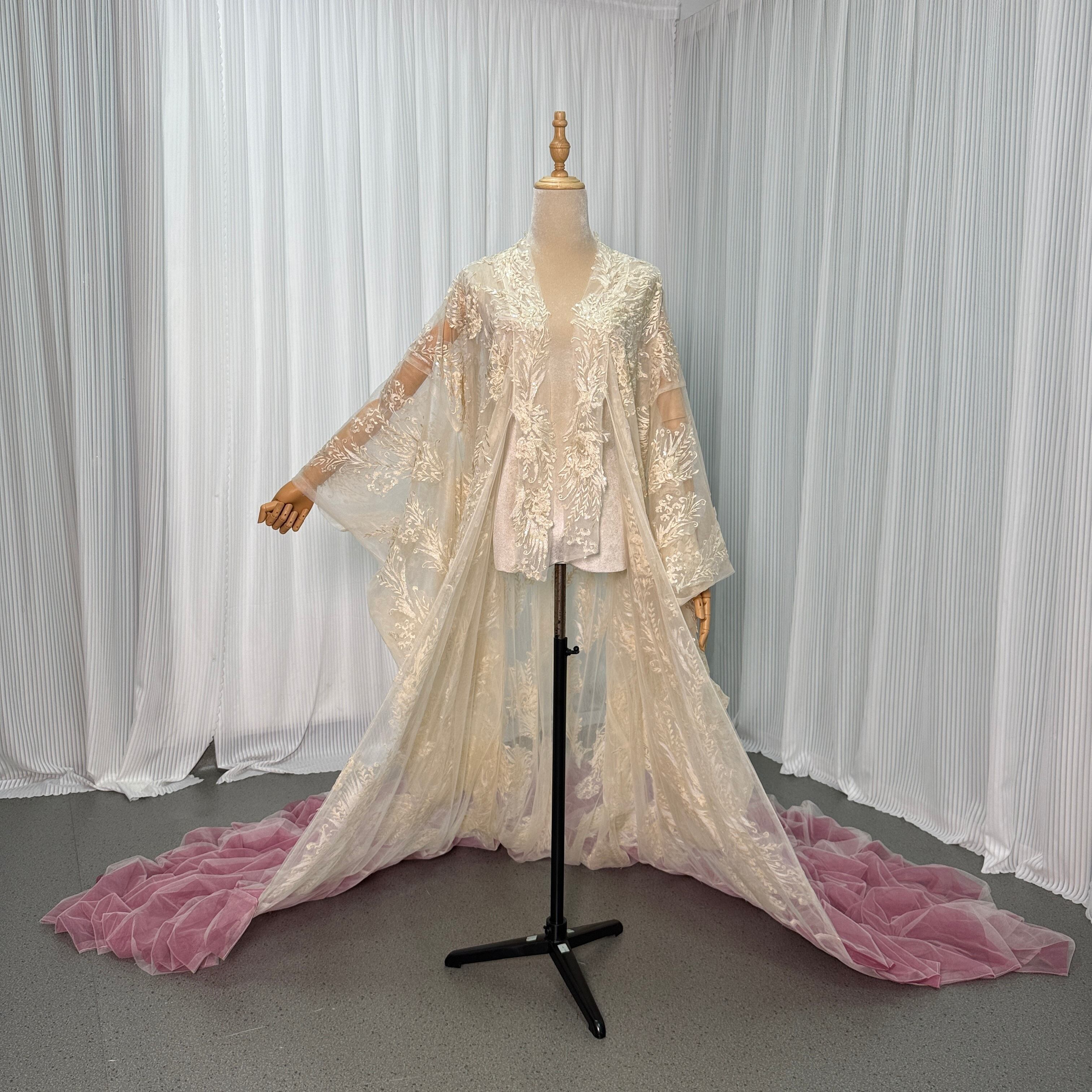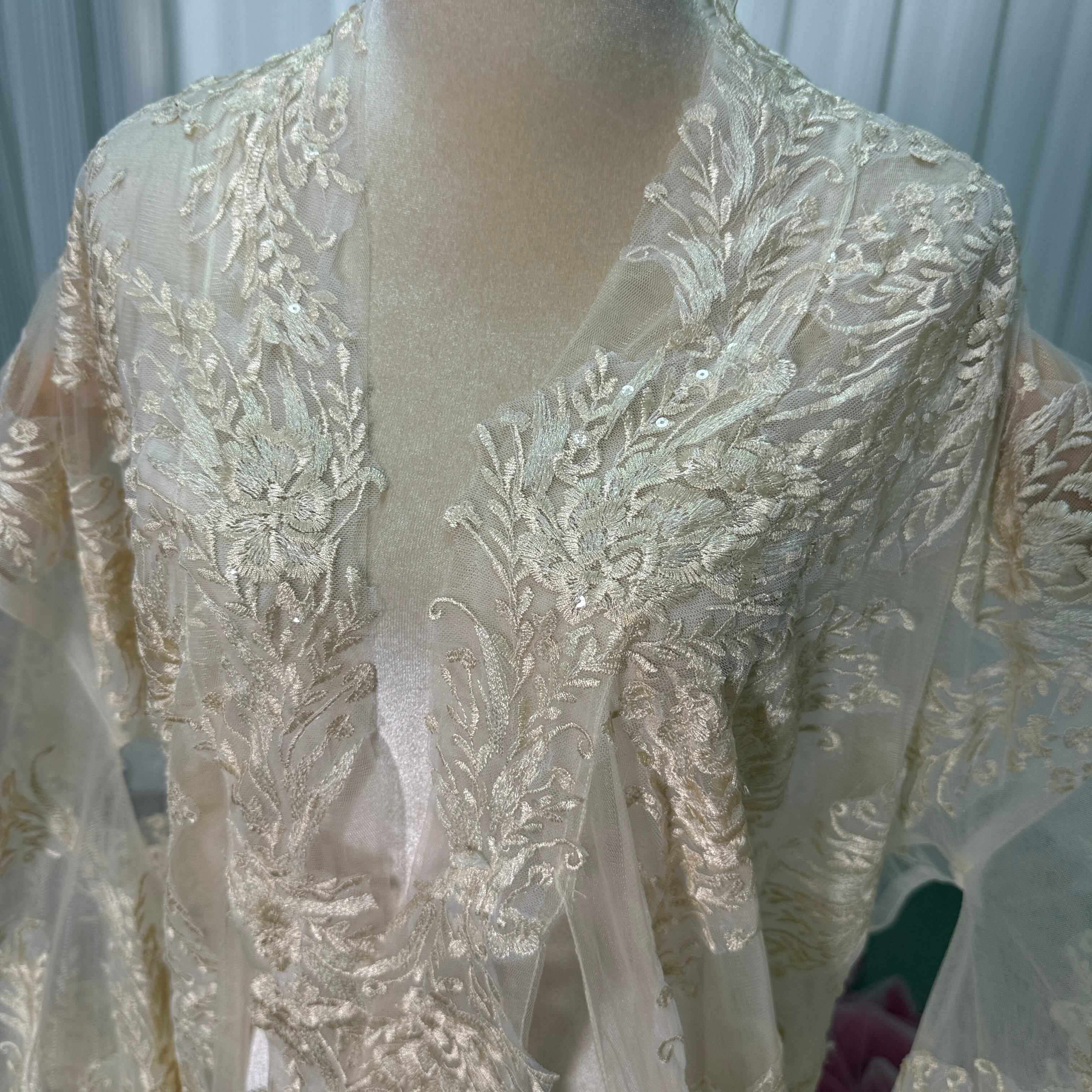 薄シャンパンの色 ソフトチュール 打掛 着物 オーバードレス レース羽織 お色直し 精緻な刺繍