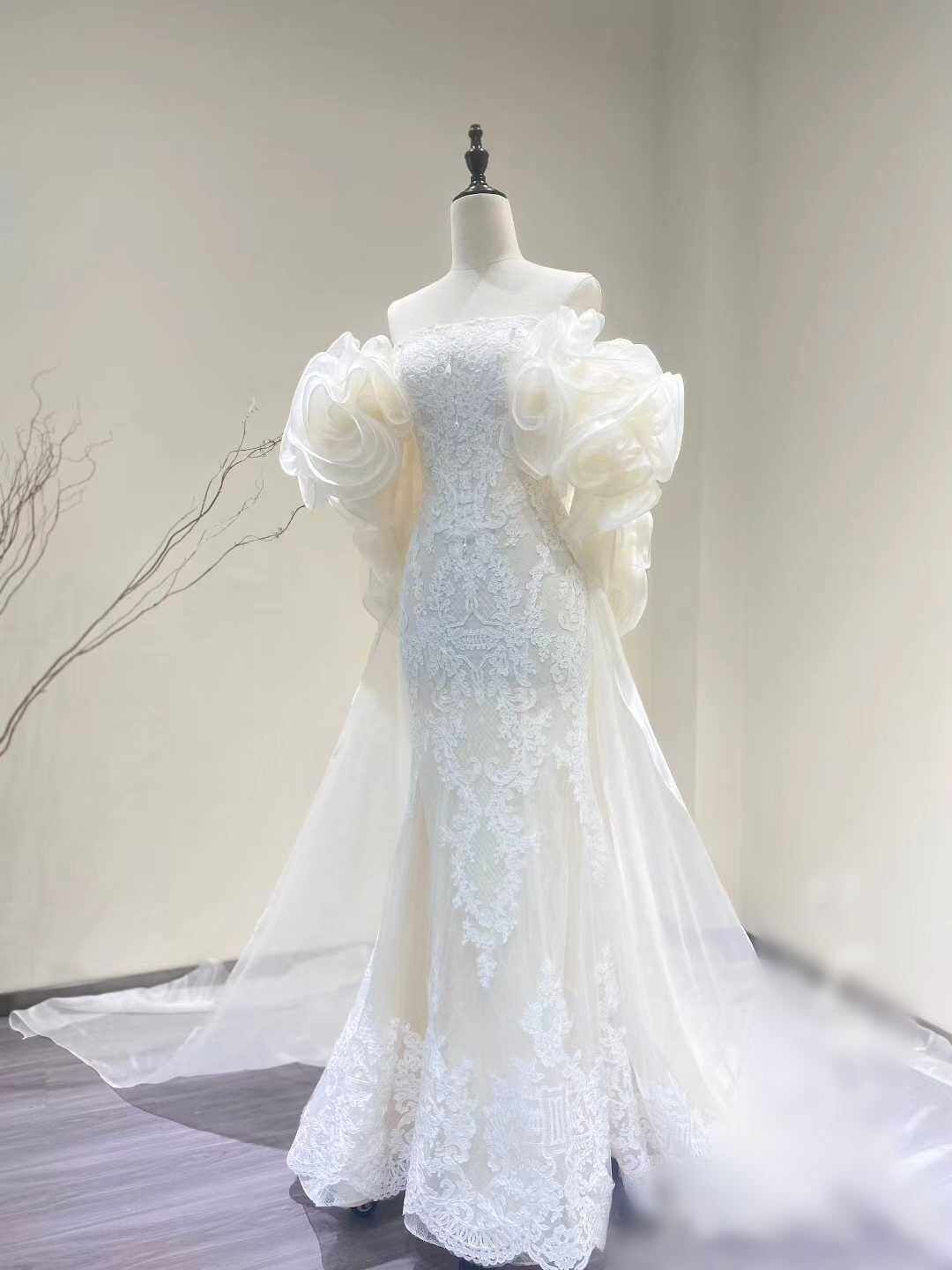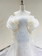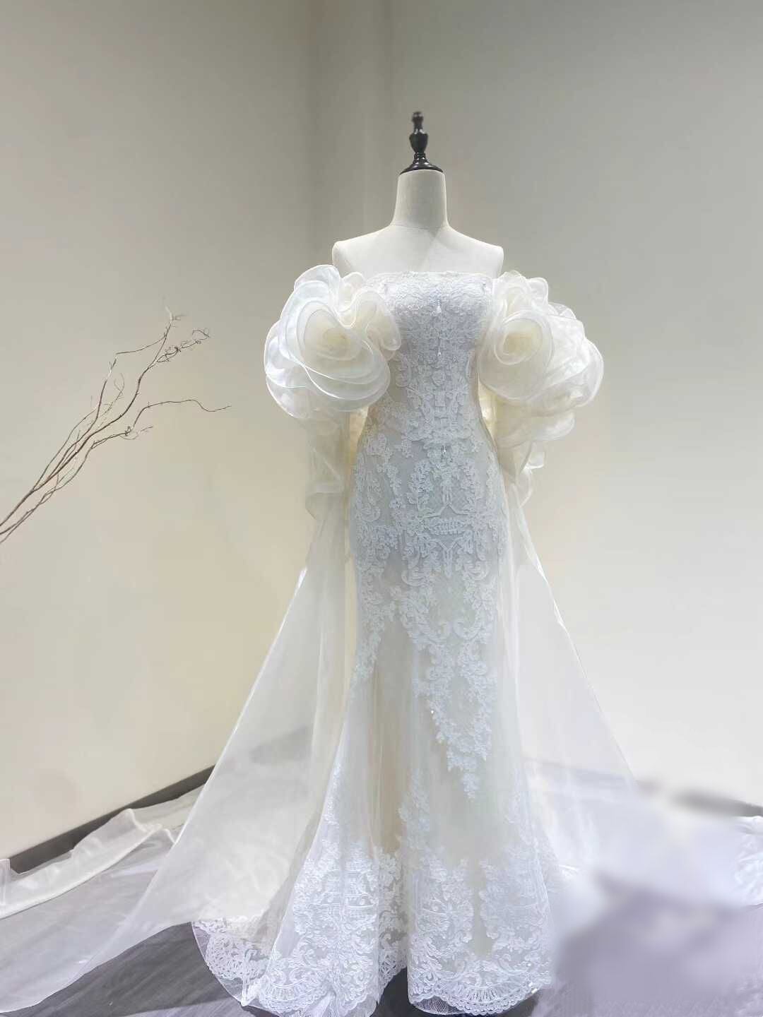 ウェディングドレス バラトレーン マーメイドライン トレーン 贅沢な小花柄の総レース 憧れのドレス 花嫁
