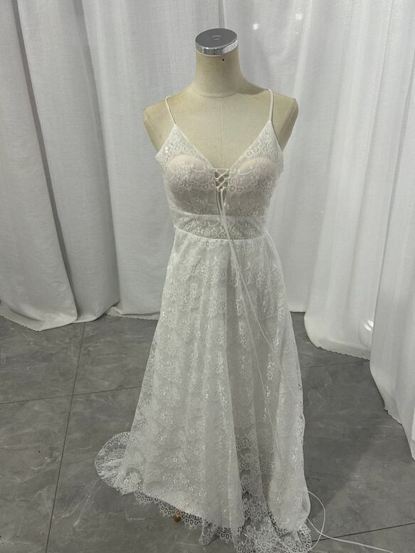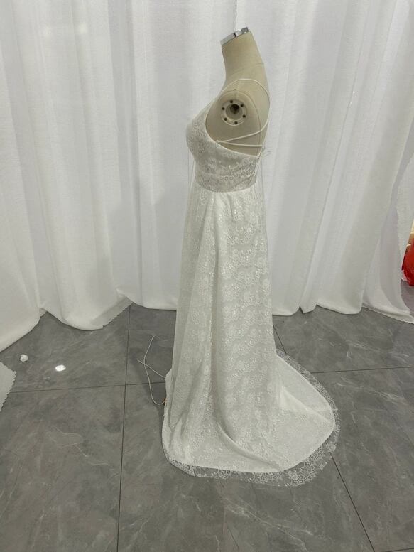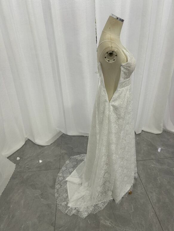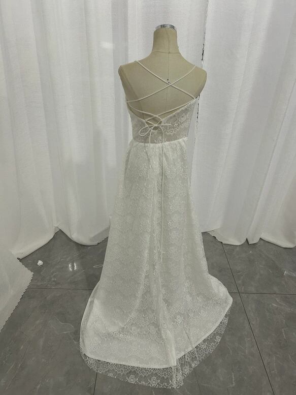 ウェディングドレス キャミソール 背中見せ 贅沢な小花柄の総レース ファスナー Aライン 花嫁 前撮り