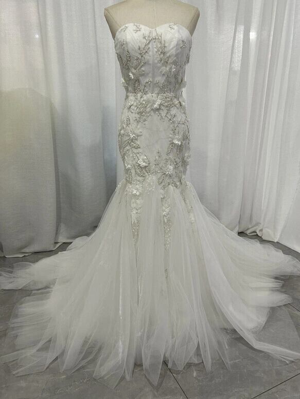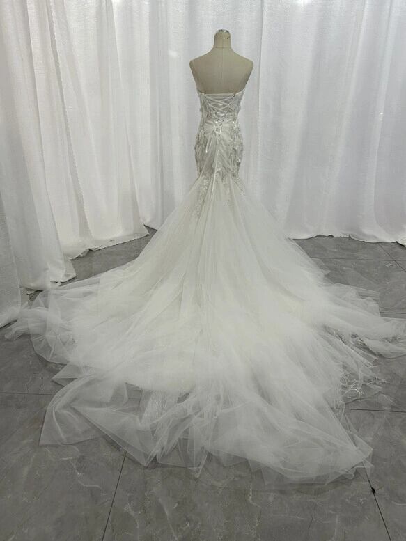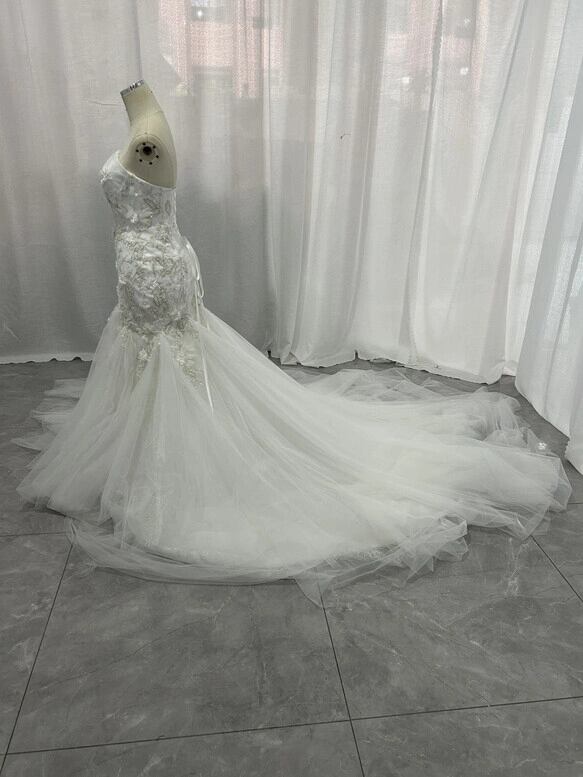 韓国風 カラードレスキラキラチュール華やかなトレーン マーメイドライン結婚式/披露宴