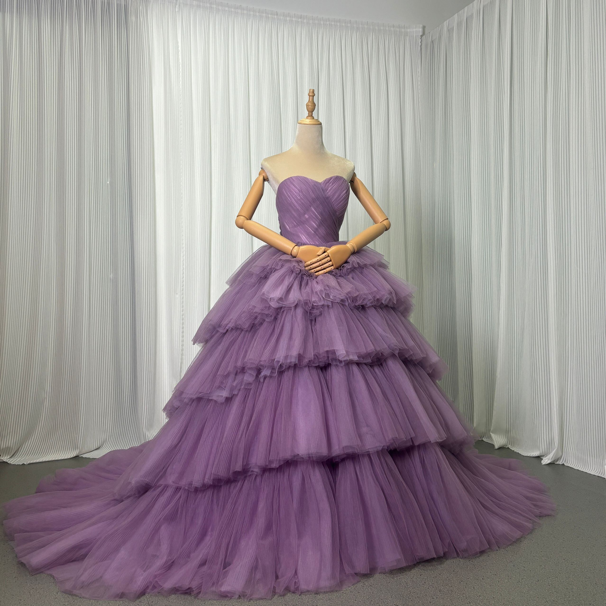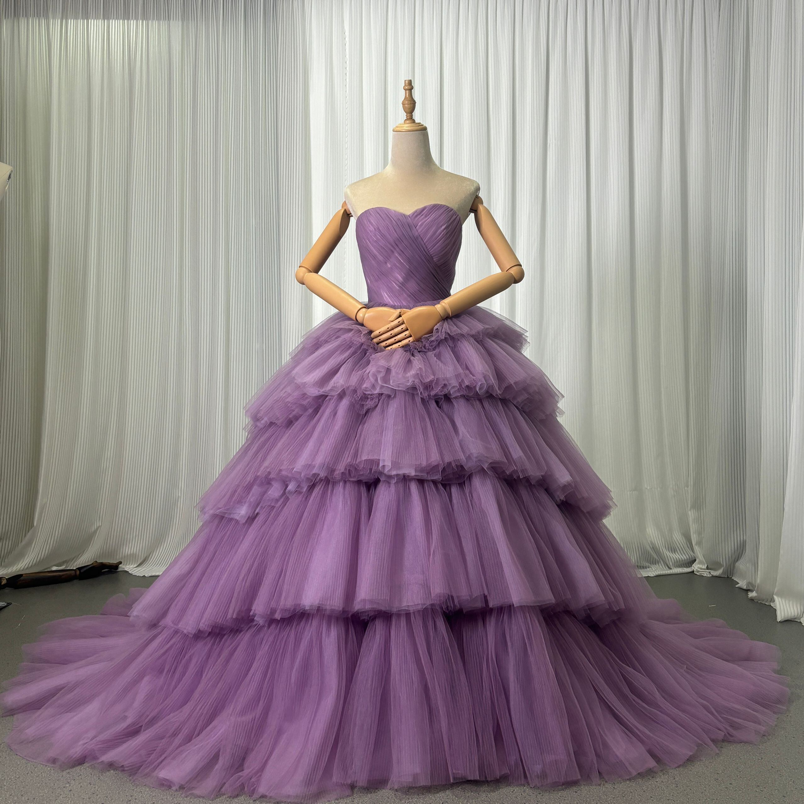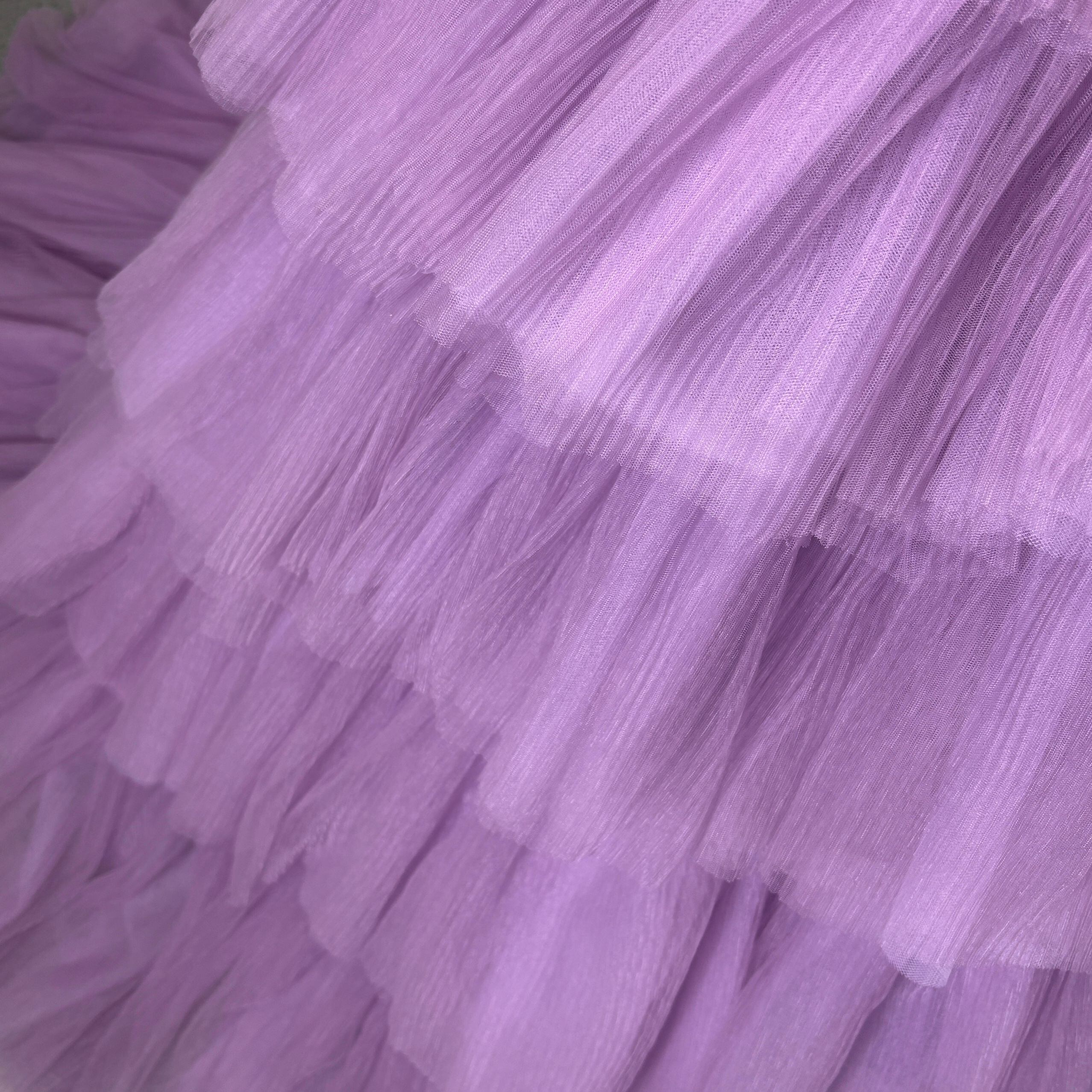 カラードレス ベアトップ プリーツドレス ティアードのドレス パープル エレガント プリンセスライン
