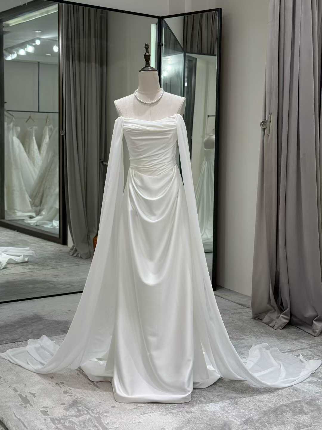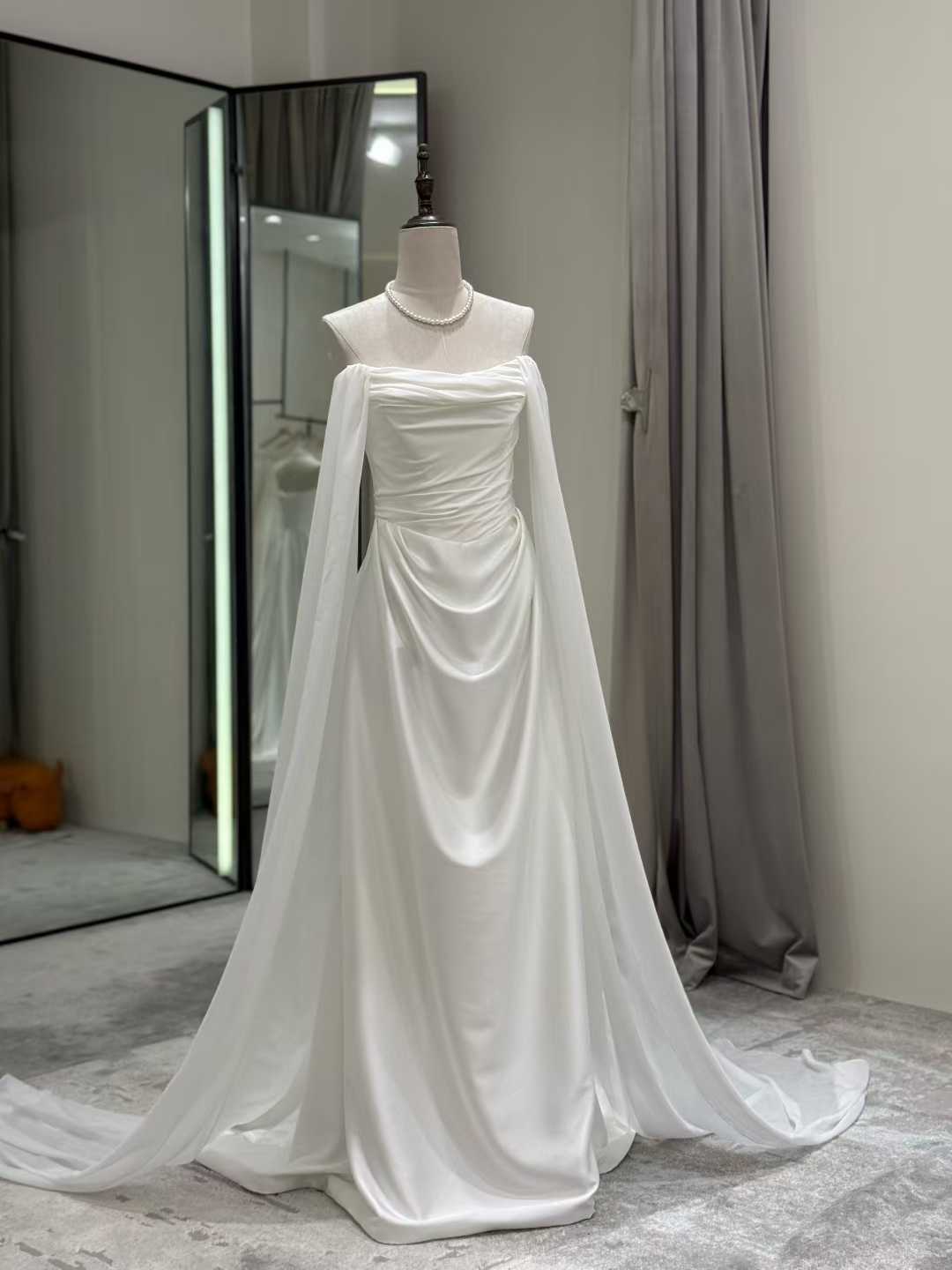 ウェディングドレス ハンドドレープ ふわふわ袖 ソフトマーメイドライン エアリー感 細見えシルエット 結婚式