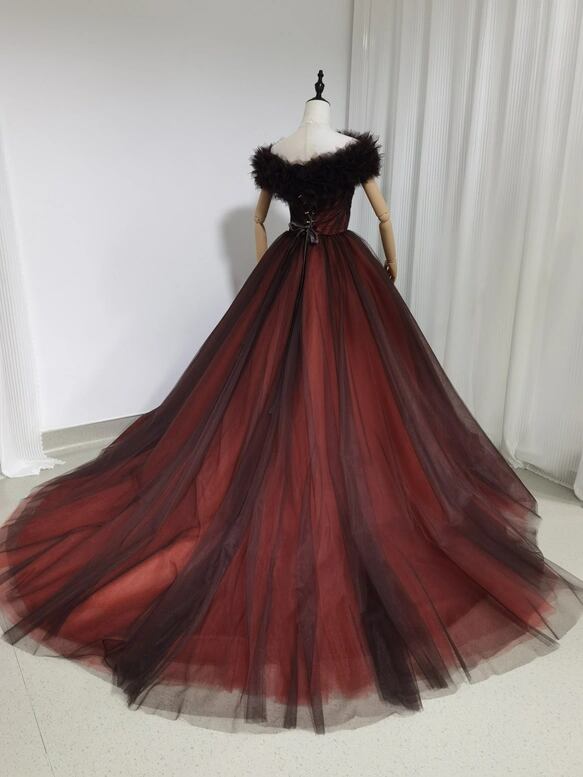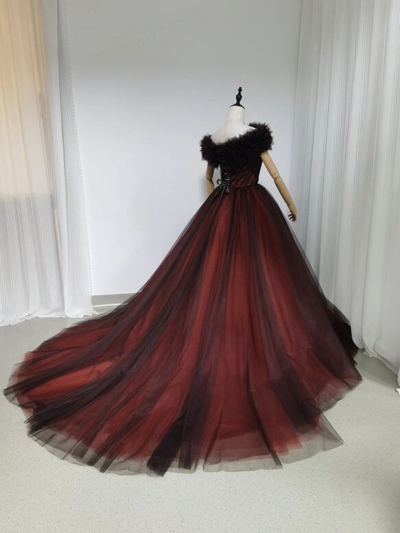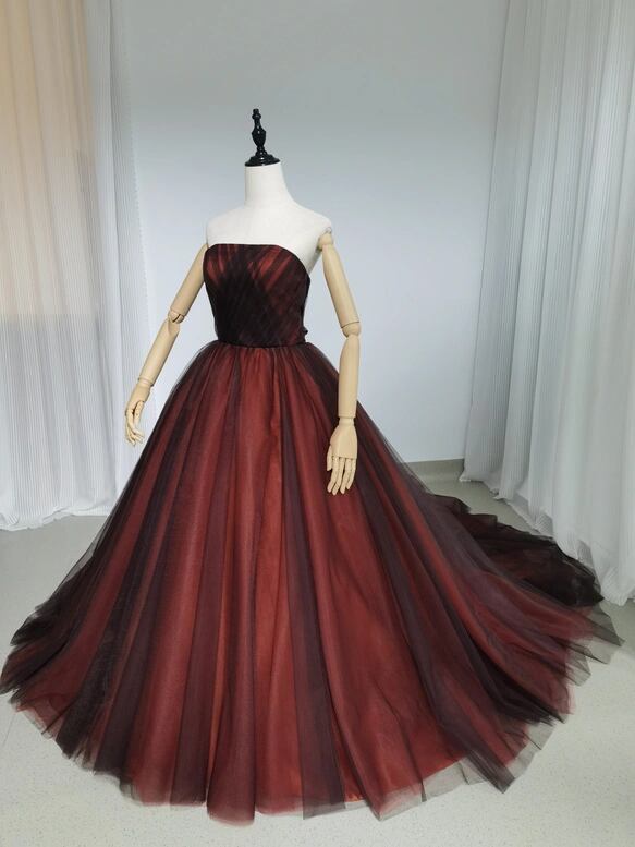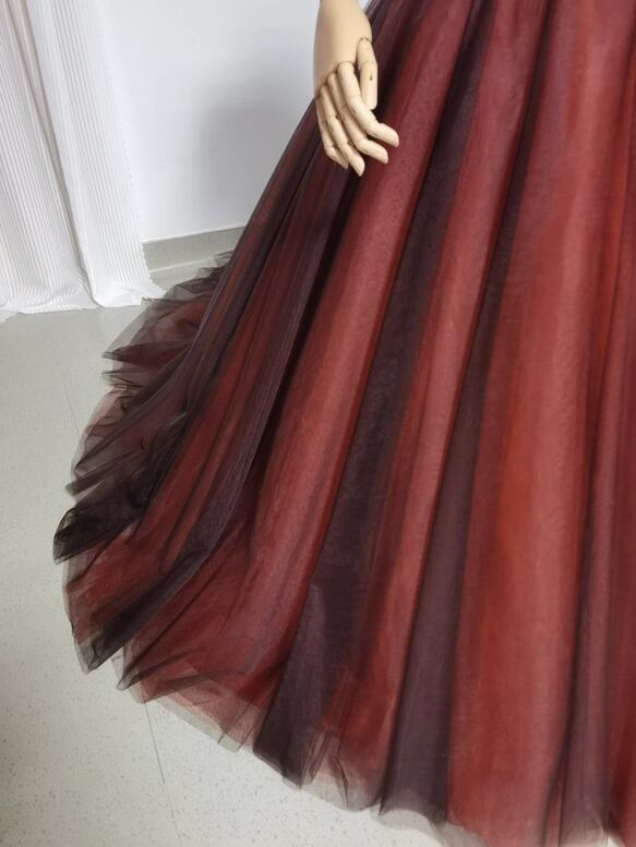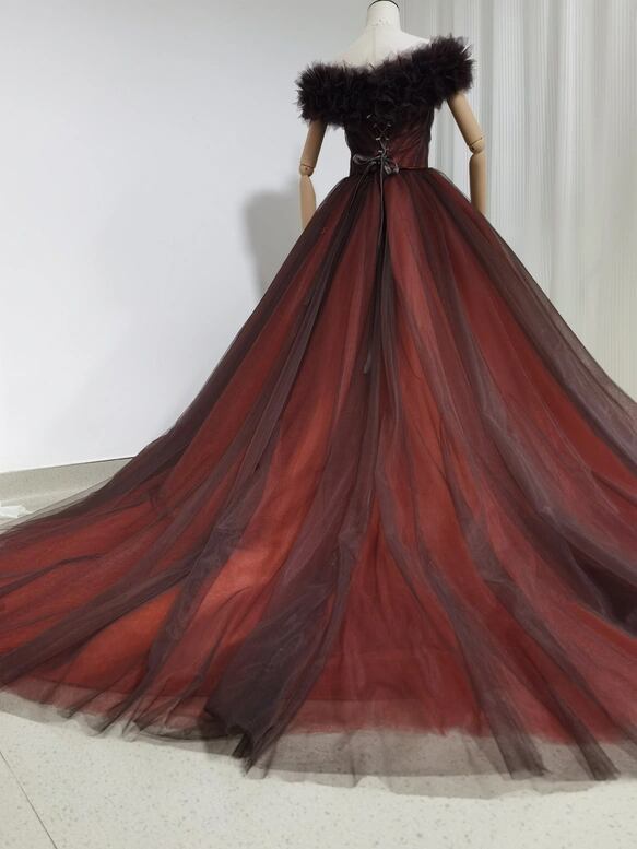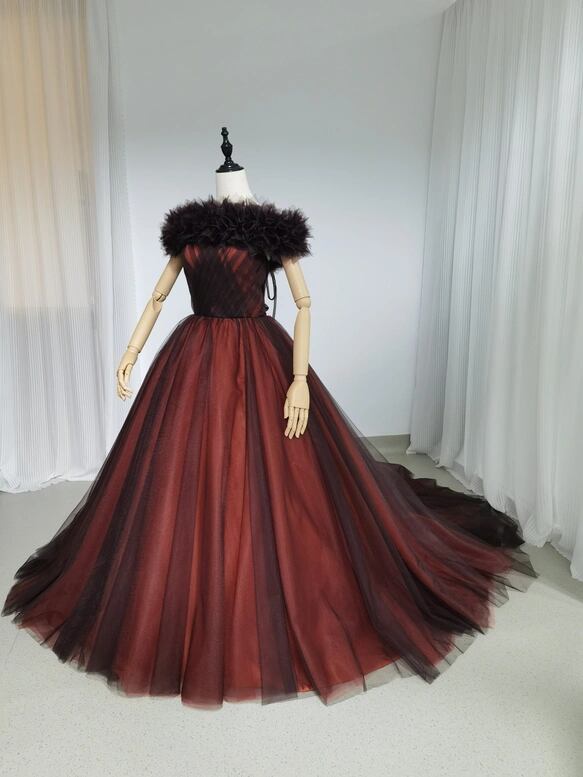 人気上昇! カラードレス テラコッタ色 取り外しオフショルダー ベアトップ Aライン ソフトチュール