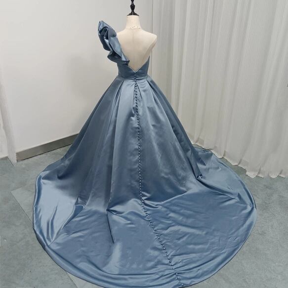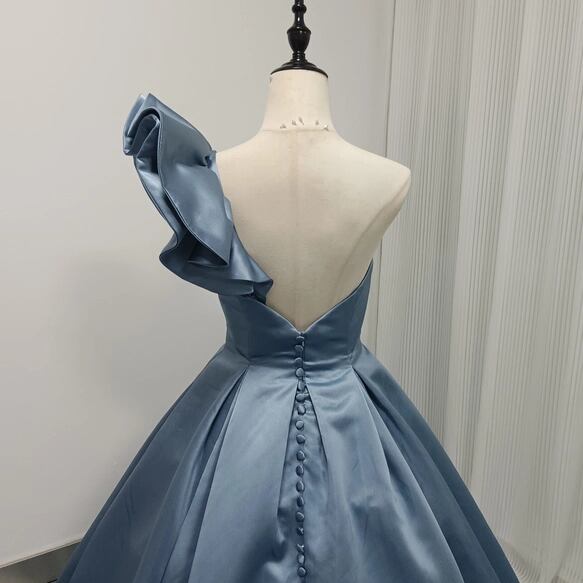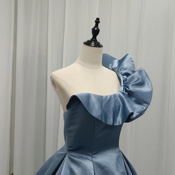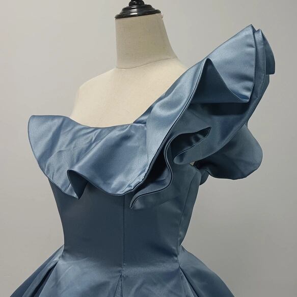 ウェディングドレス カラードレス ブルー ショルダー型 取り外し 光沢感 披露宴/結婚式