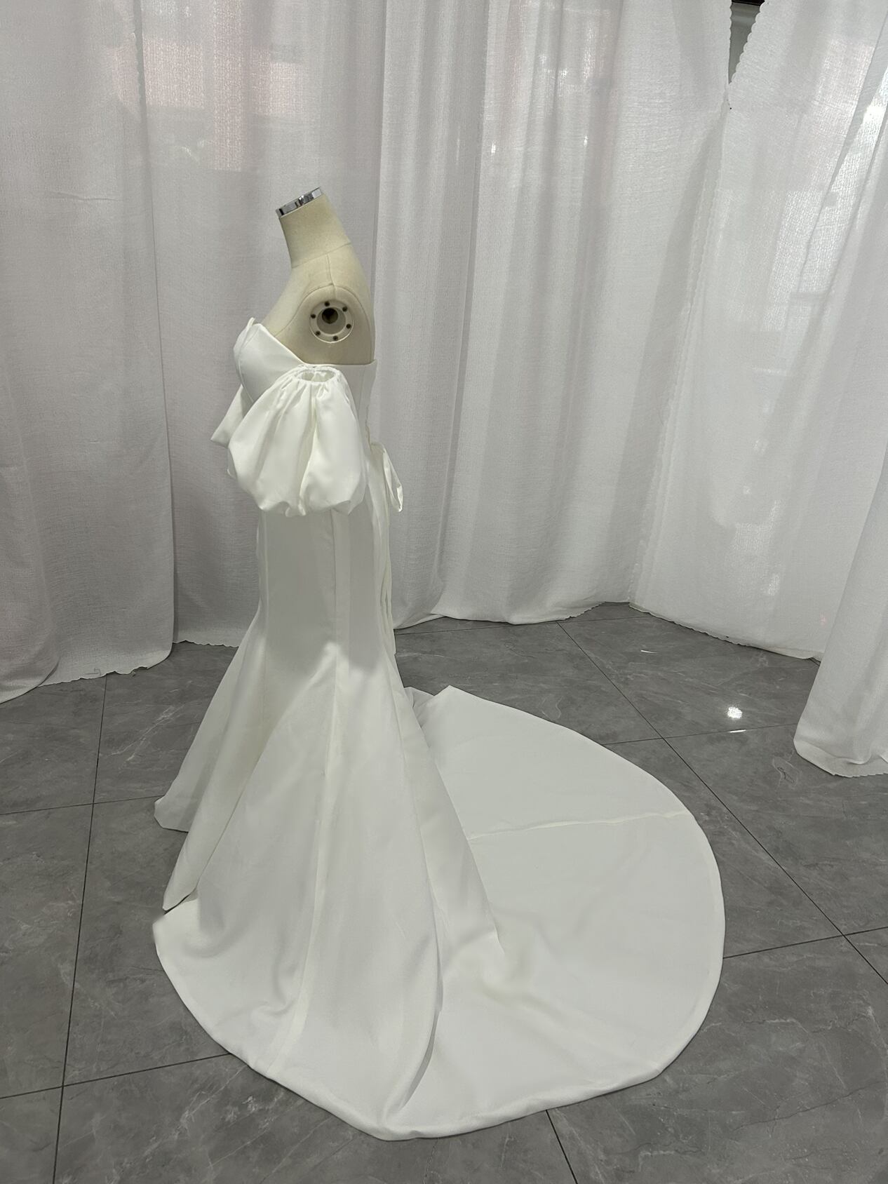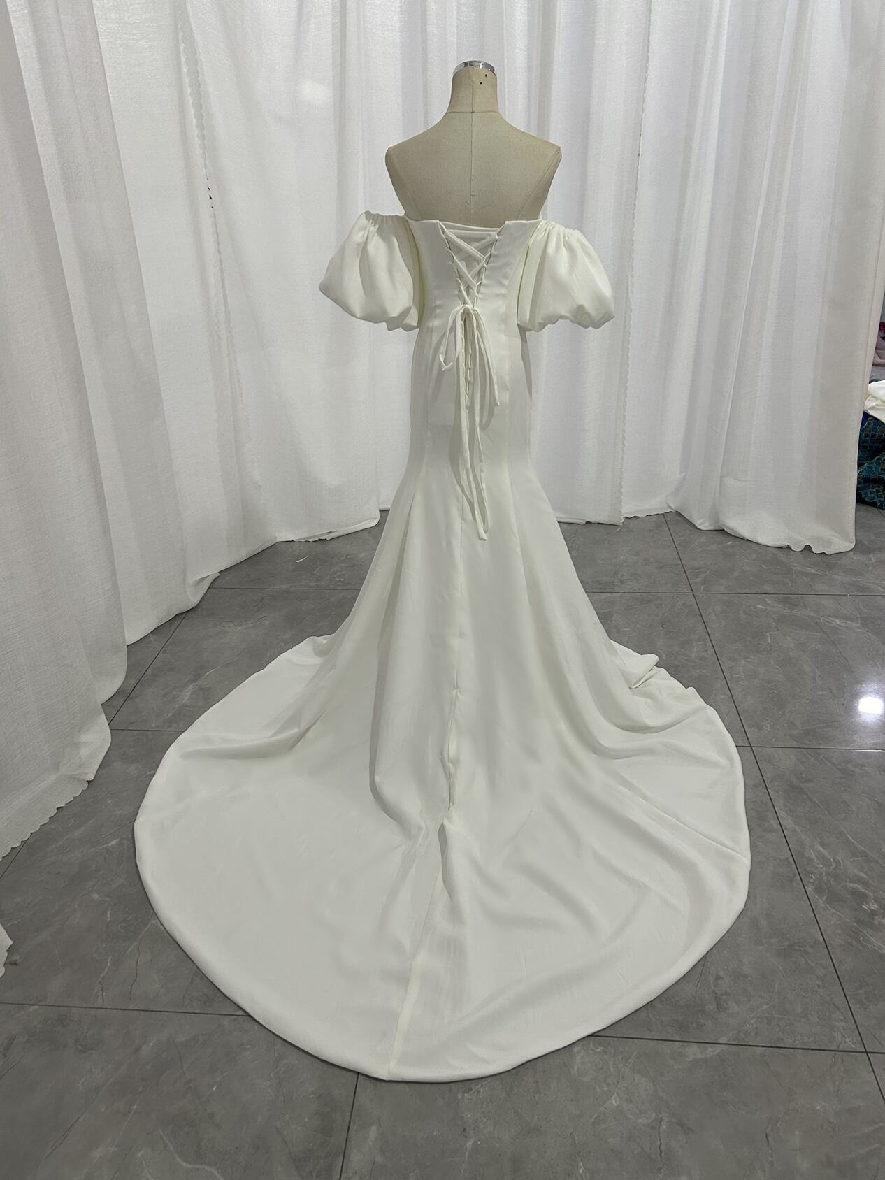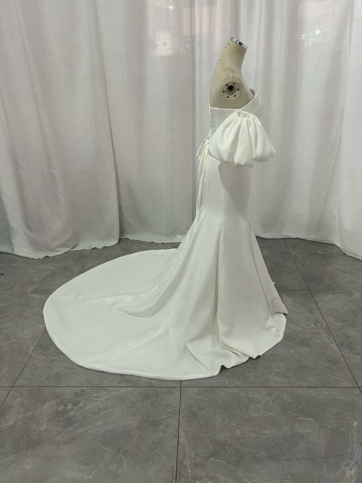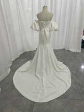ウエディングドレス スレンダーライン パフスリーブドレス クレープ生地 マーメイドライン ブライダル 結婚式
