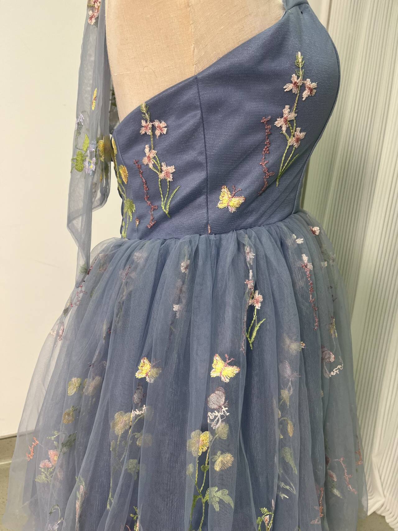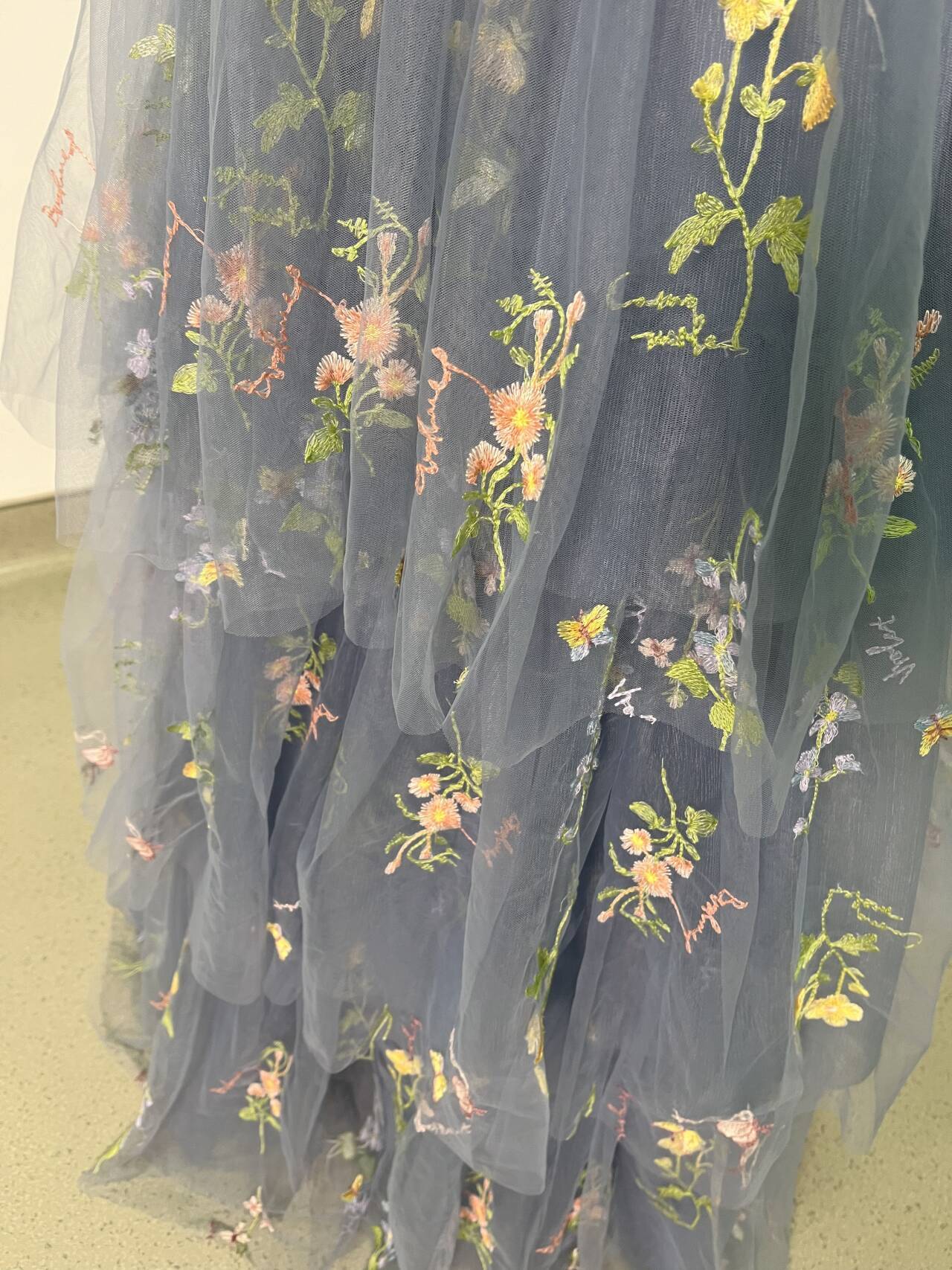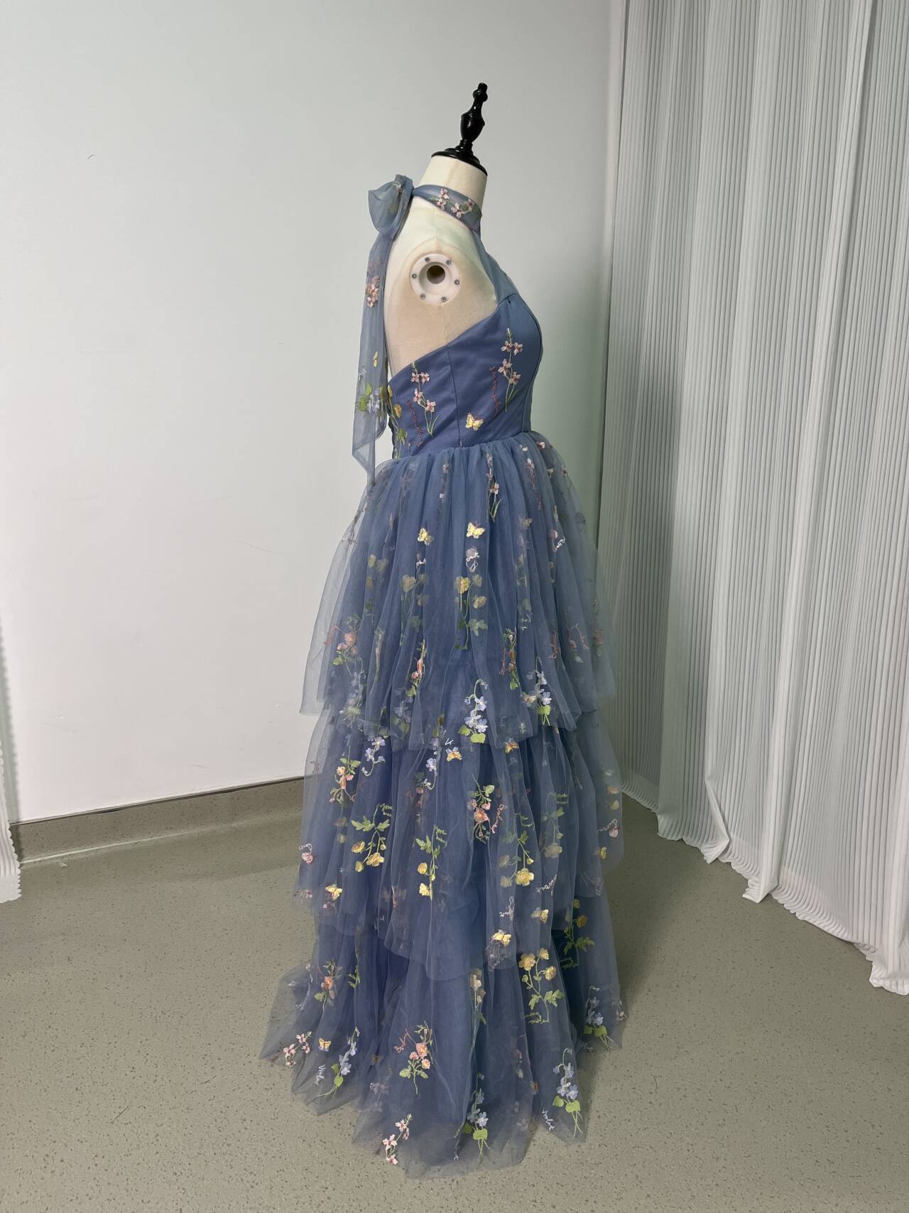 カラードレス パーティードレス 花の刺繍 ファスナー ソフトチュール お呼ばれ/二次会/合コン/デート
