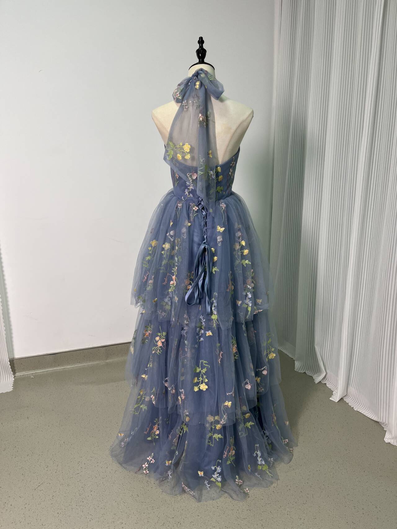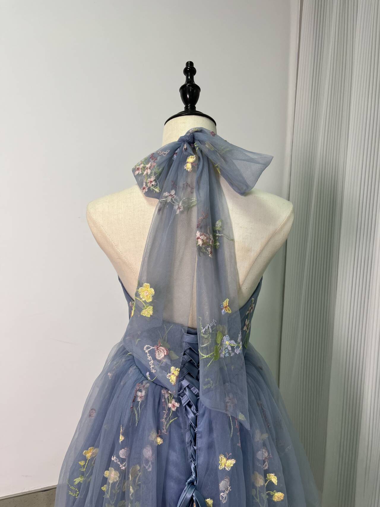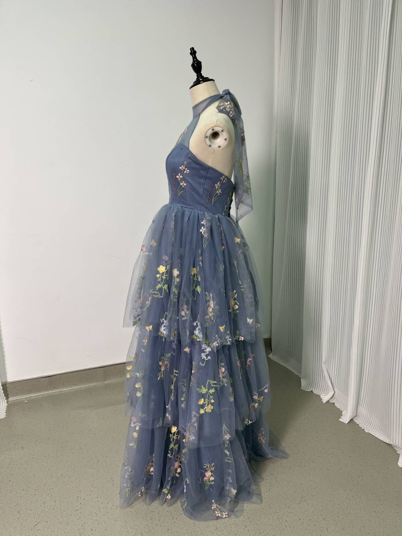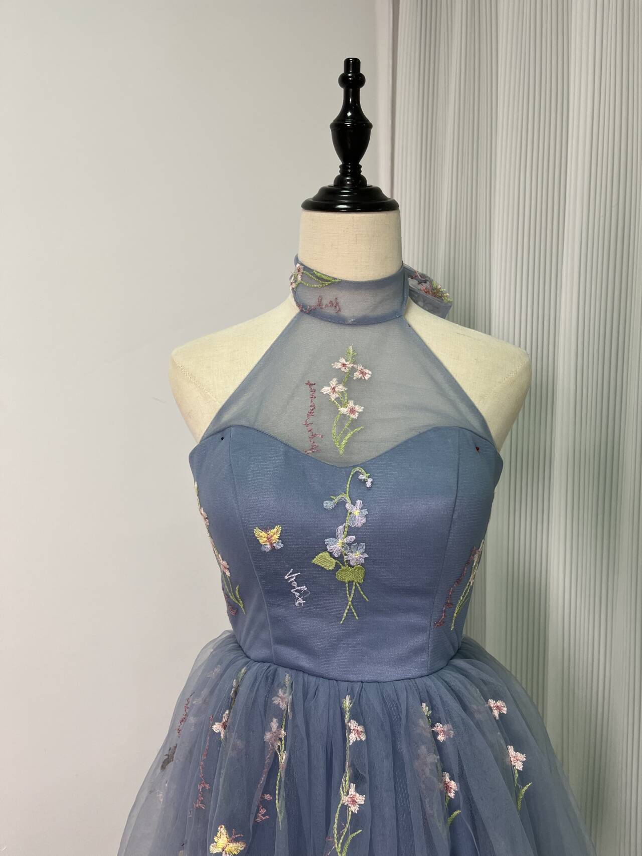 カラードレス パーティードレス 花の刺繍 ファスナー ソフトチュール お呼ばれ/二次会/合コン/デート