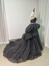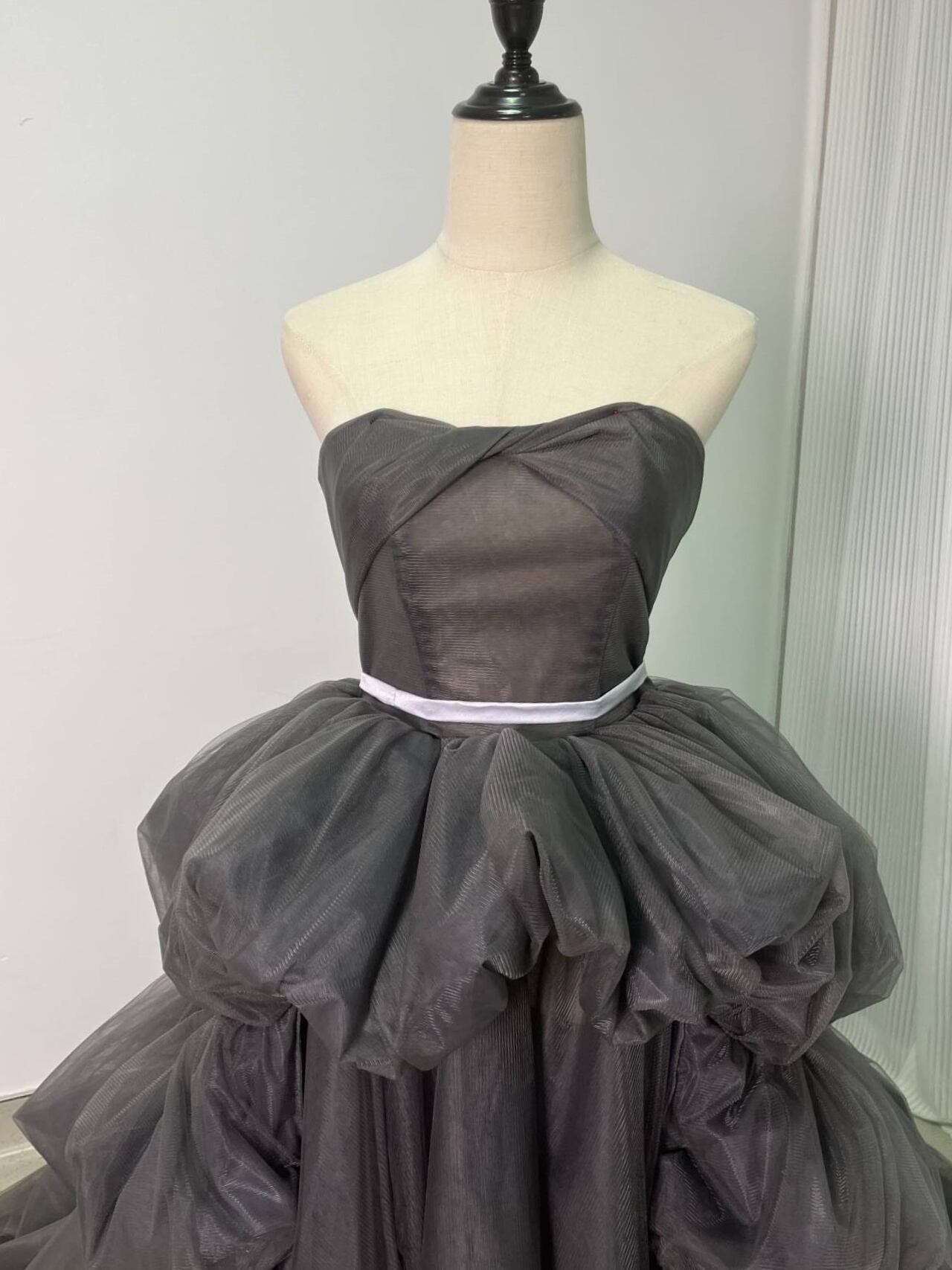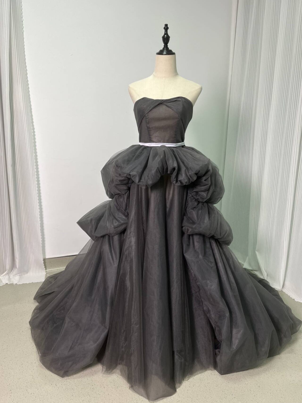 カラードレス グレー オーバードレス 取り外し袖 光沢サテン ラッフルフリル 花嫁