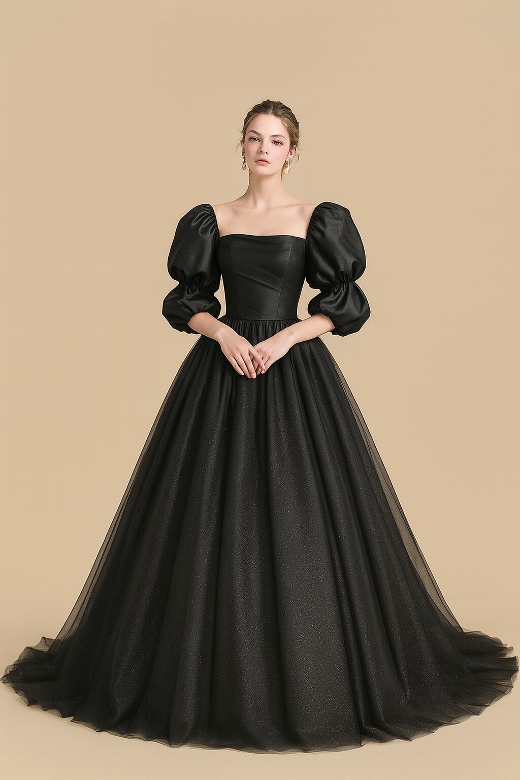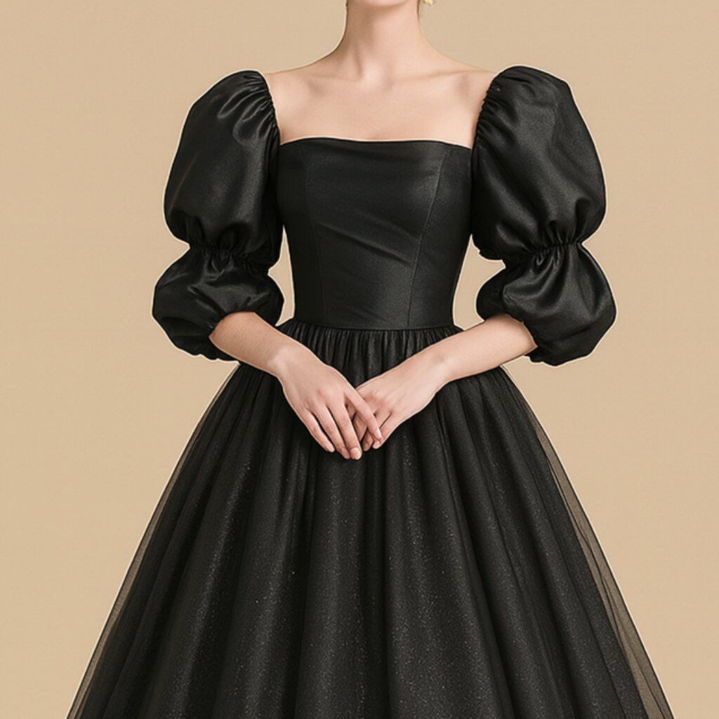 カラードレス ブラック パフスリーブドレス グリッタードレス 細見えシルエット 花嫁/ウェディングドレス