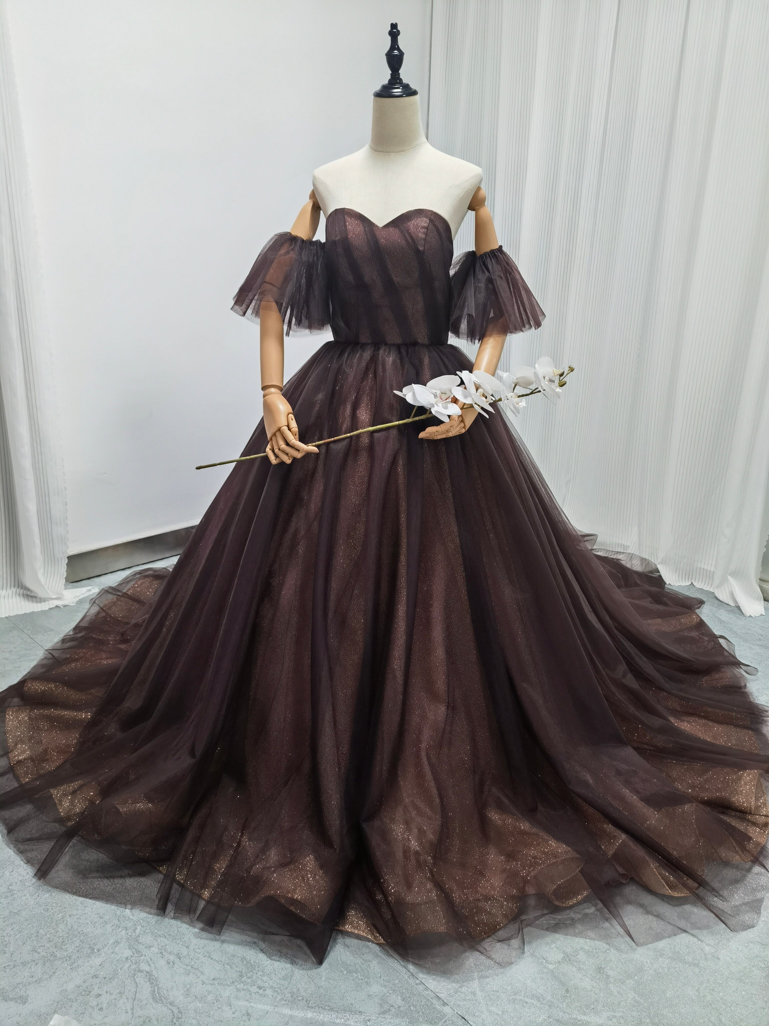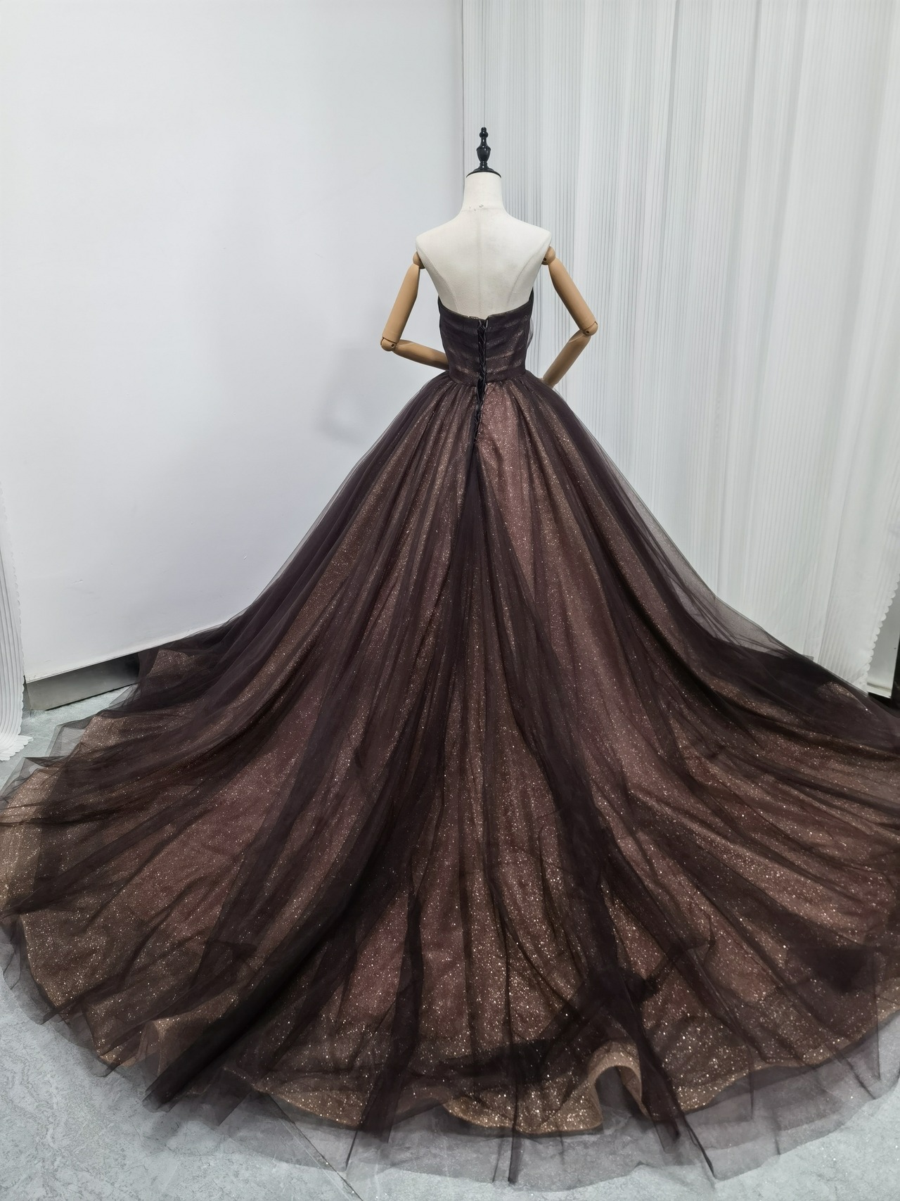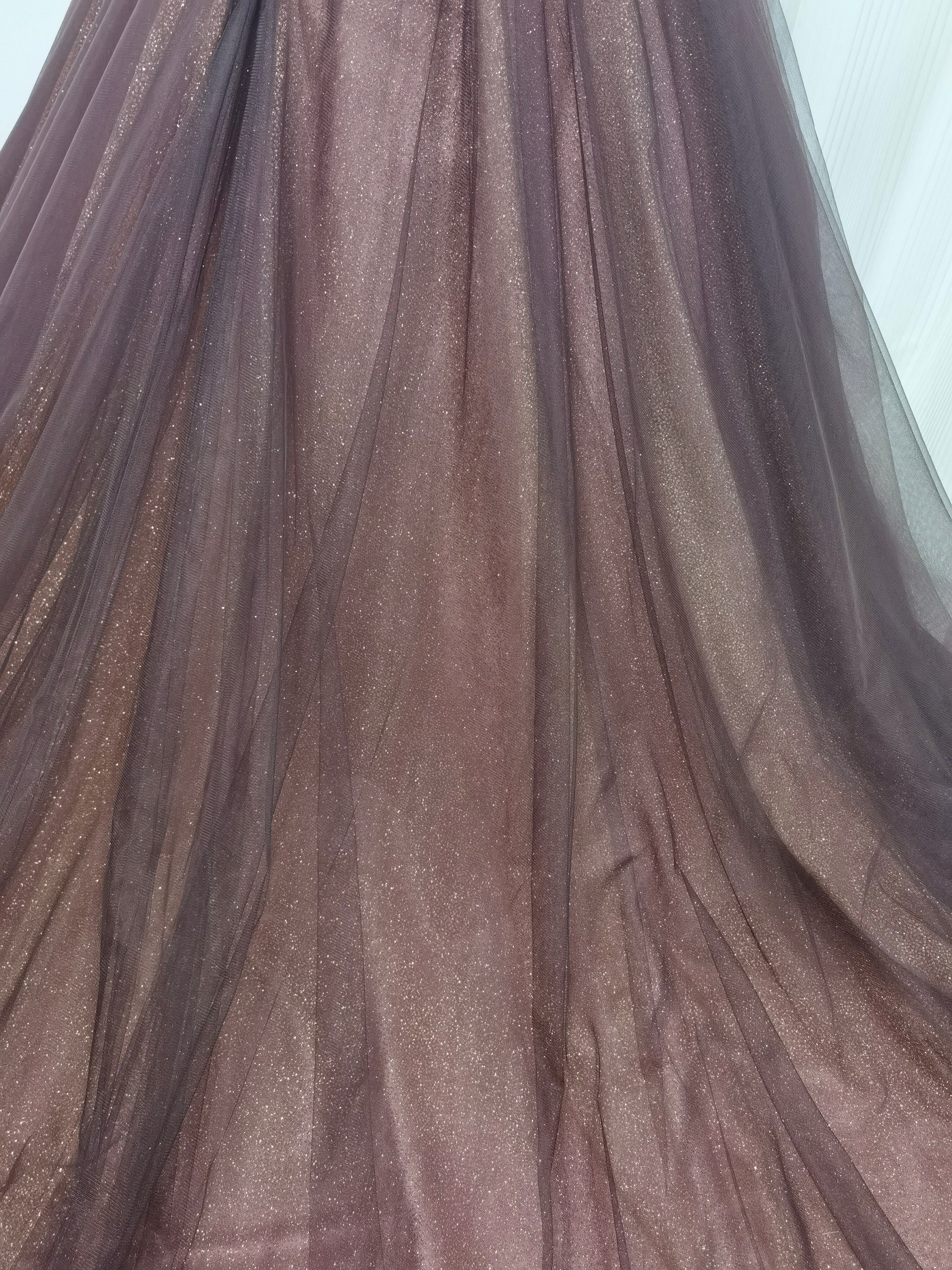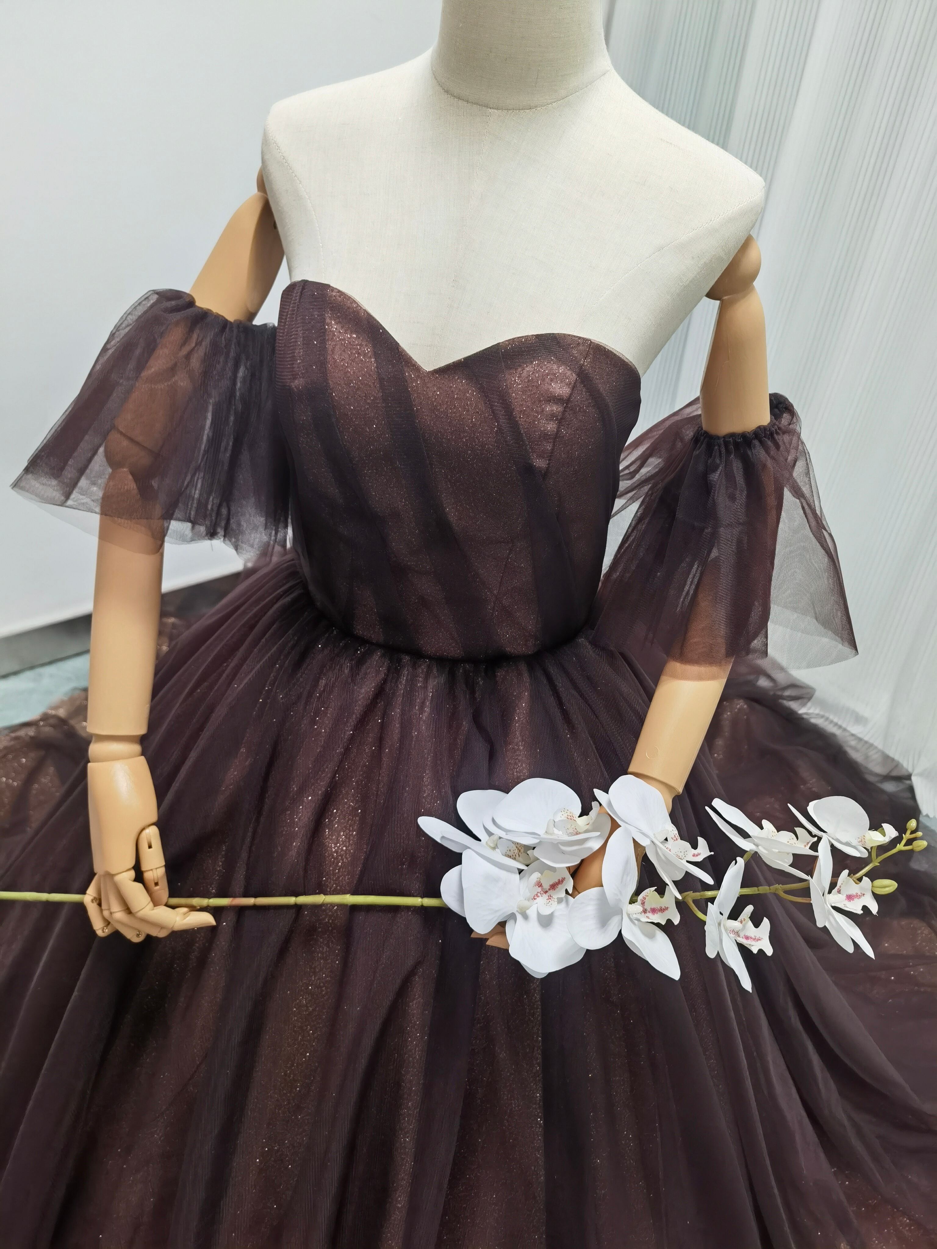 カラードレス ブラウン 取り外し袖 ベアトップ キラキラチュール 大人っぽい 結婚式