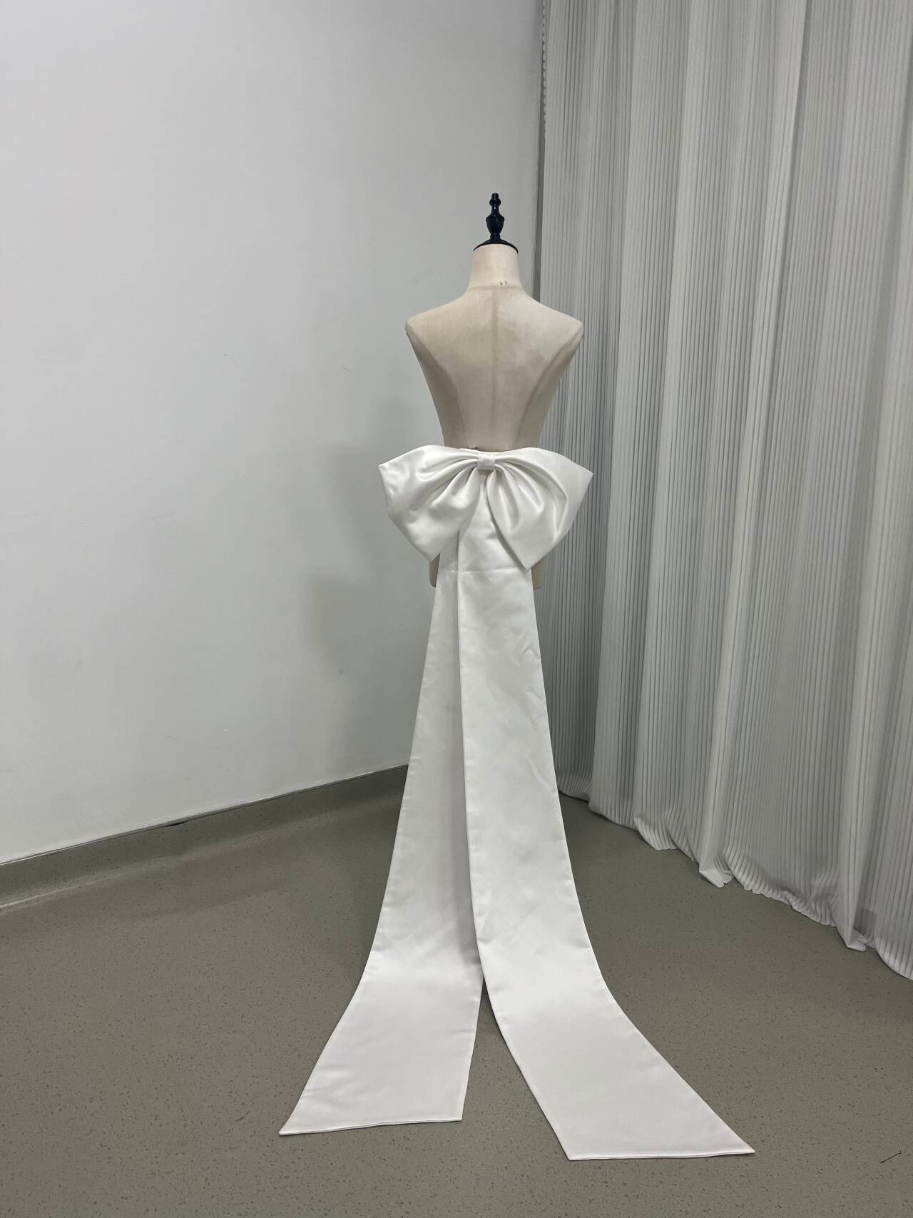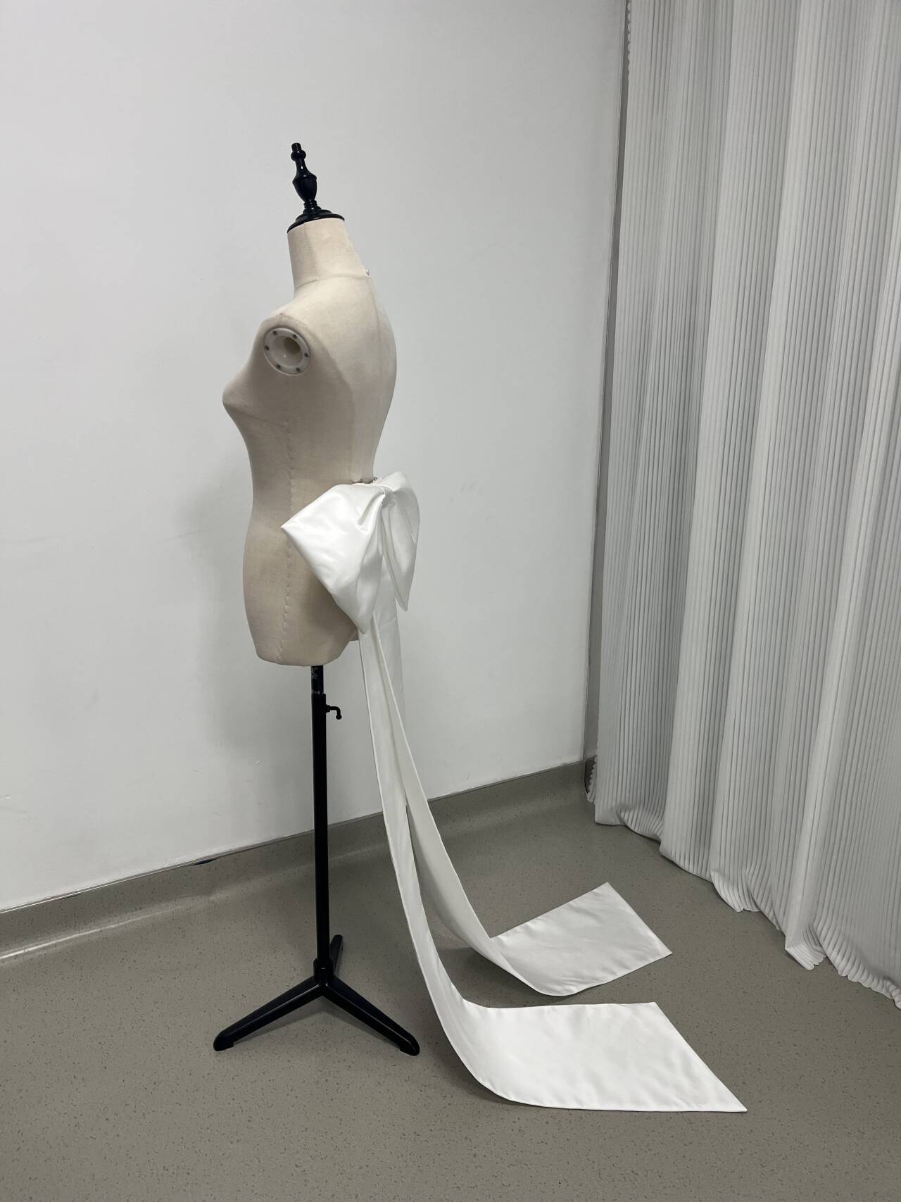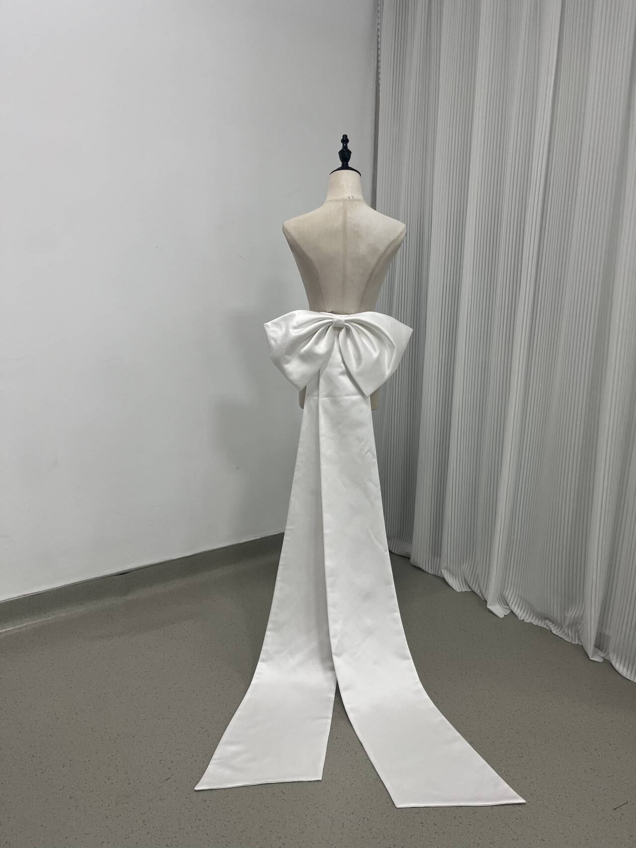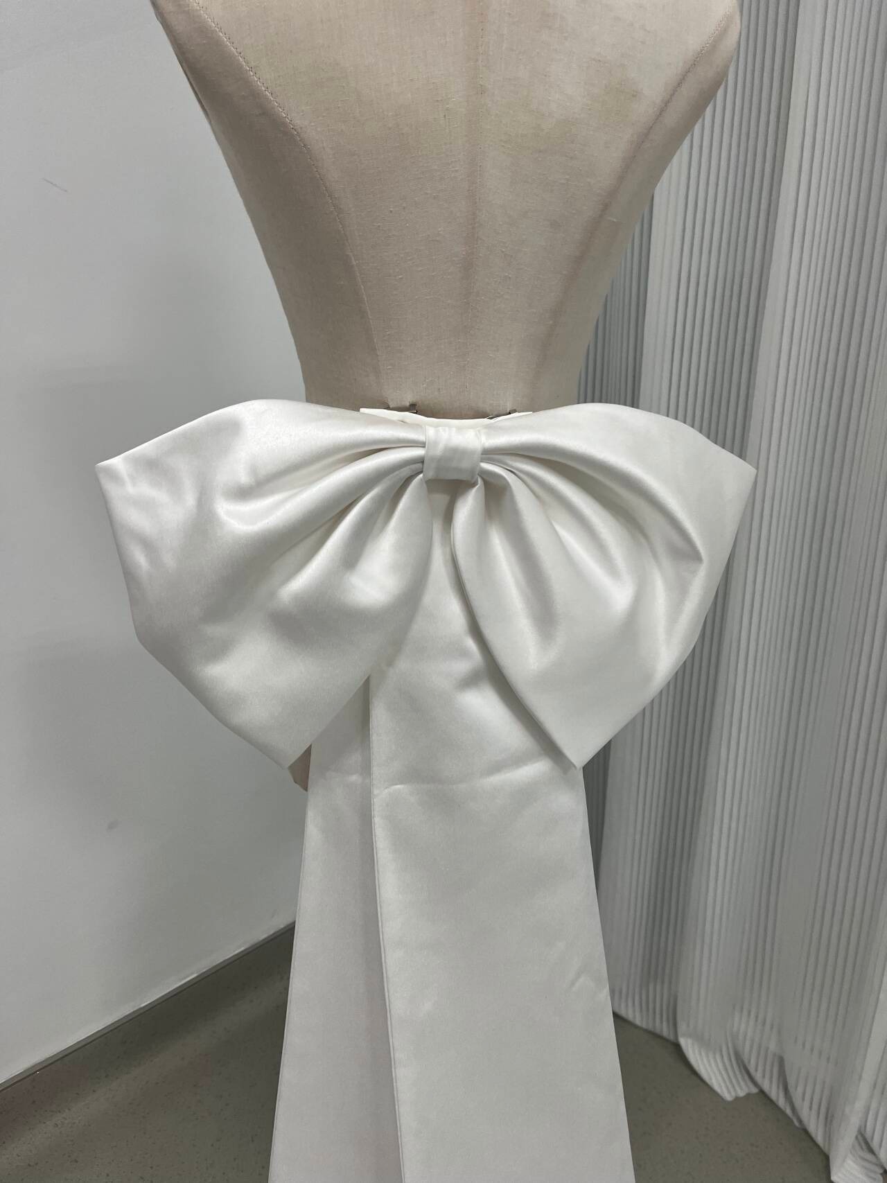 ふっくら柔らかなバックリボン オフホワイト 光沢感 花嫁/ウェディングドレス 前撮り