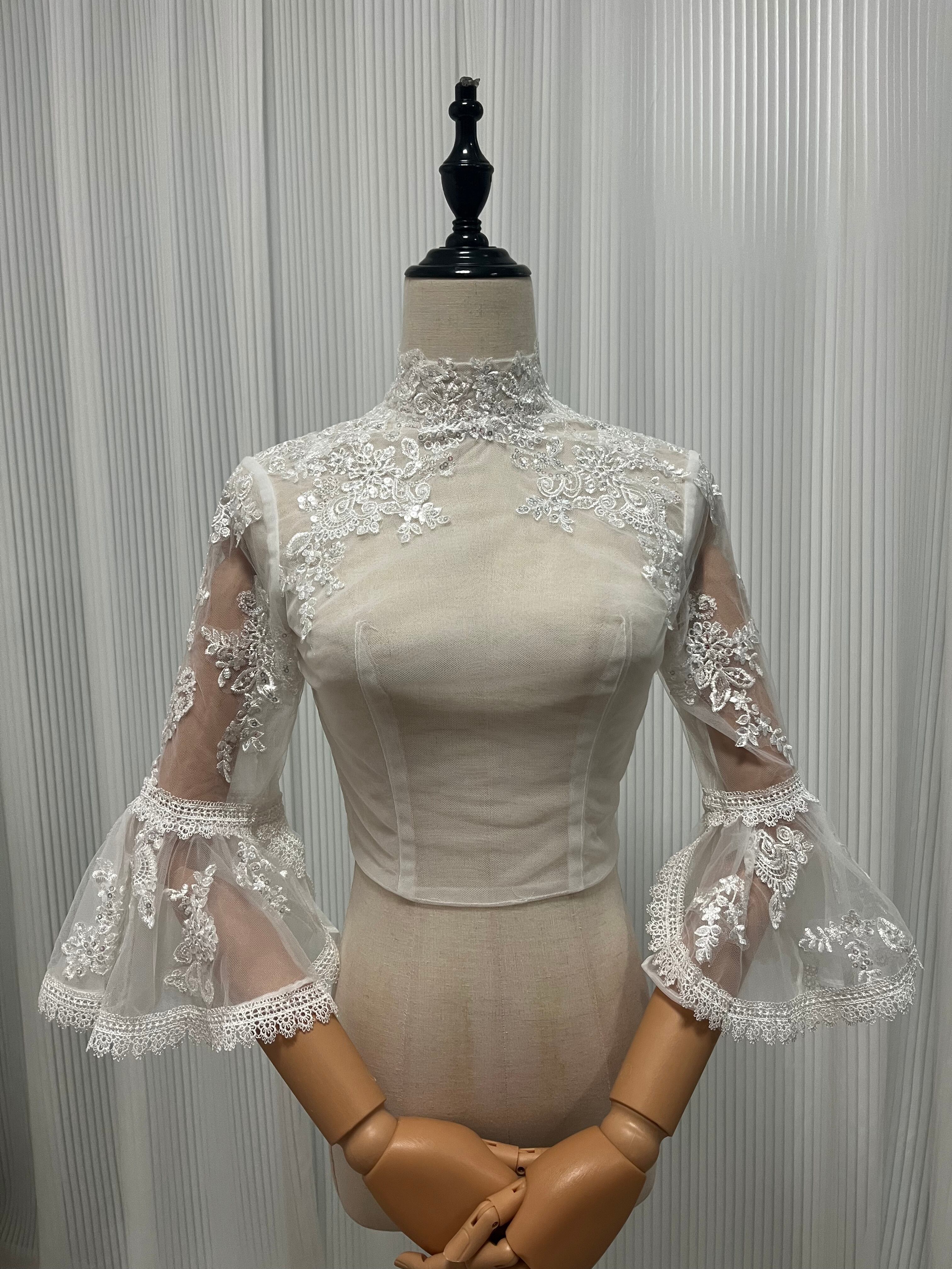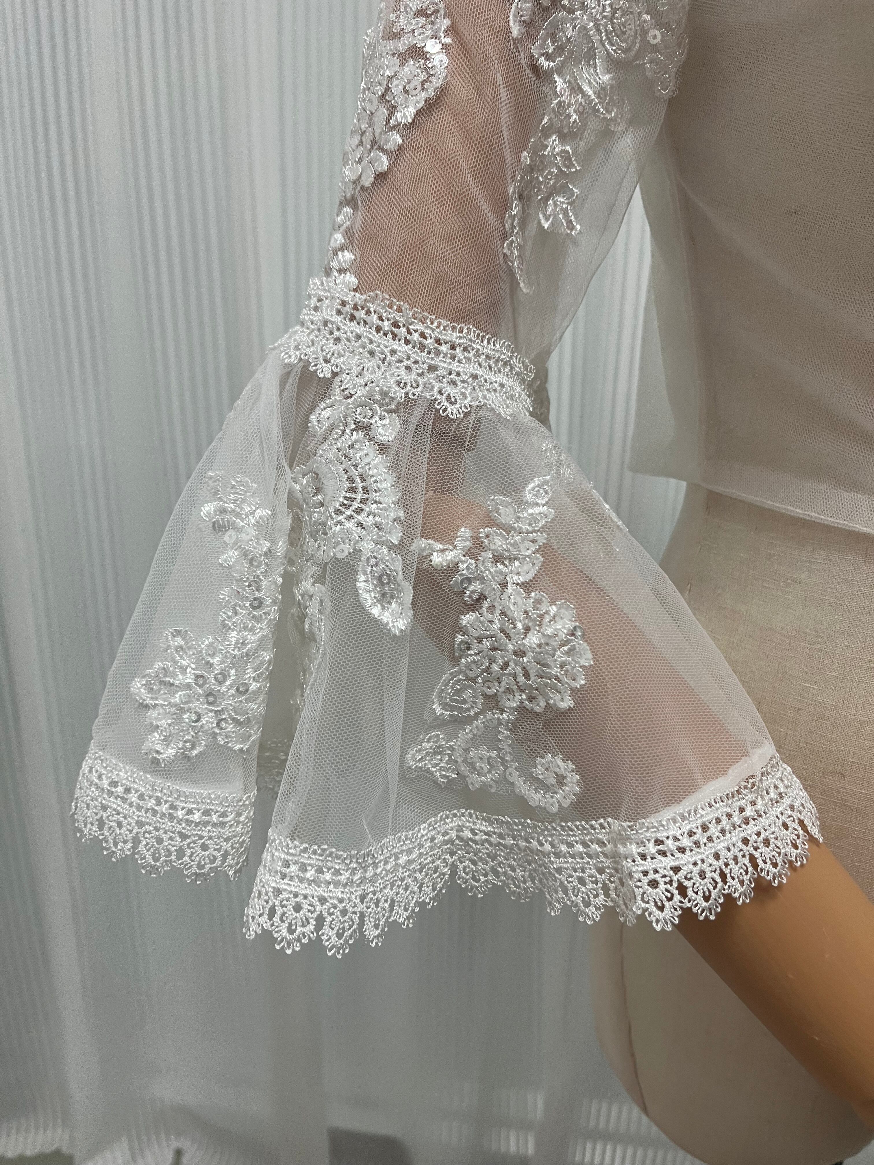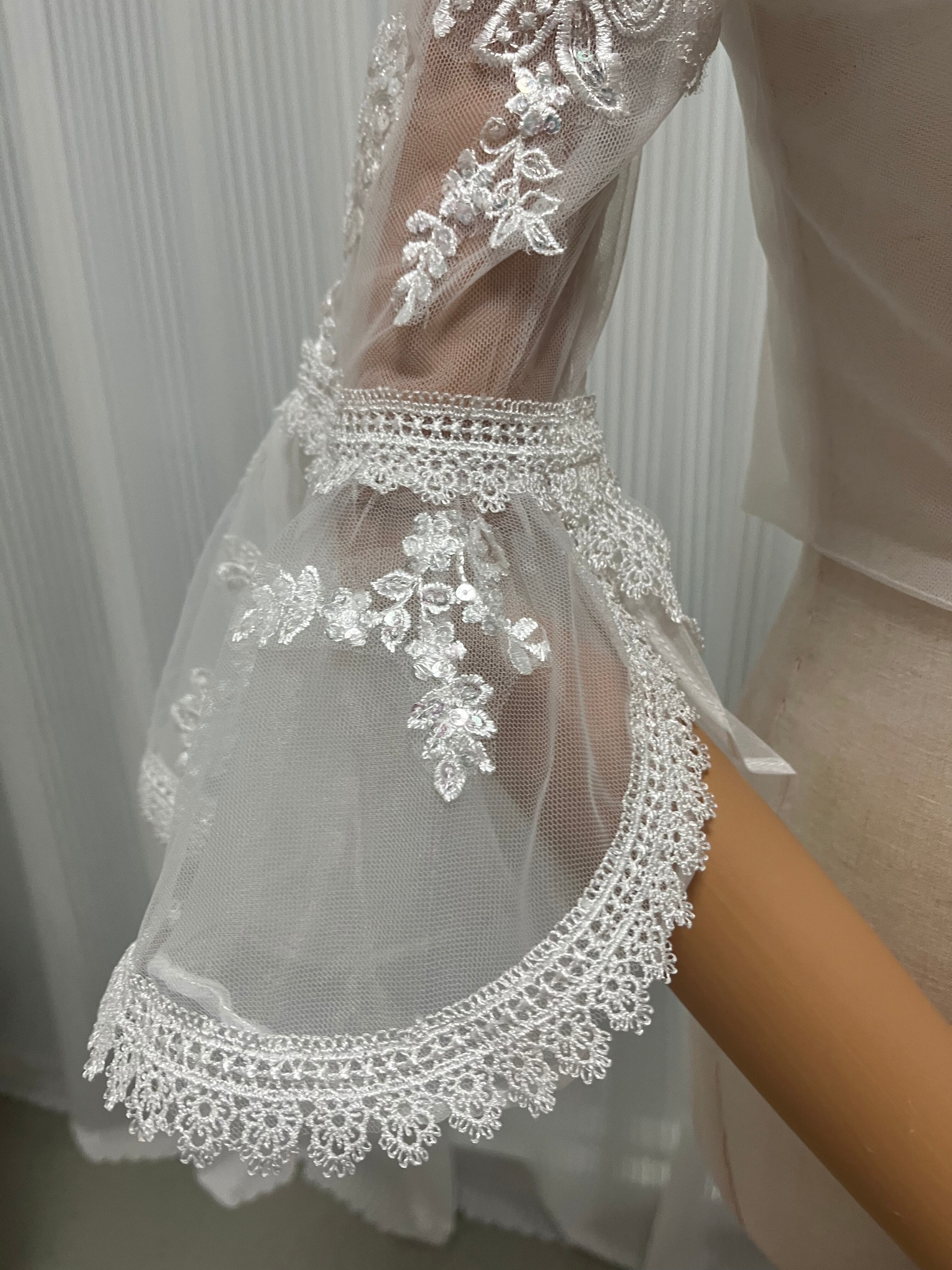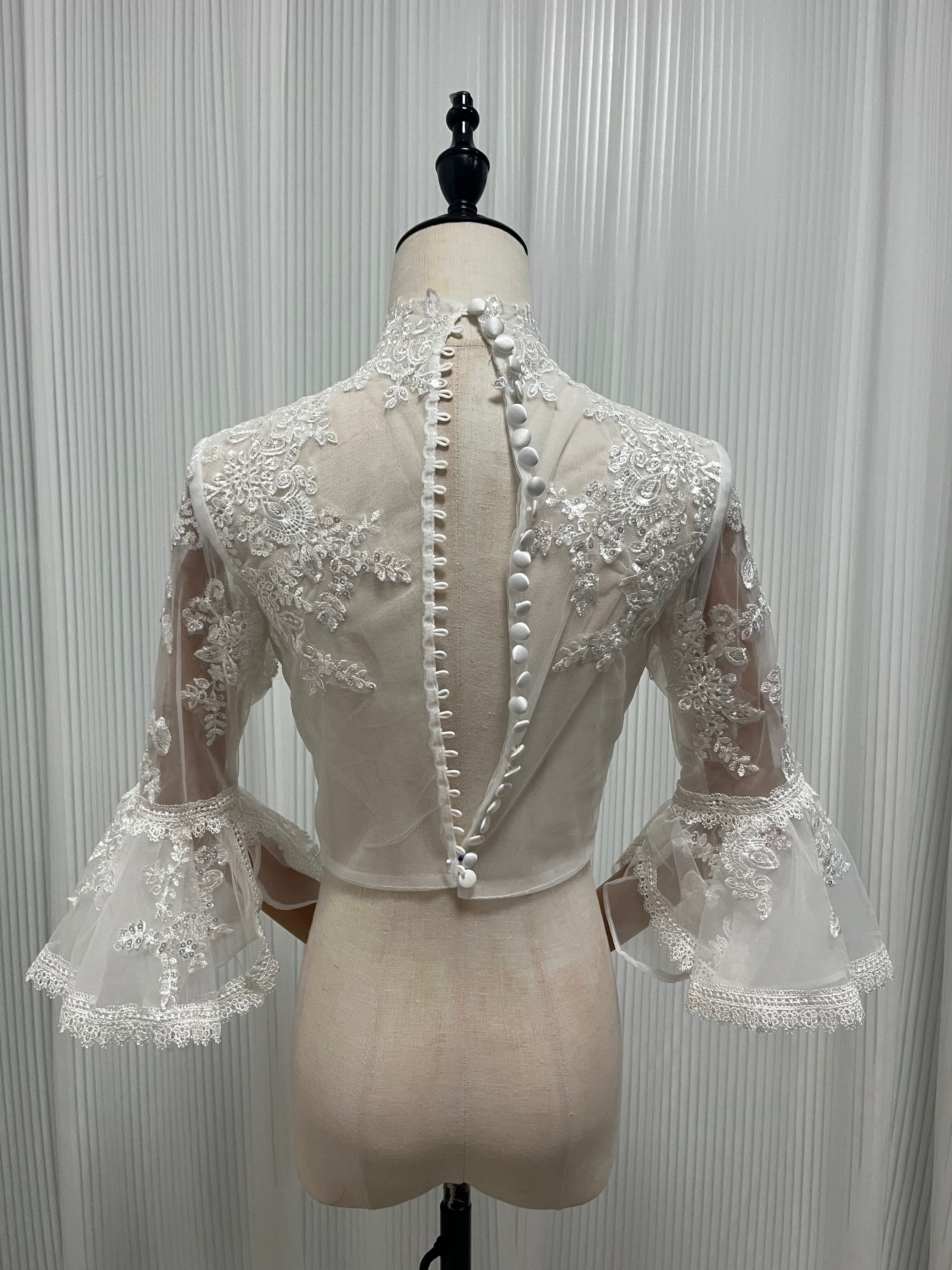 ボレロ ベルスリーブ くるみボタン キラキラ光る刺繍 披露宴/結婚式 ウェディングドレス