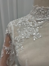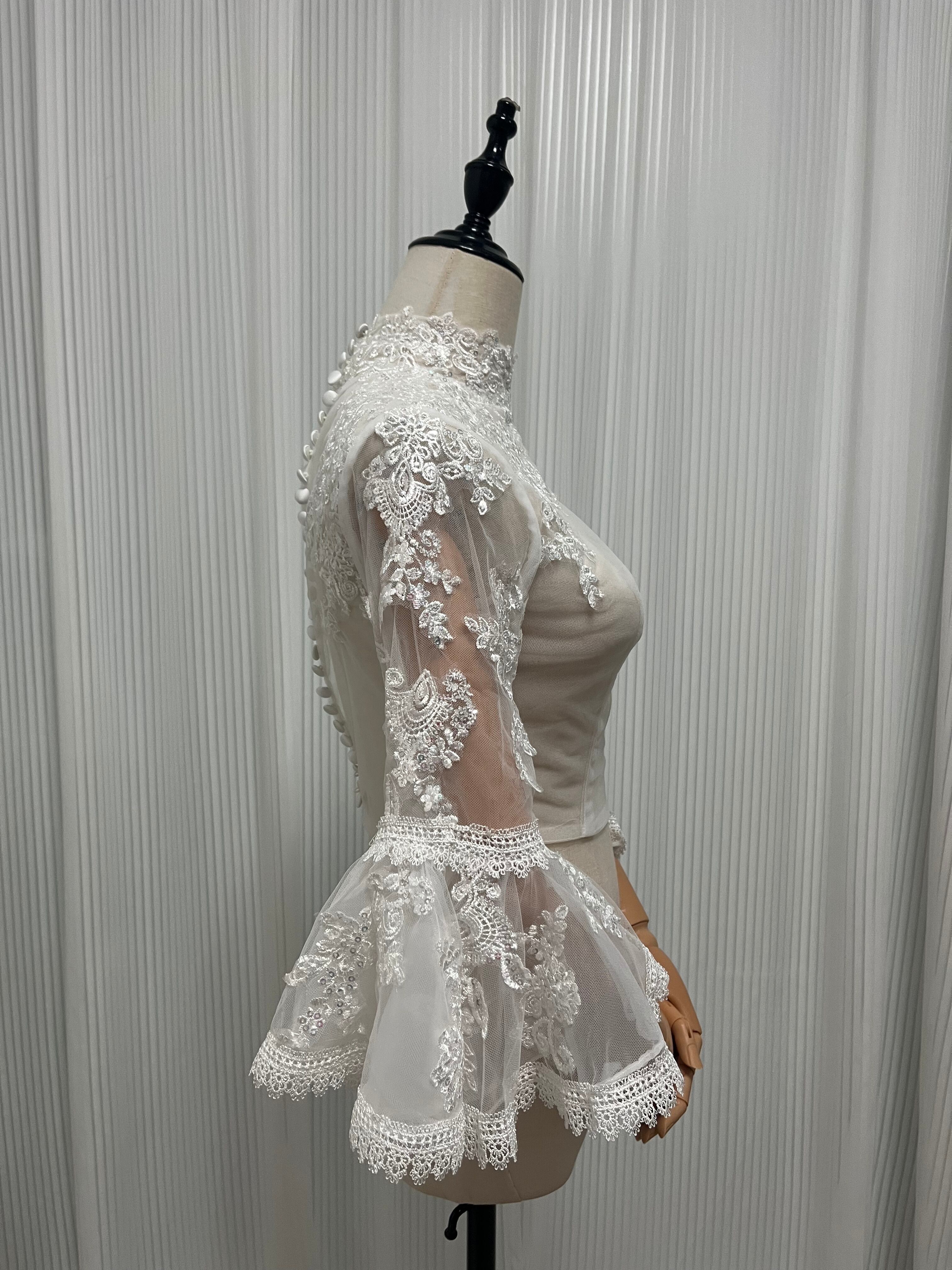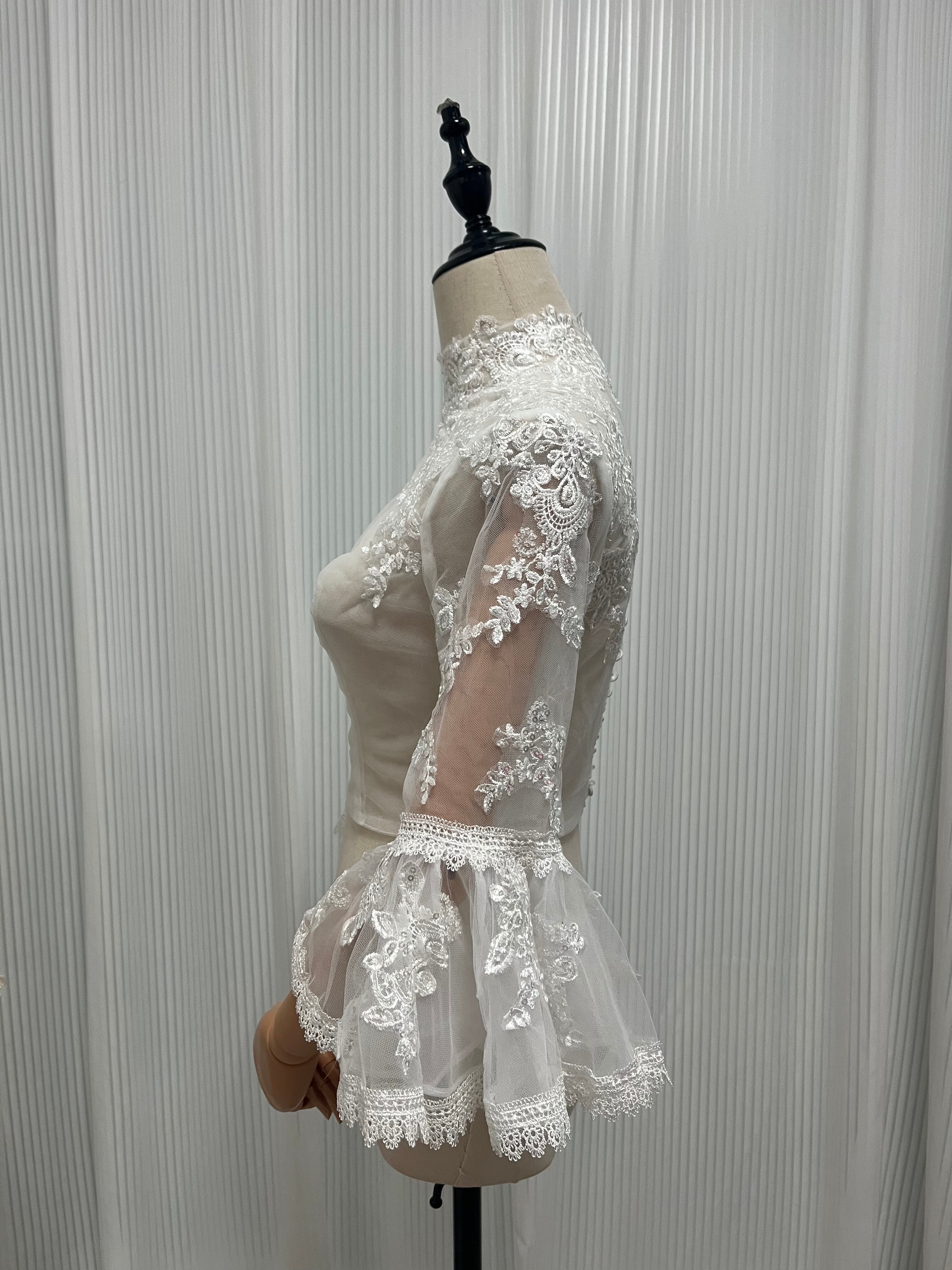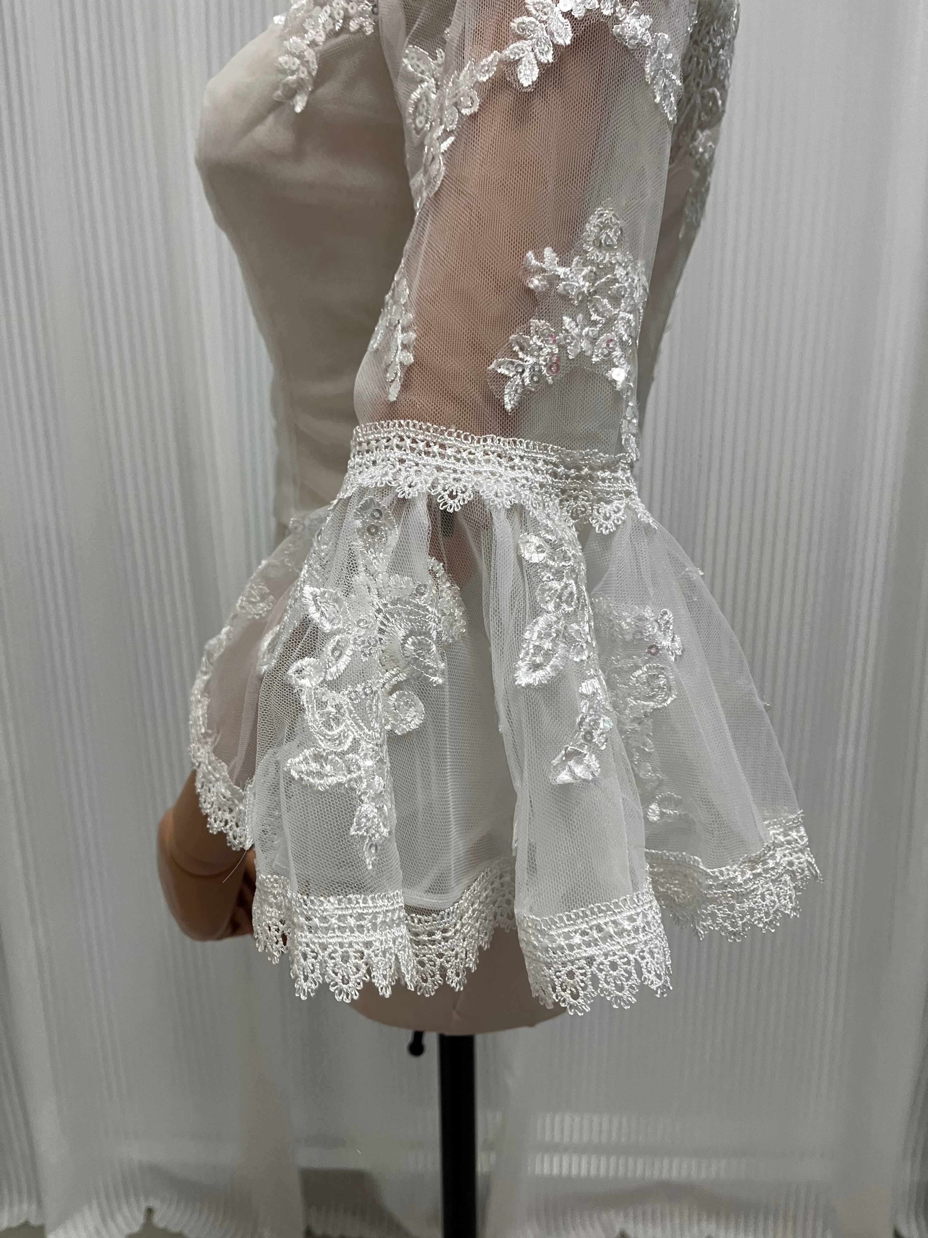 ボレロ ベルスリーブ くるみボタン キラキラ光る刺繍 披露宴/結婚式 ウェディングドレス