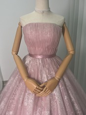 カラードレス ピンク キラキラチュール オフショル 可愛い Aライン ベルト 披露宴/結婚式