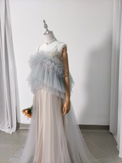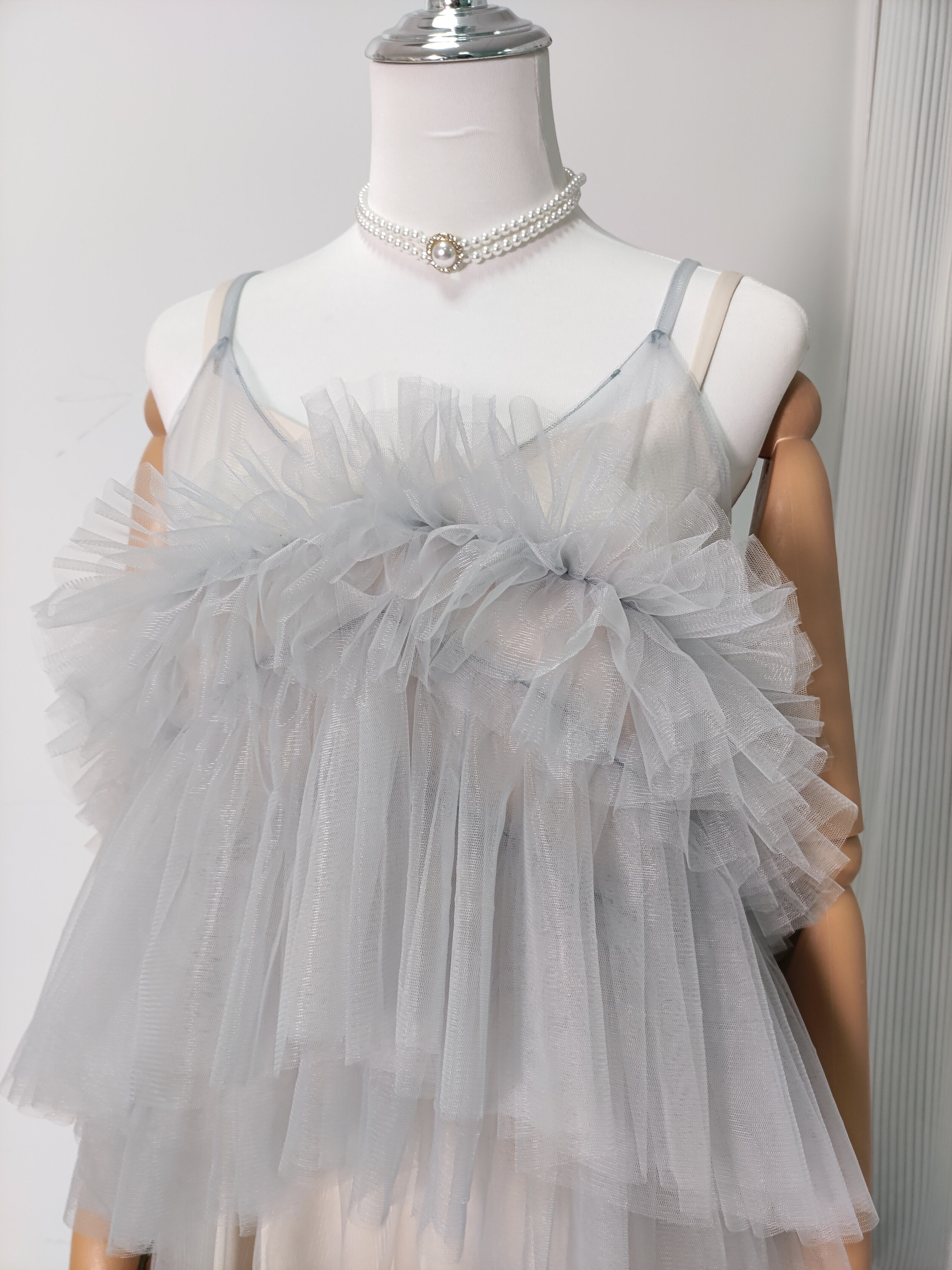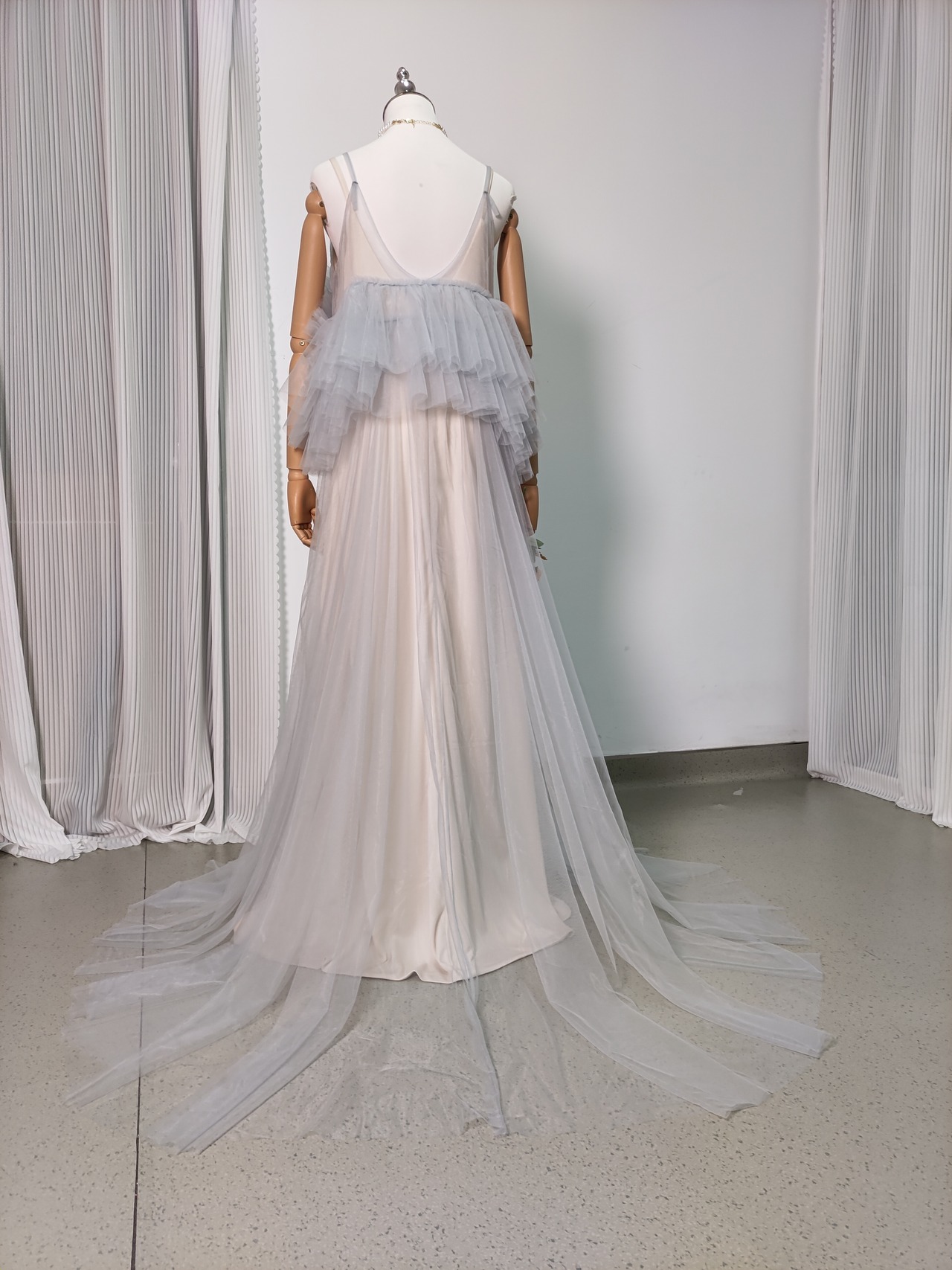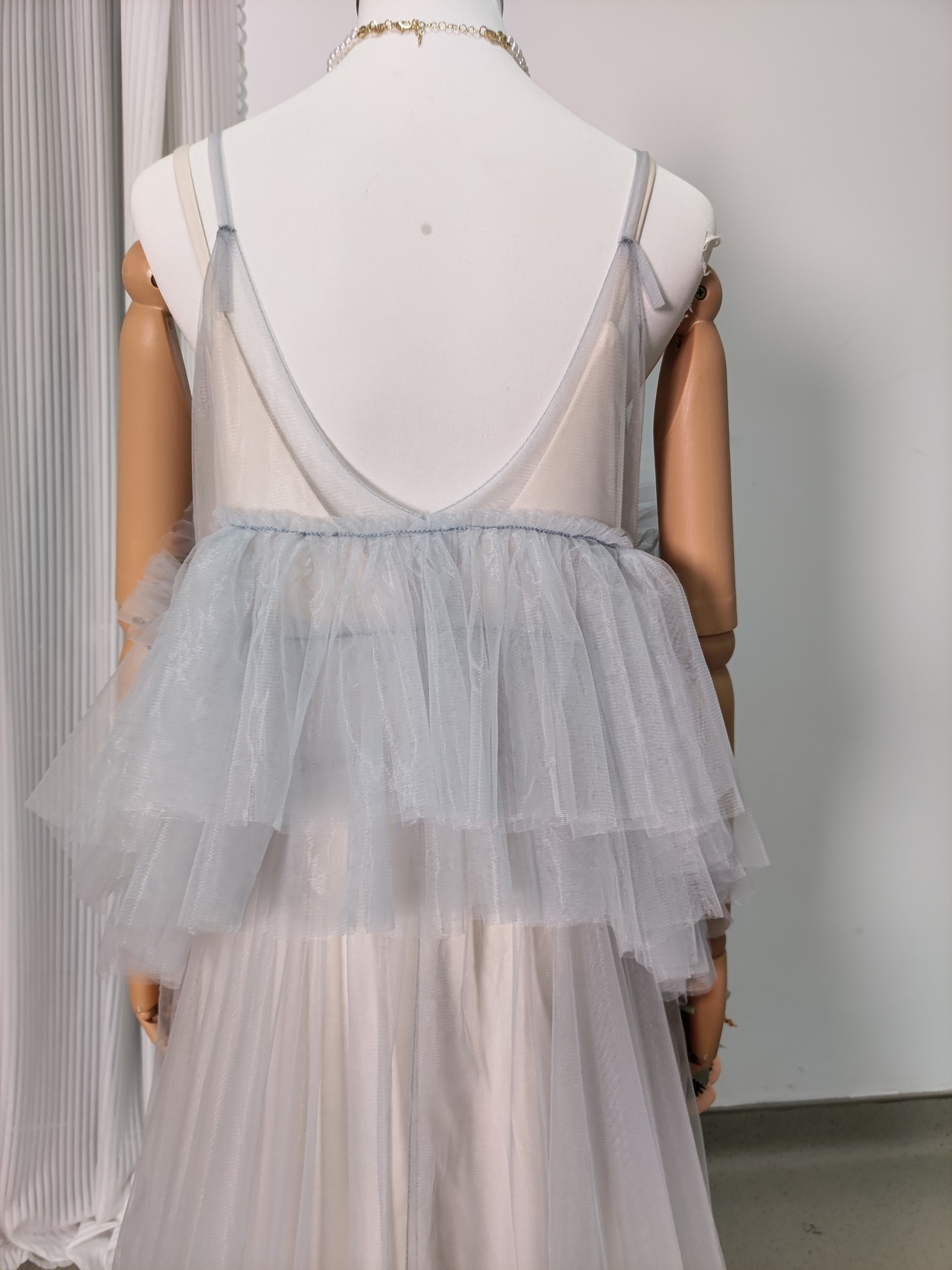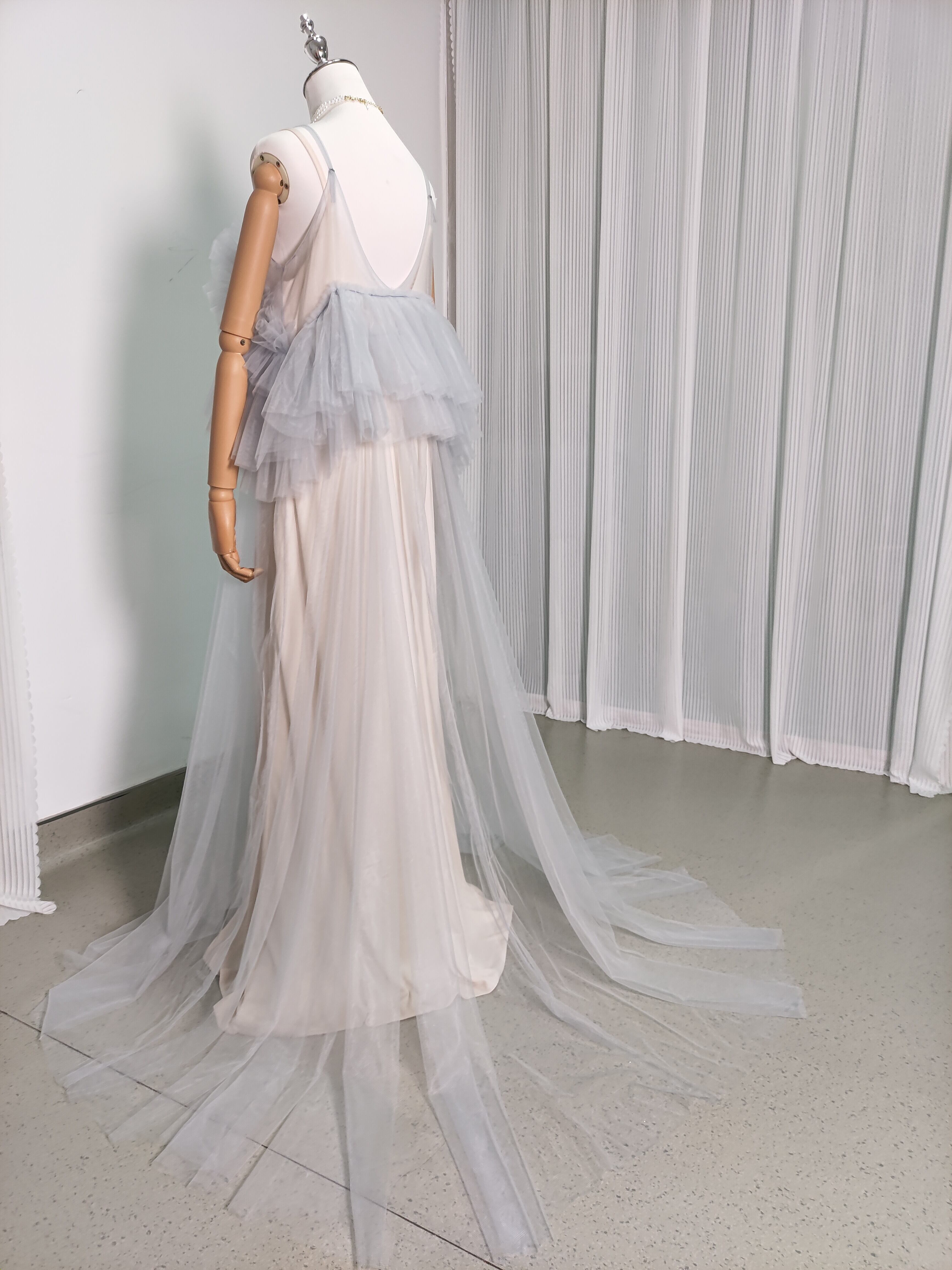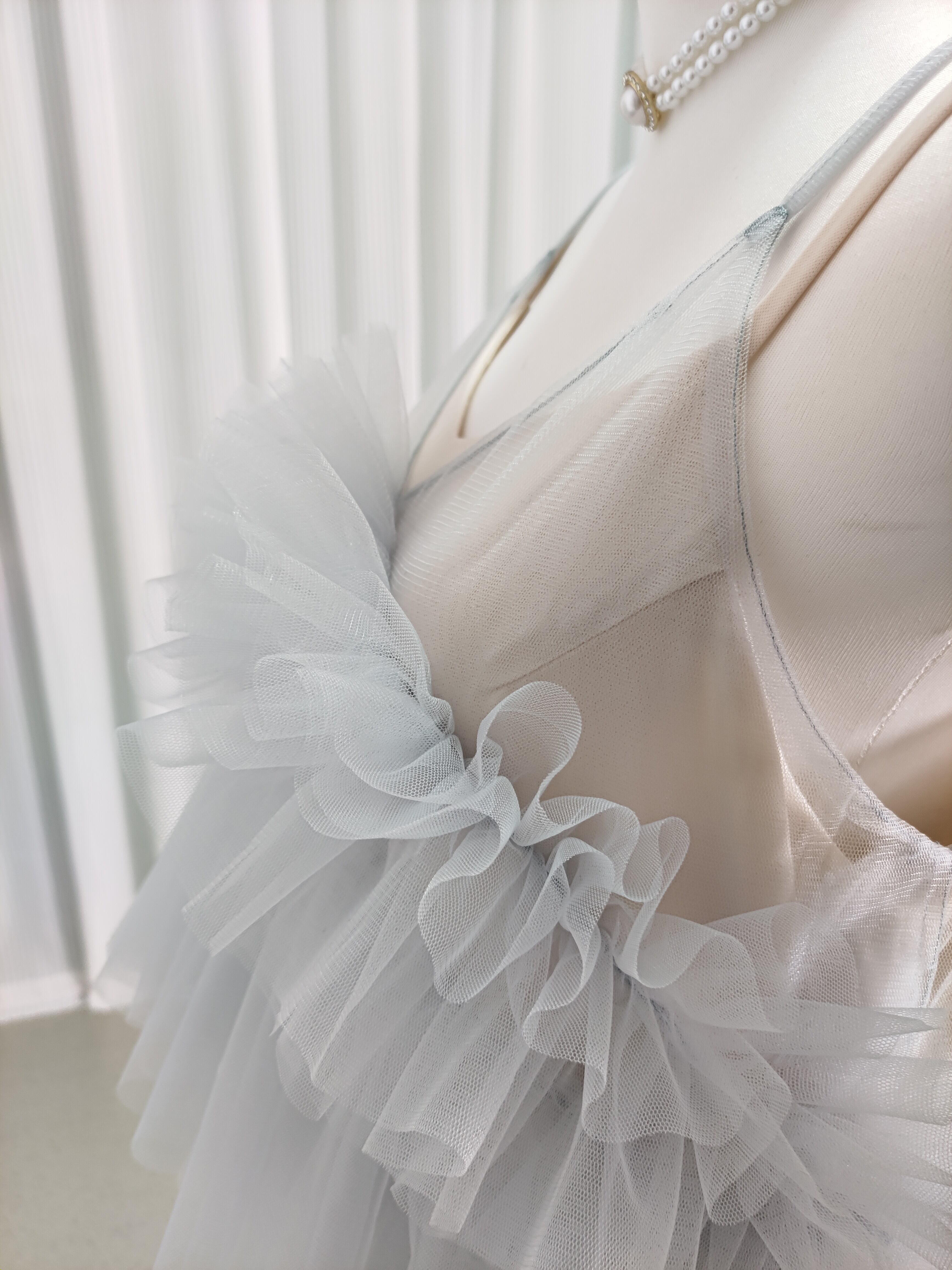 カラードレス ツーピース ブルーグレー ソフトチュール キャミソール 前撮り マタニティ