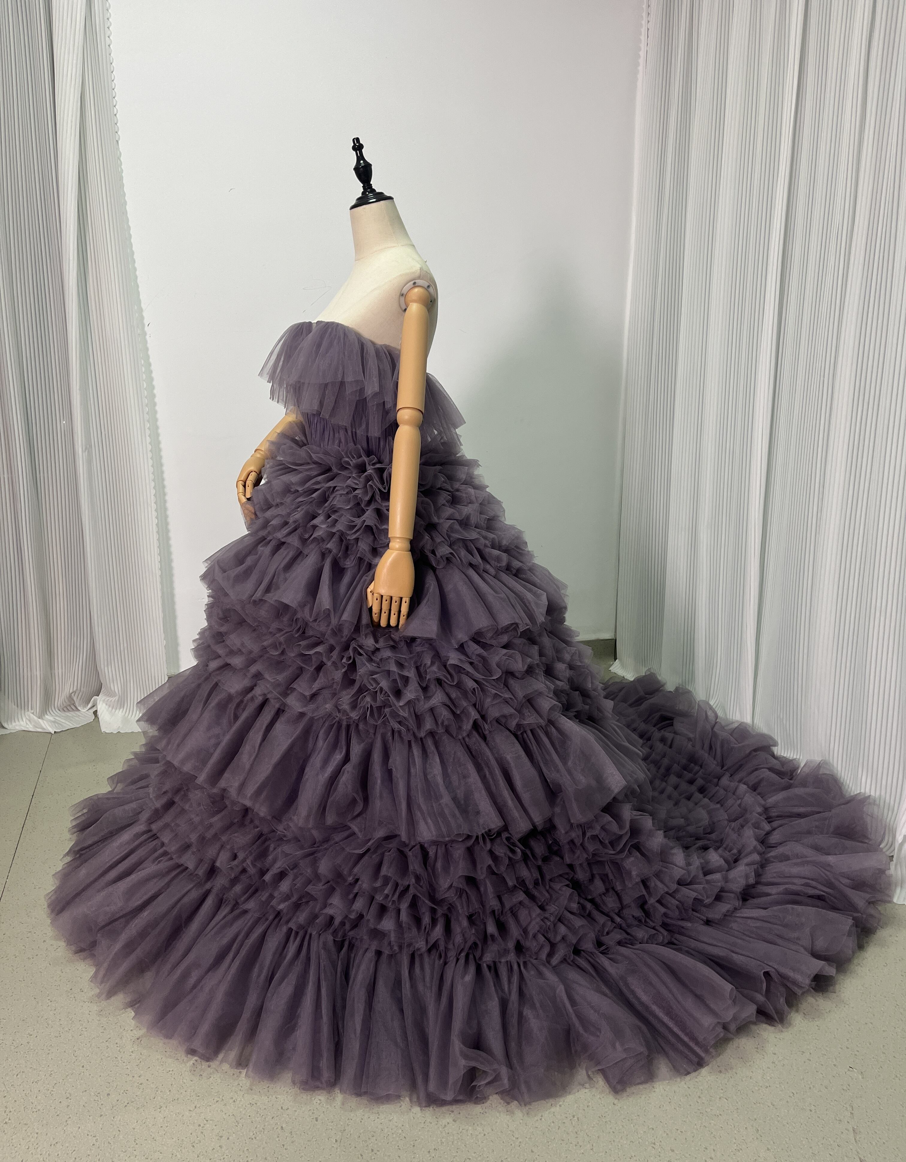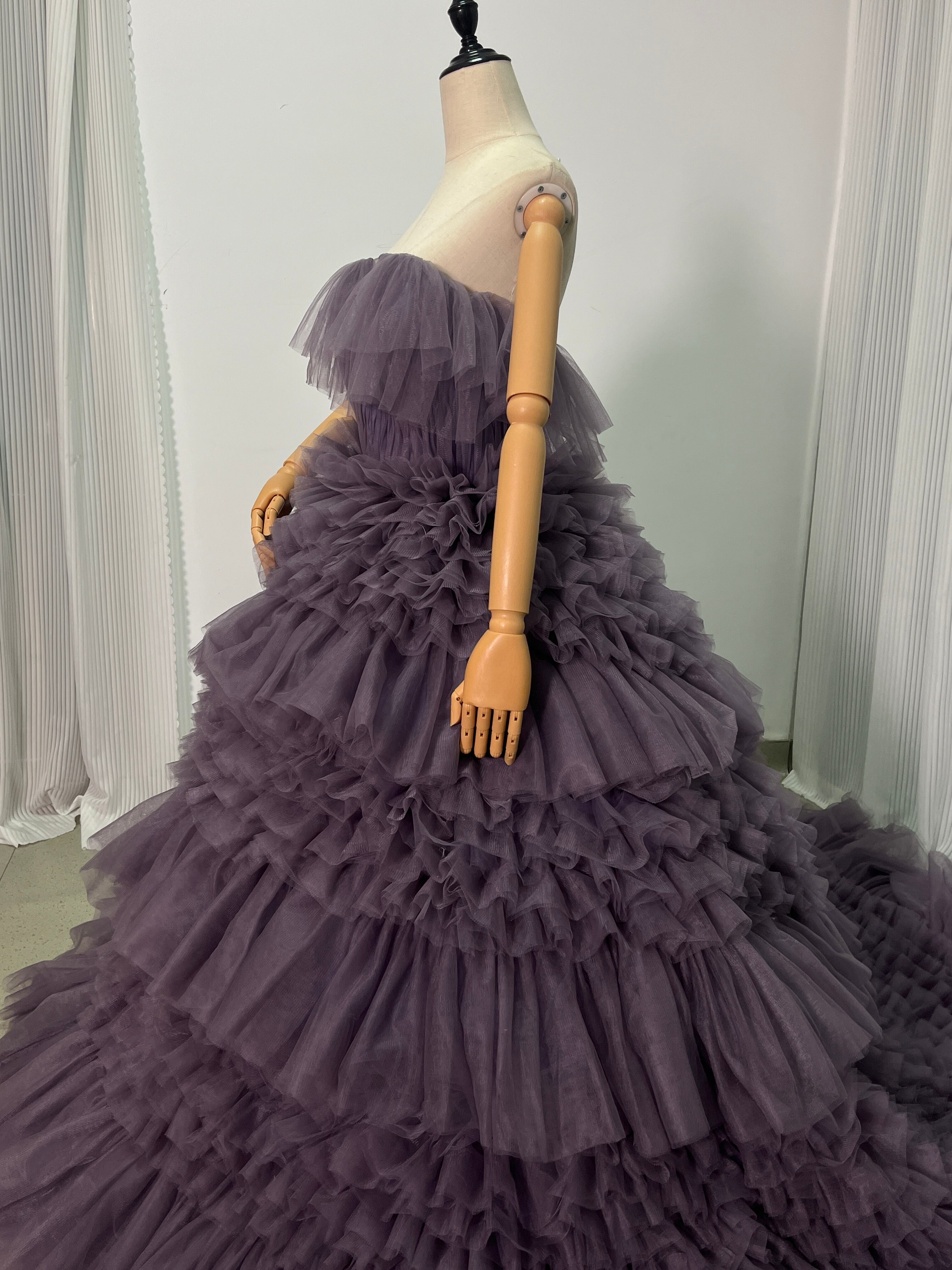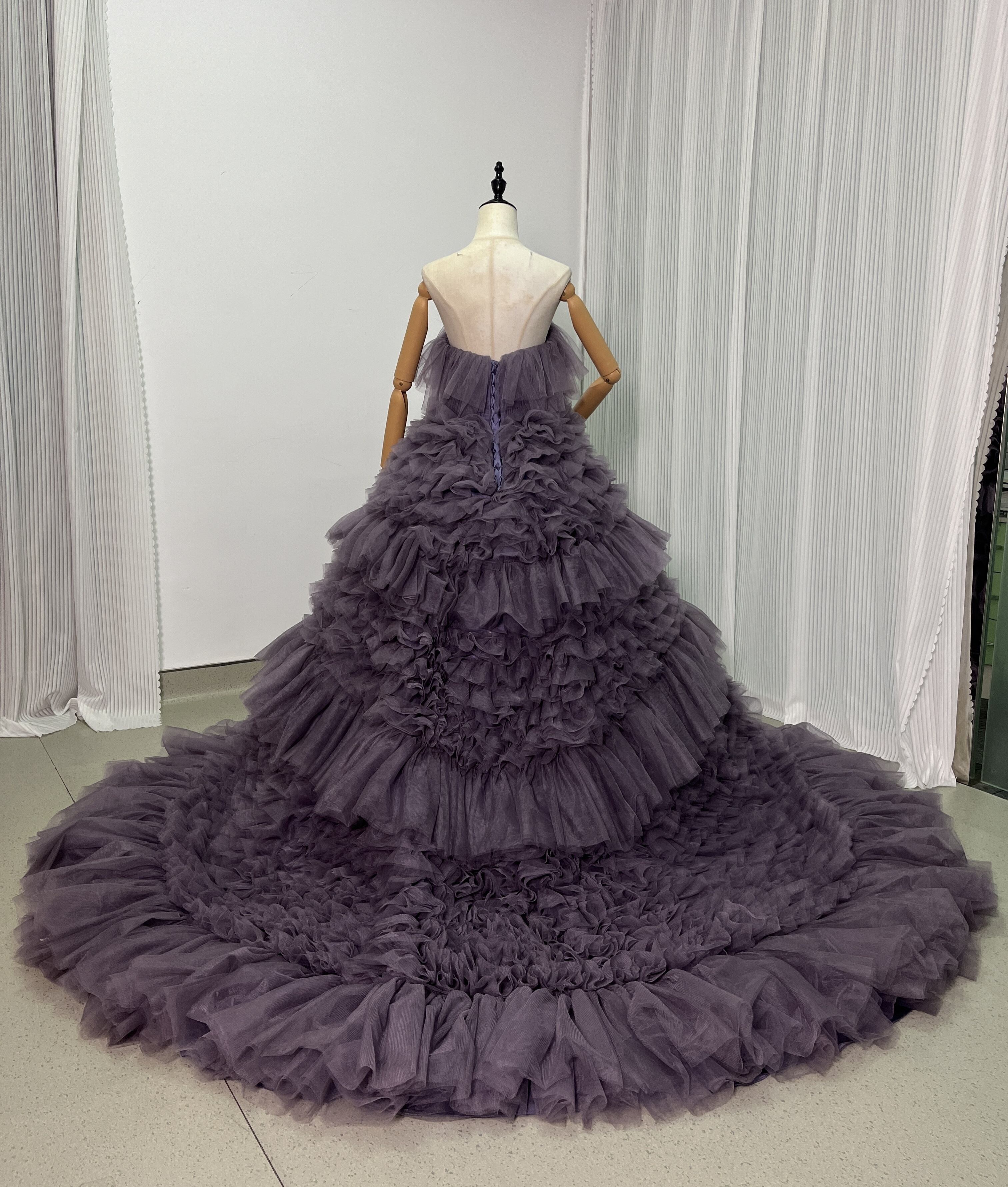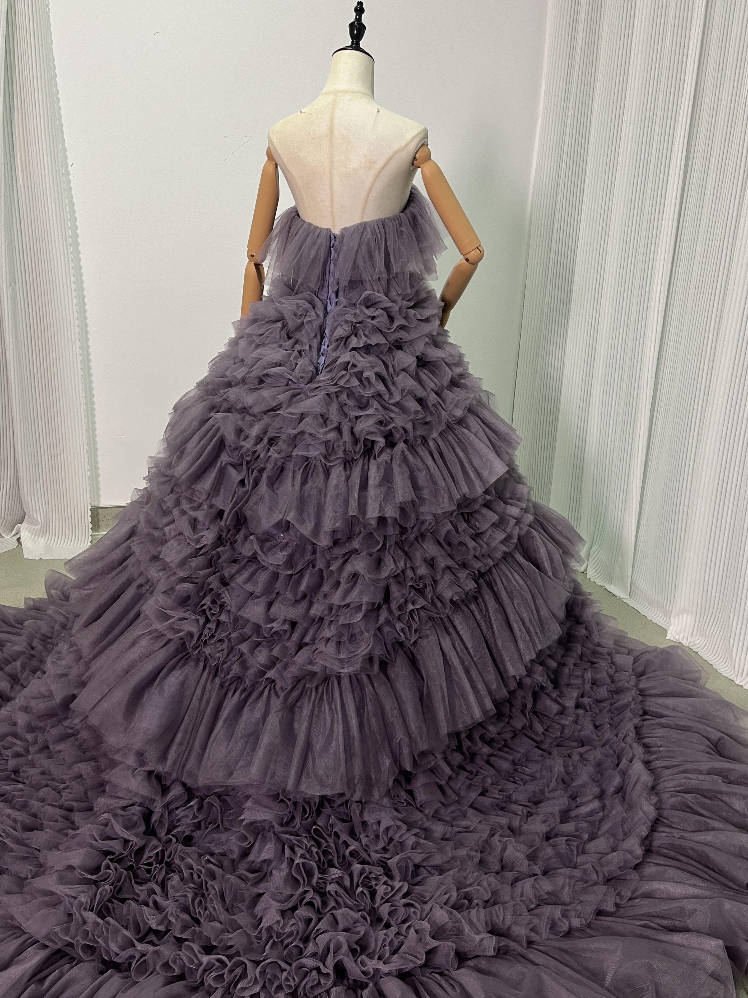 豪華!カラードレス ボリュームドレス ソフトチュール パープル ベアトップ 前撮り 結婚式