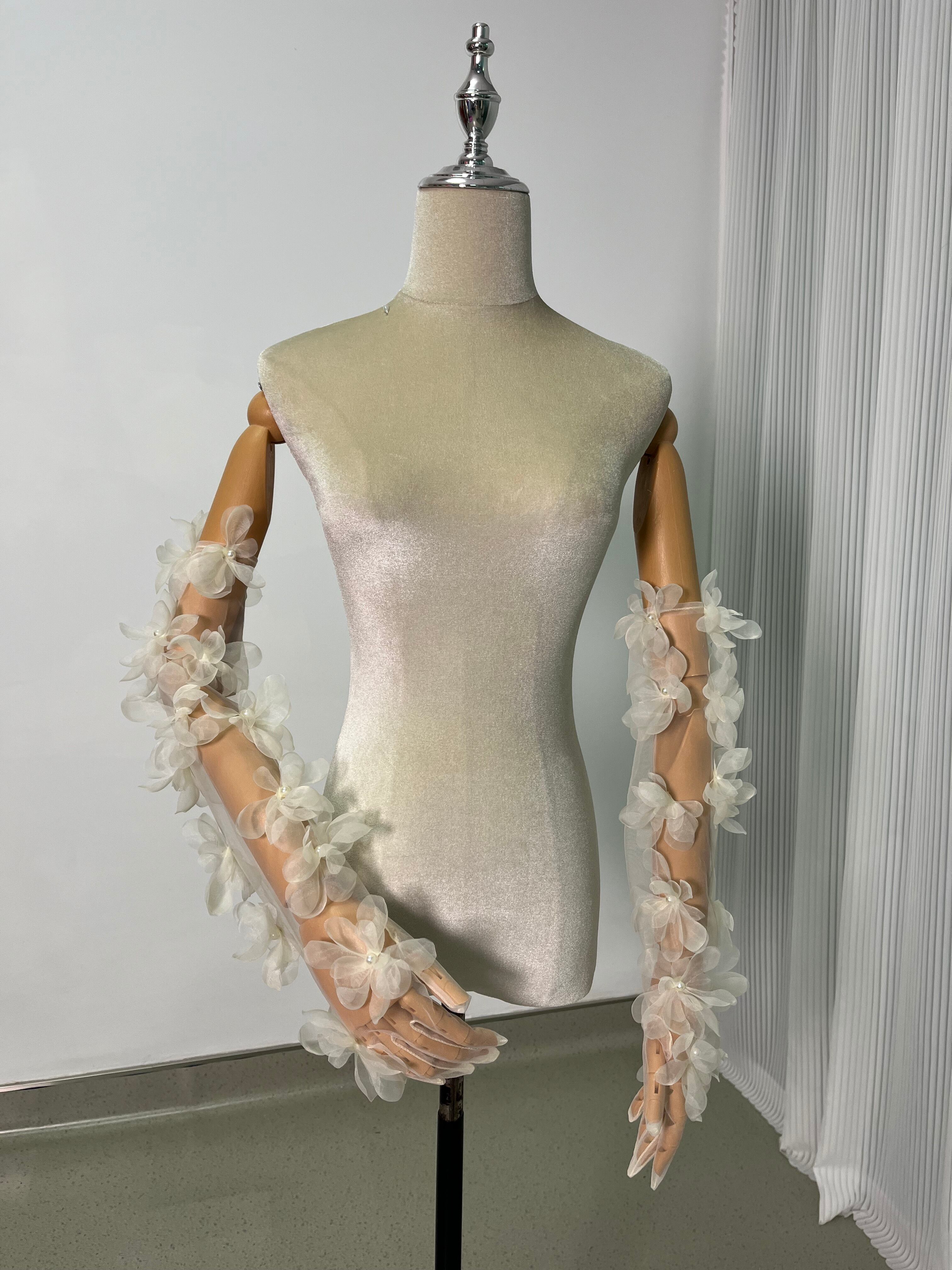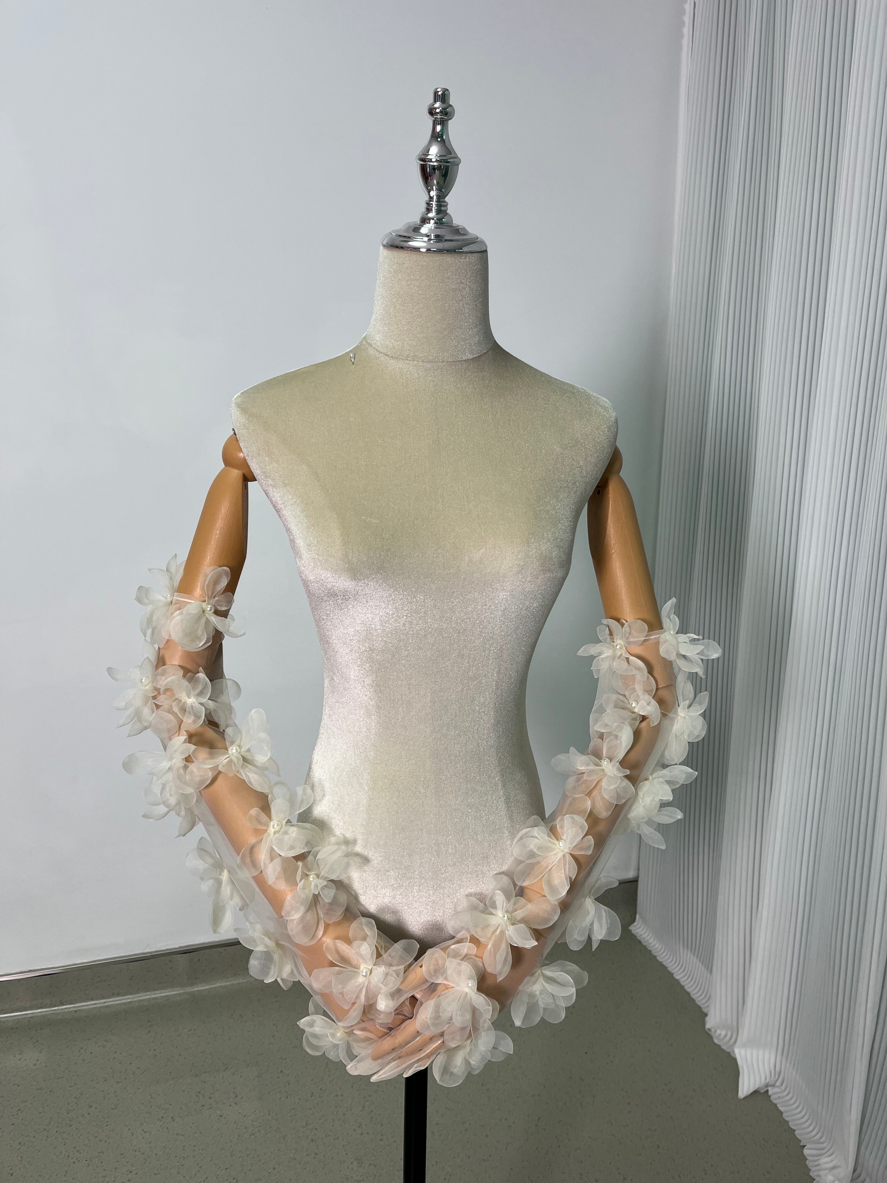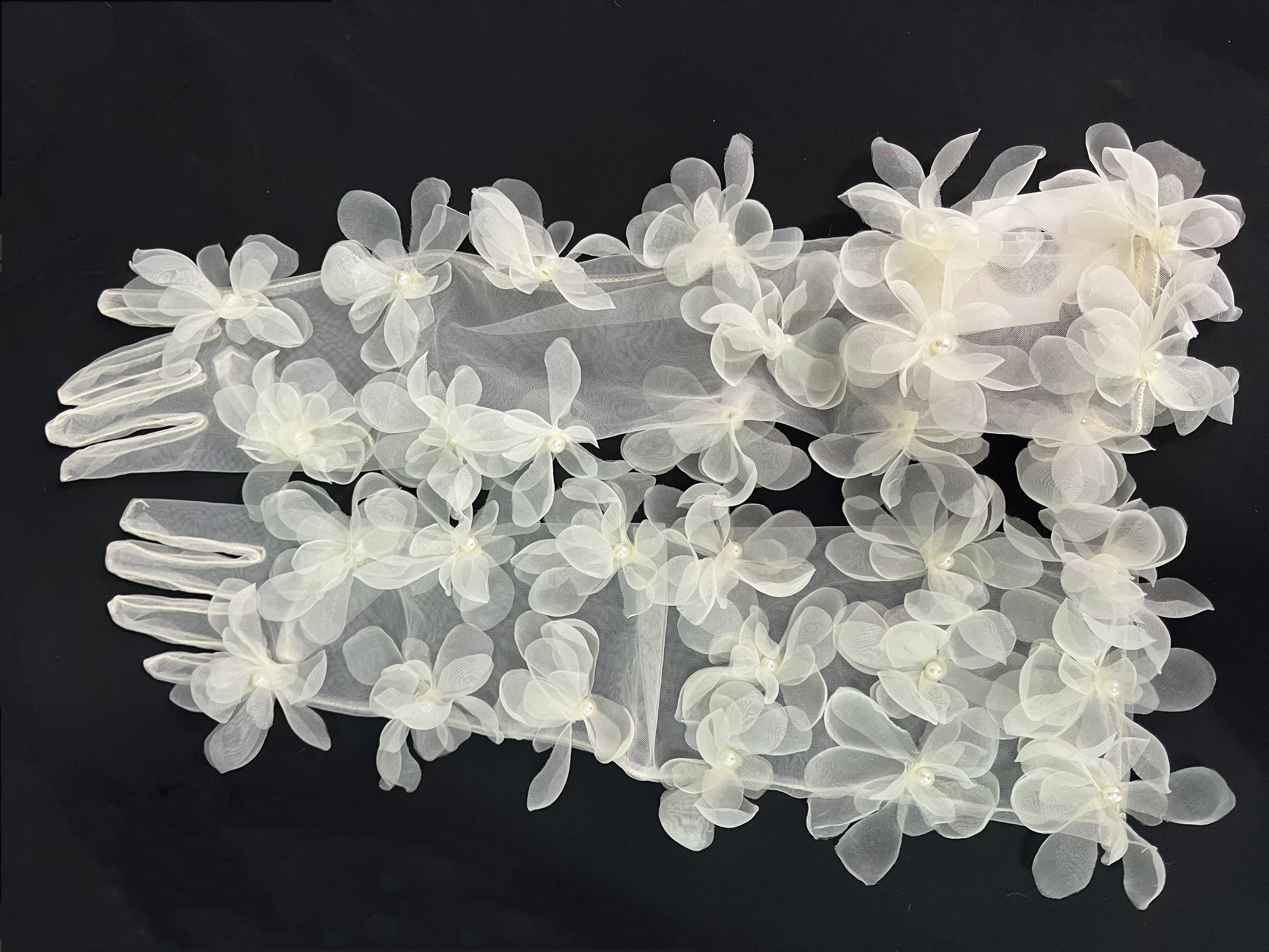 ウエディンググローブ 花モチーフ ビーズ 可愛い シャンパン色 花嫁/ウェディングドレス 結婚式