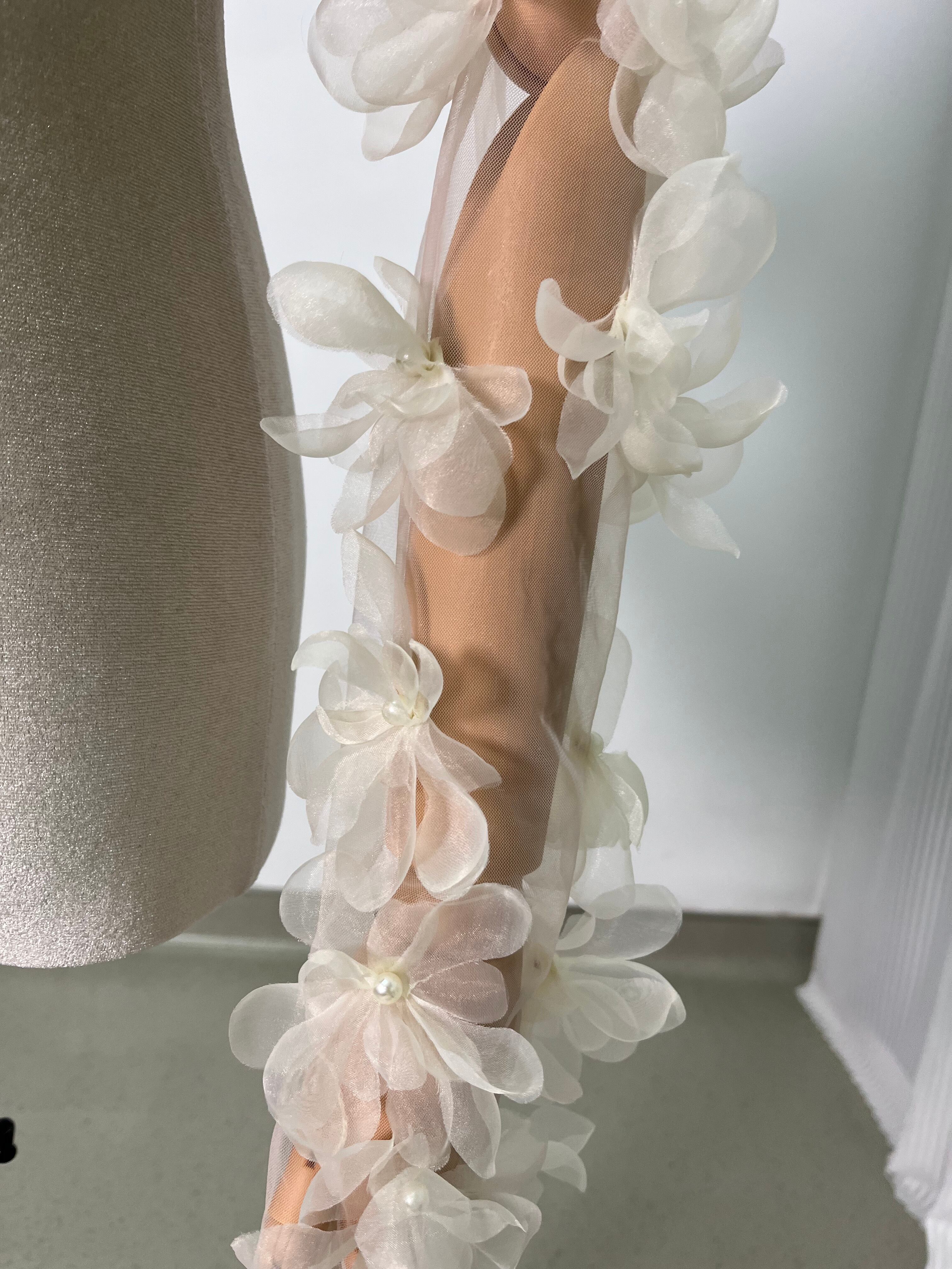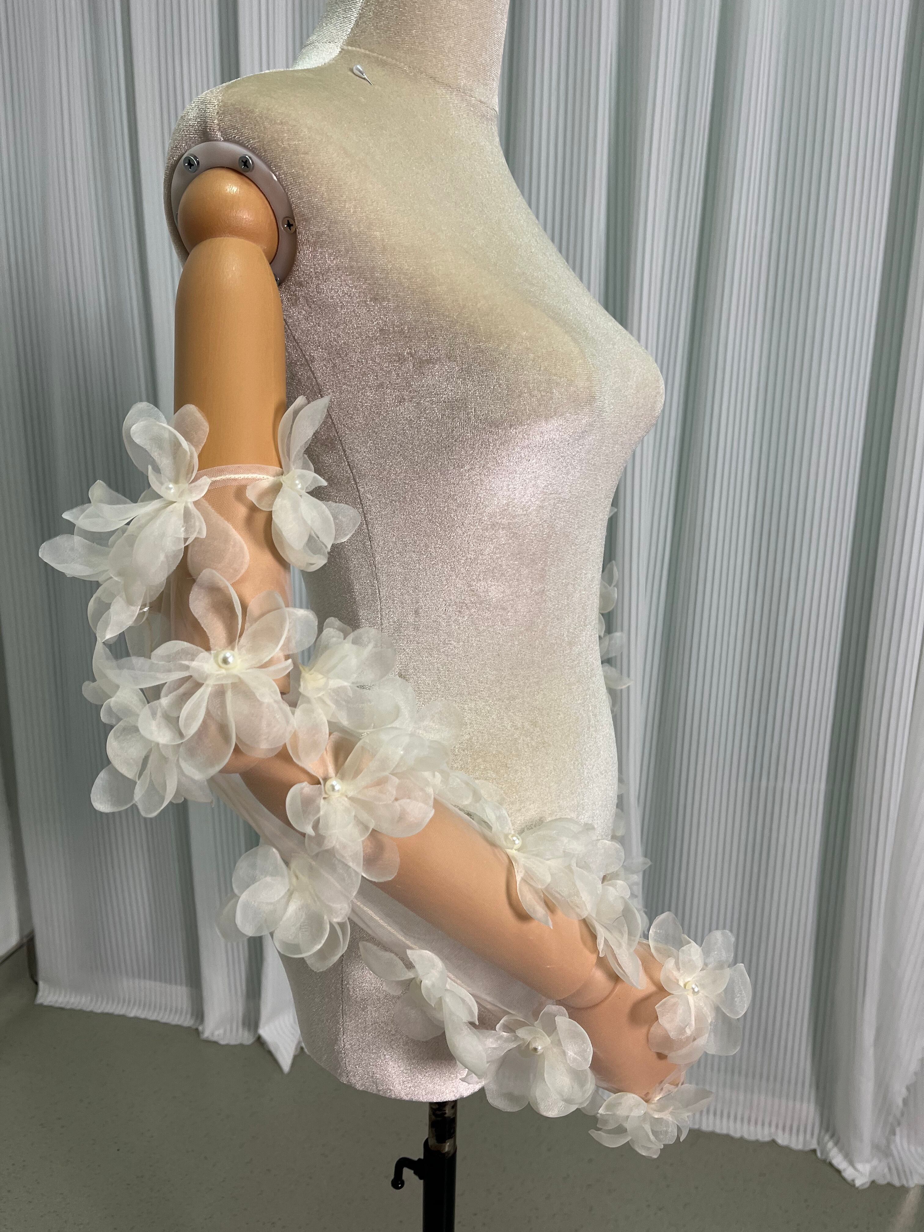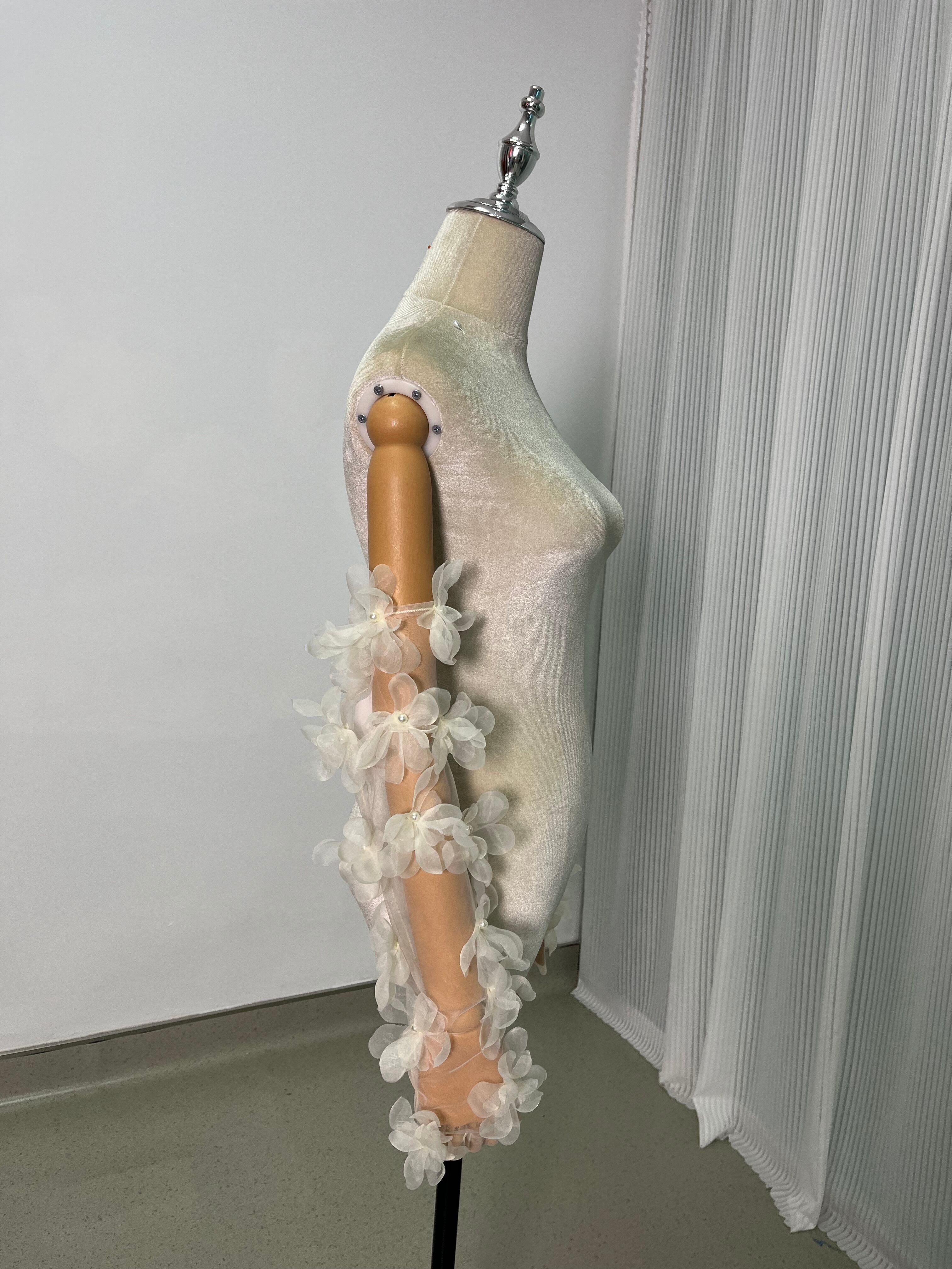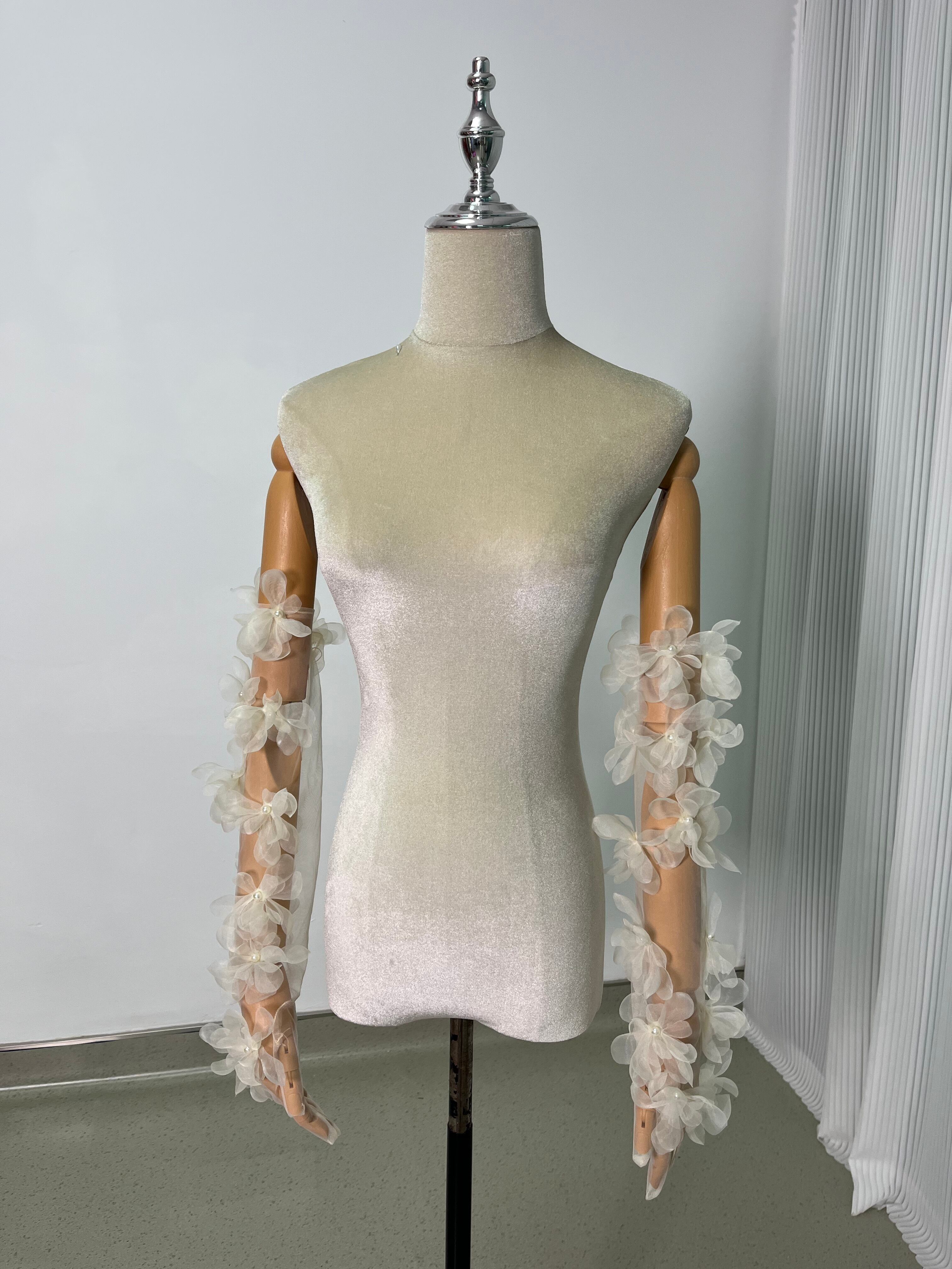 ウエディンググローブ 花モチーフ ビーズ 可愛い シャンパン色 花嫁/ウェディングドレス 結婚式