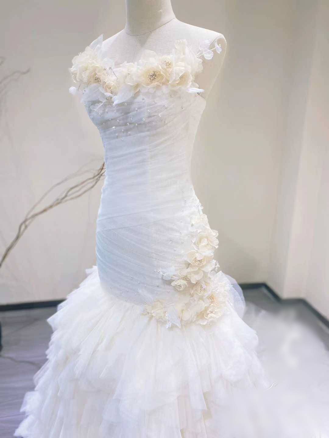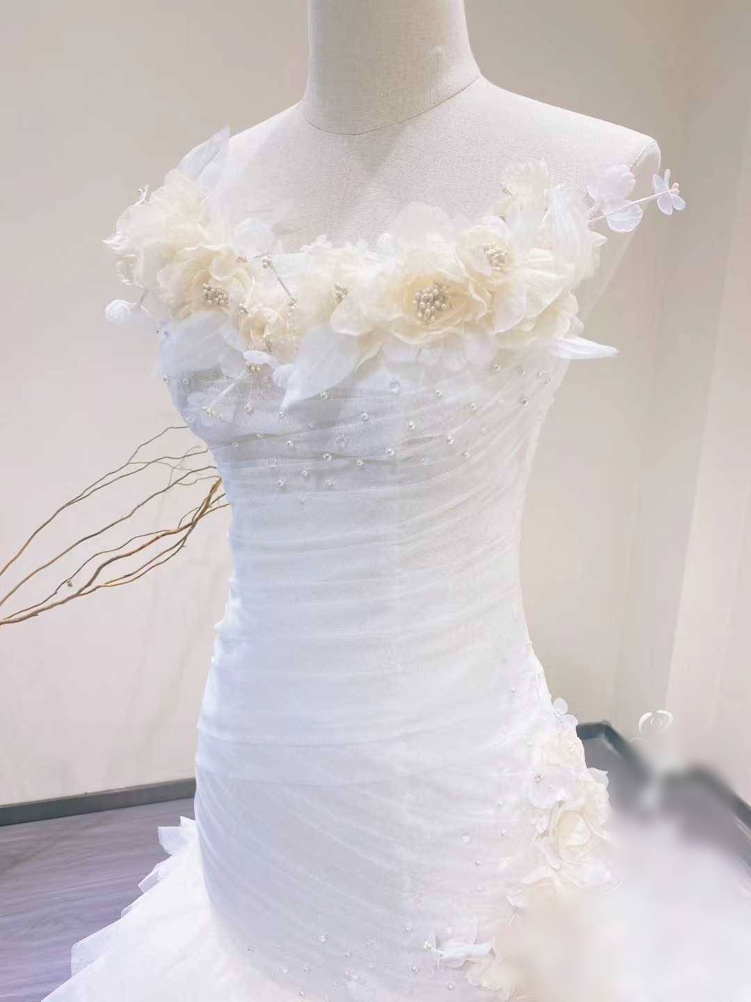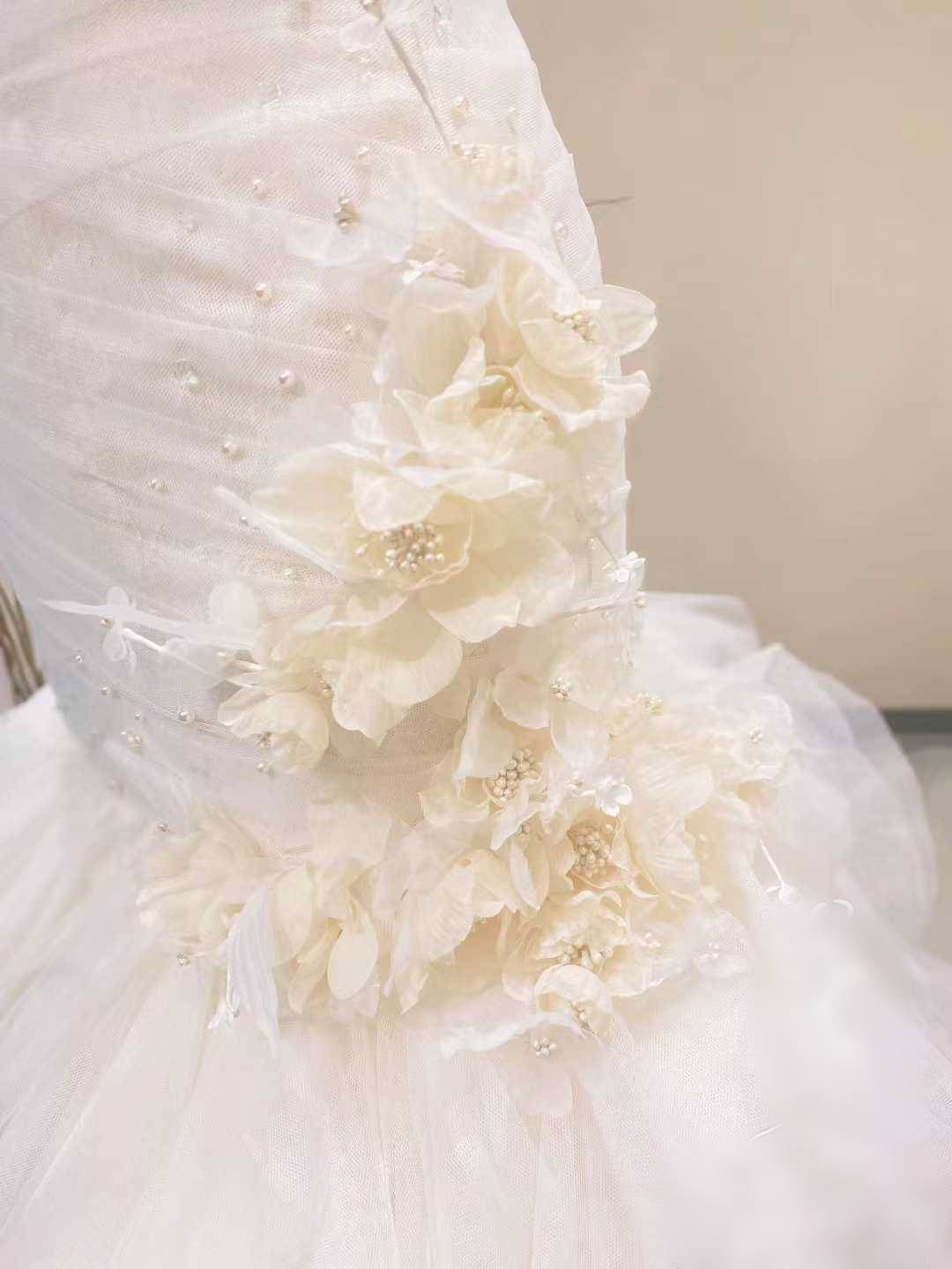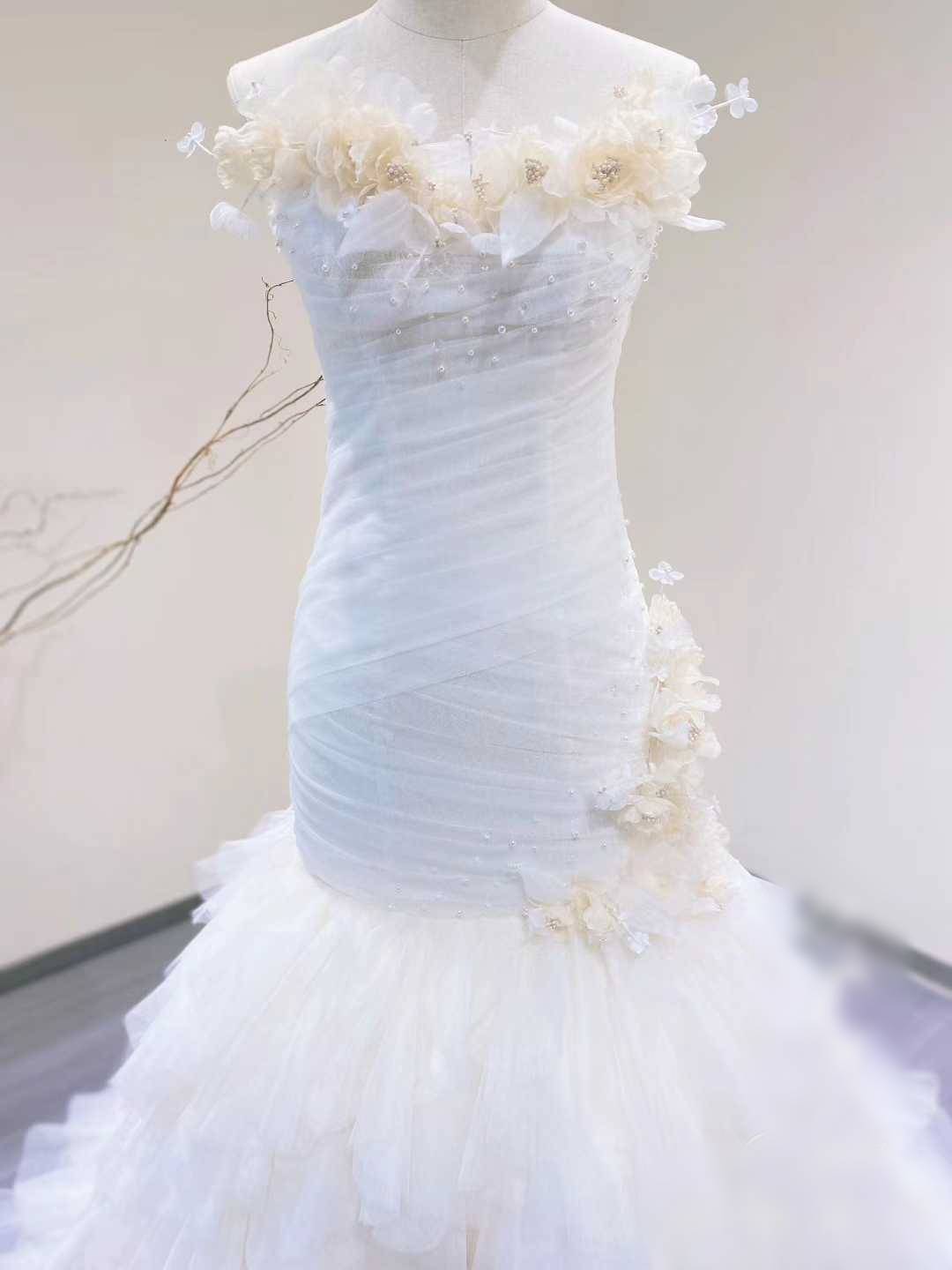 華やか!ウェディングドレス ソフトマーメイドライン チュールスカート ハンドドレープ ブライダル 花嫁