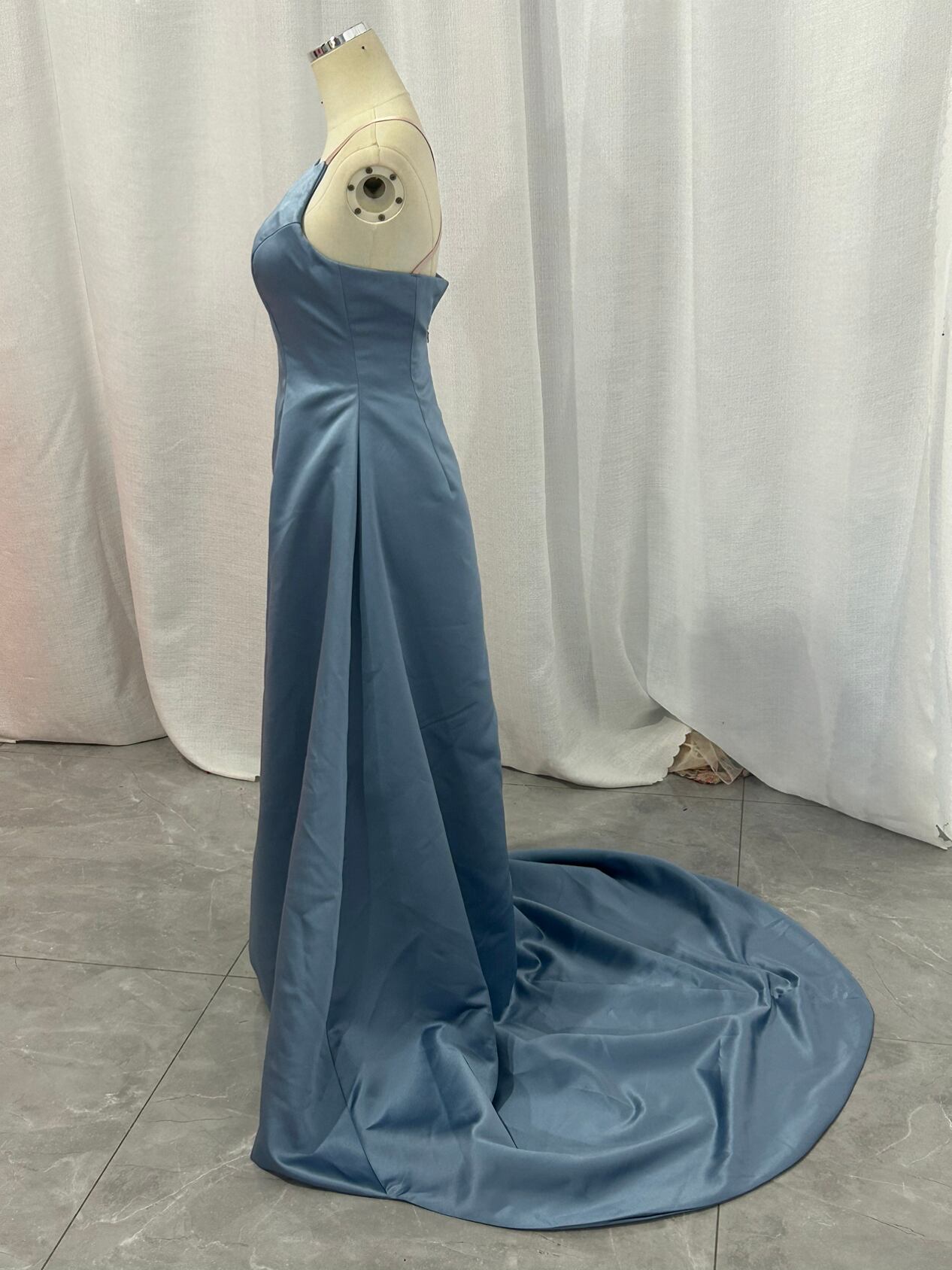 パーティードレス 爽やかで優しいブルー キャミソール 前撮り ホルターネック バックレス