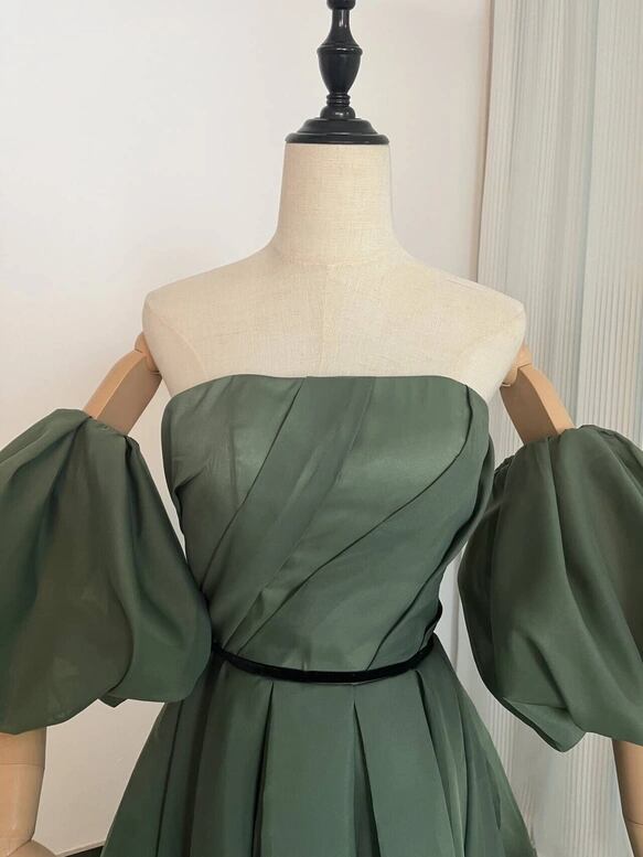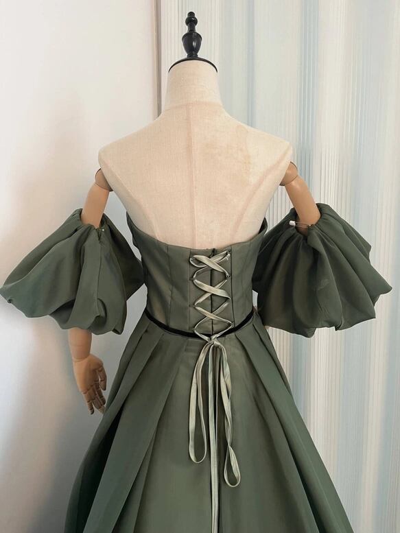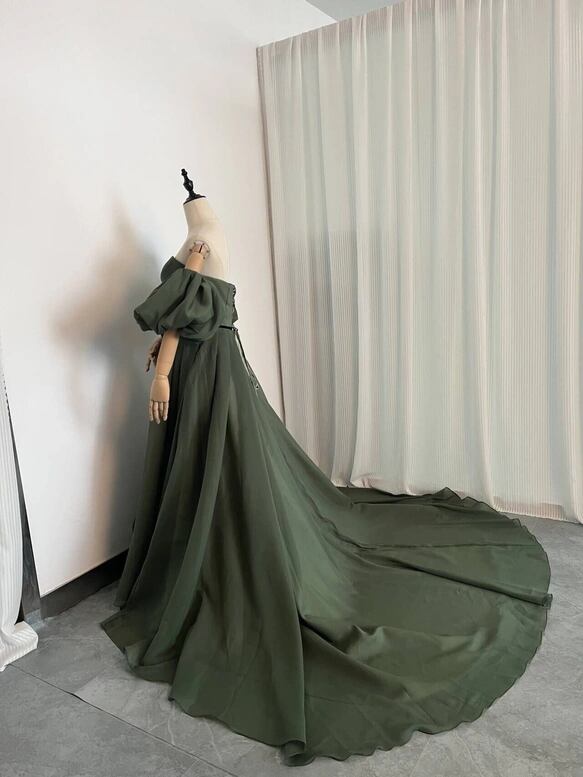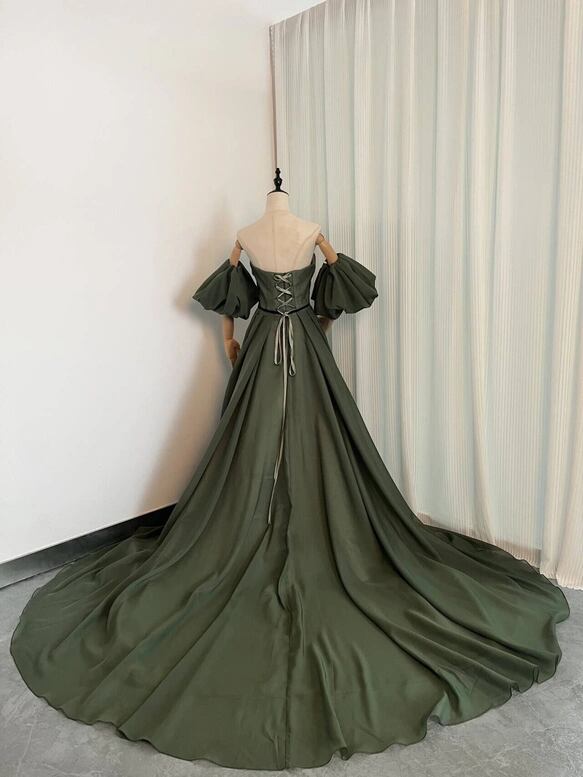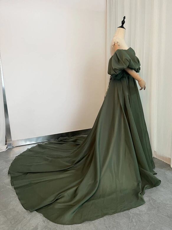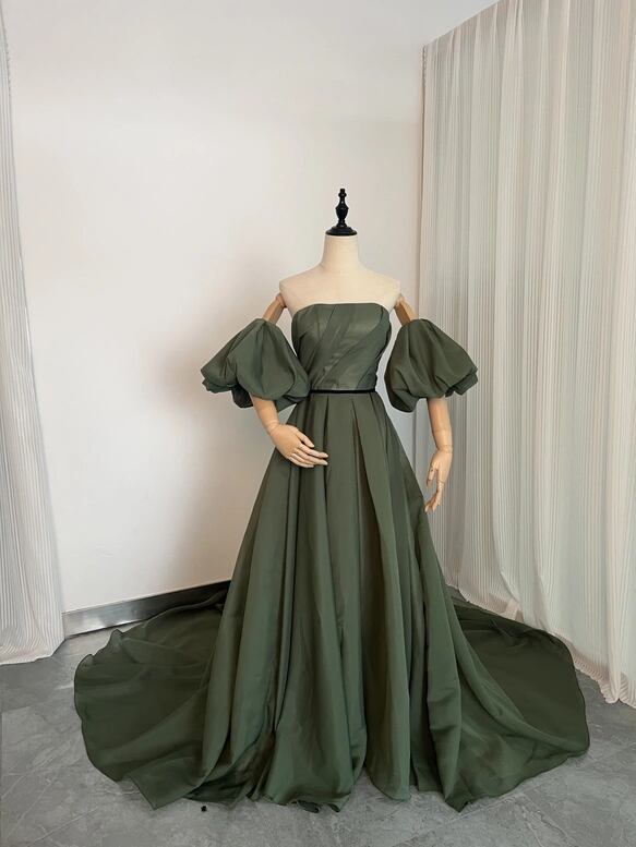 カラードレス カーキマリアージュ ベアトップ トレーン 結婚式