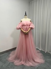 カラードレス マタニティドレス パーティードレス 短袖 ロングスリーブ チュールスカート フリー 前撮り