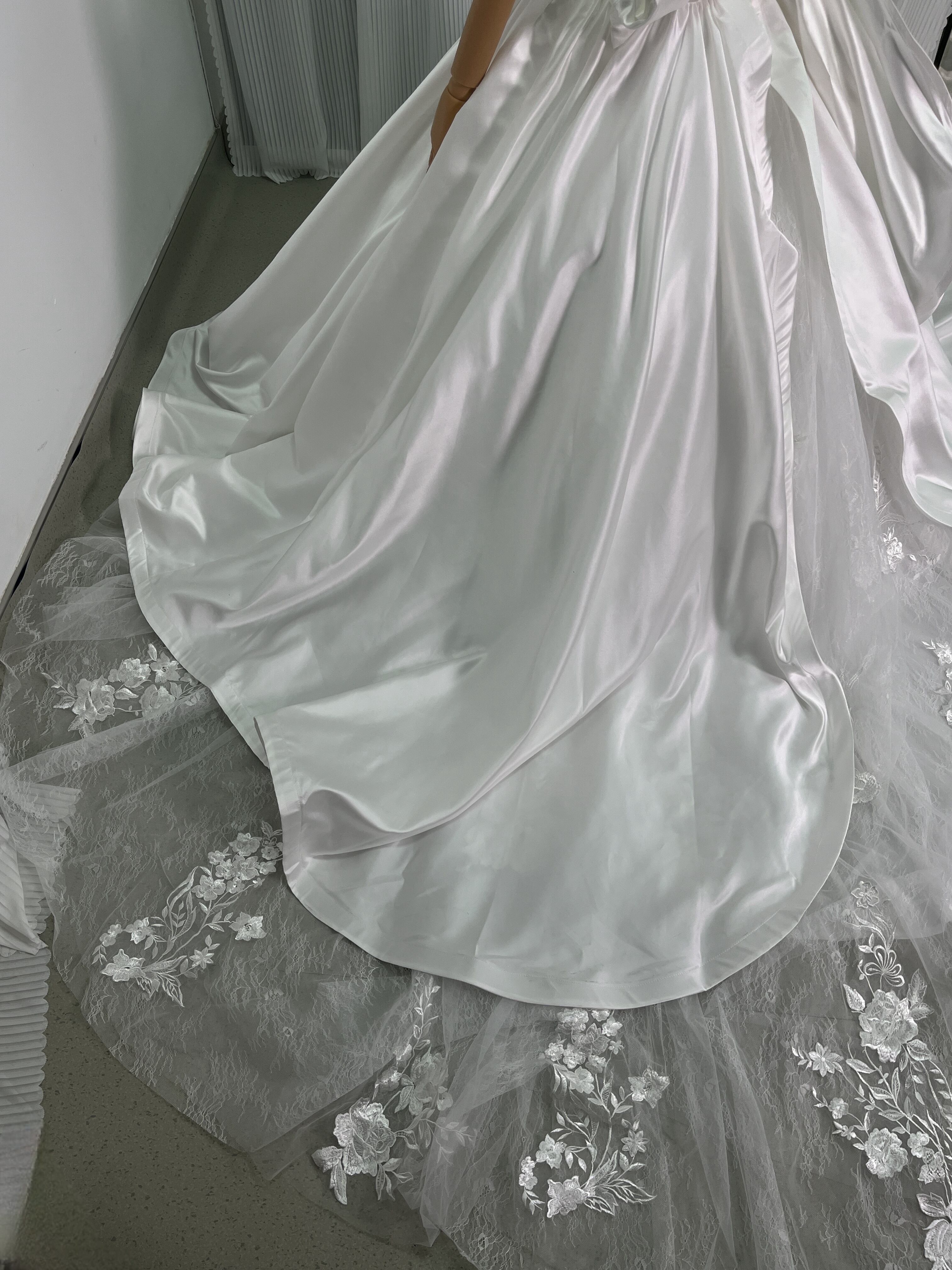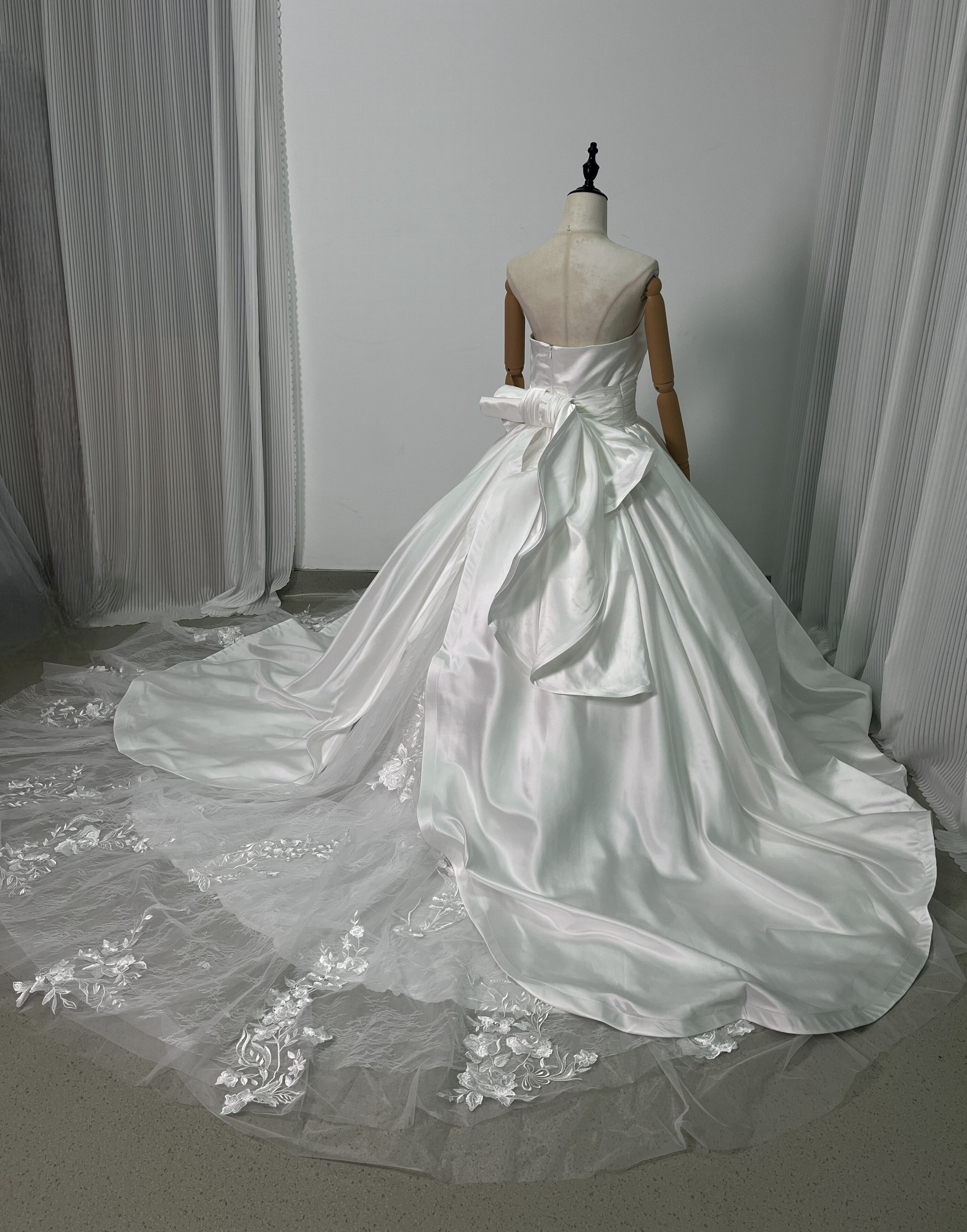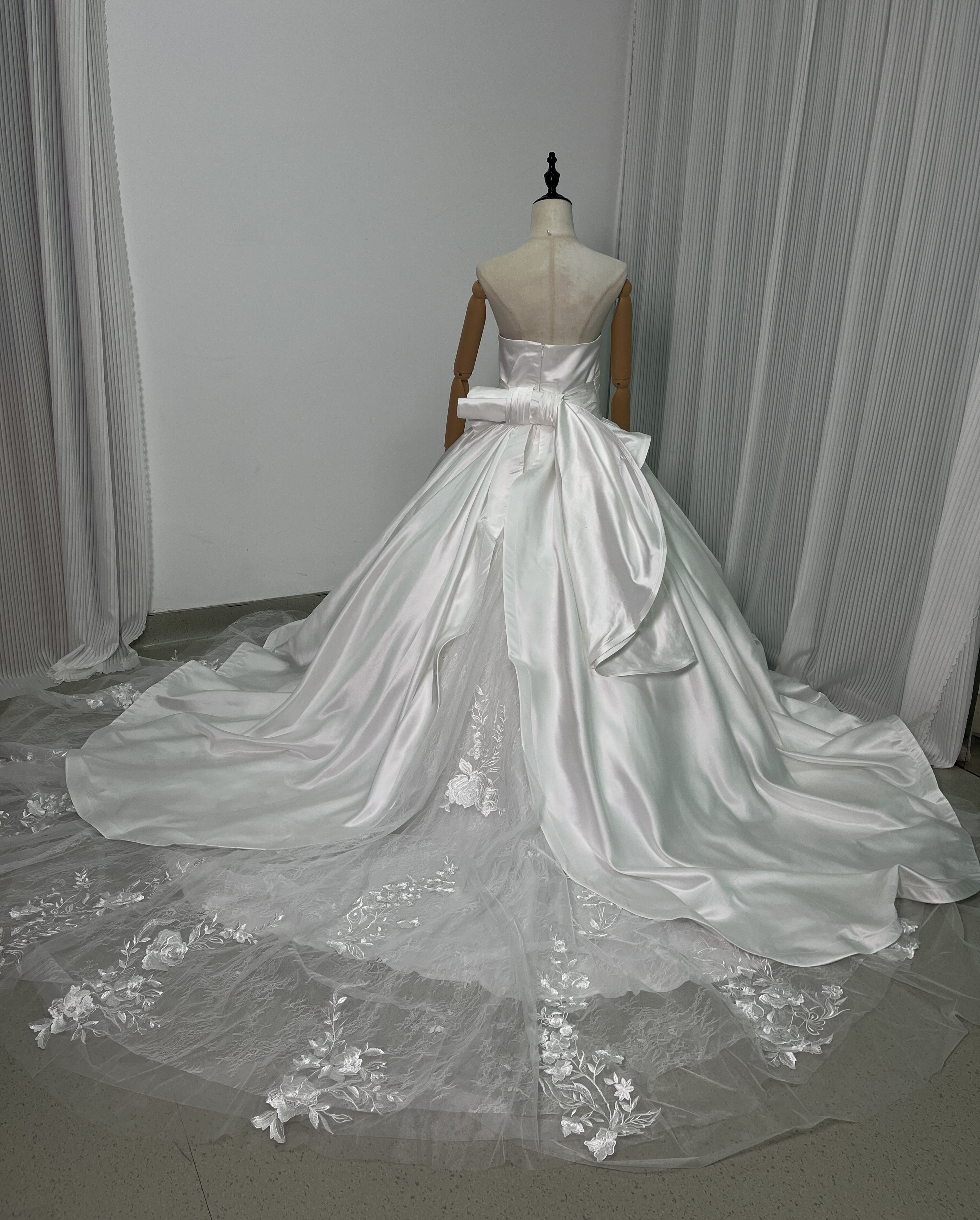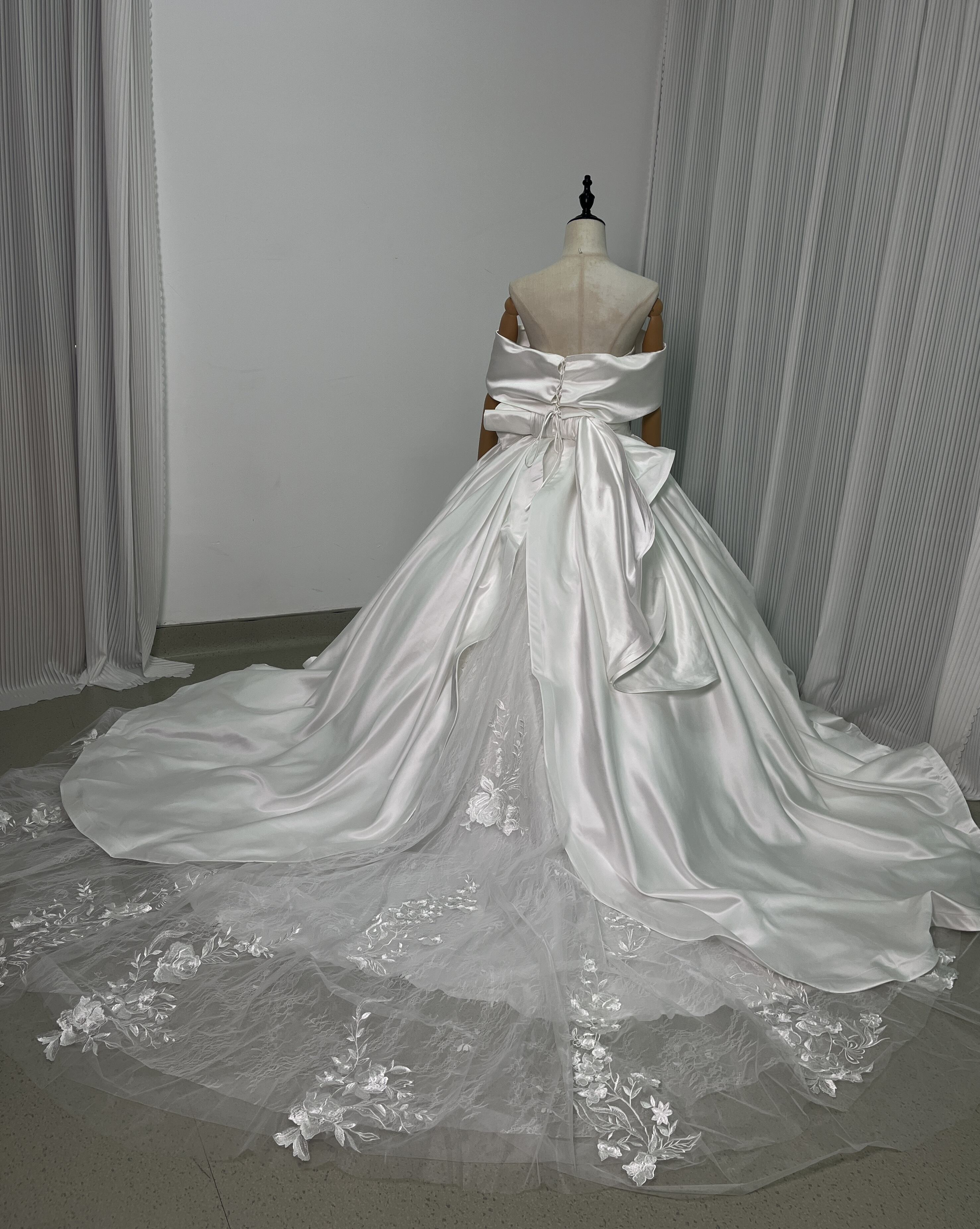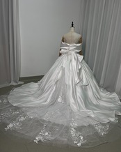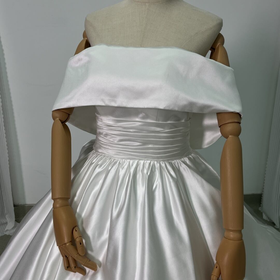 豪華! オフショルダー 華やかなトレーン レース 取り外し ふっくら柔らかなバックリボン 花嫁