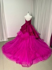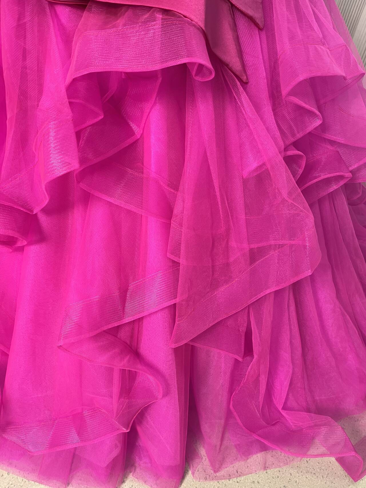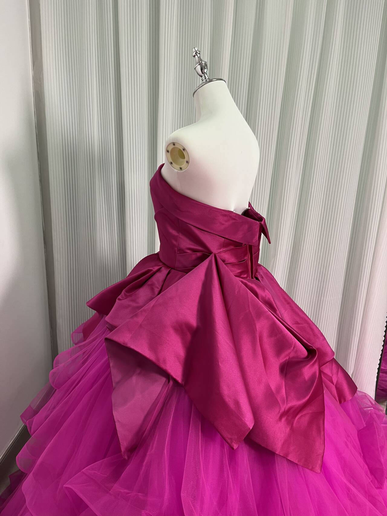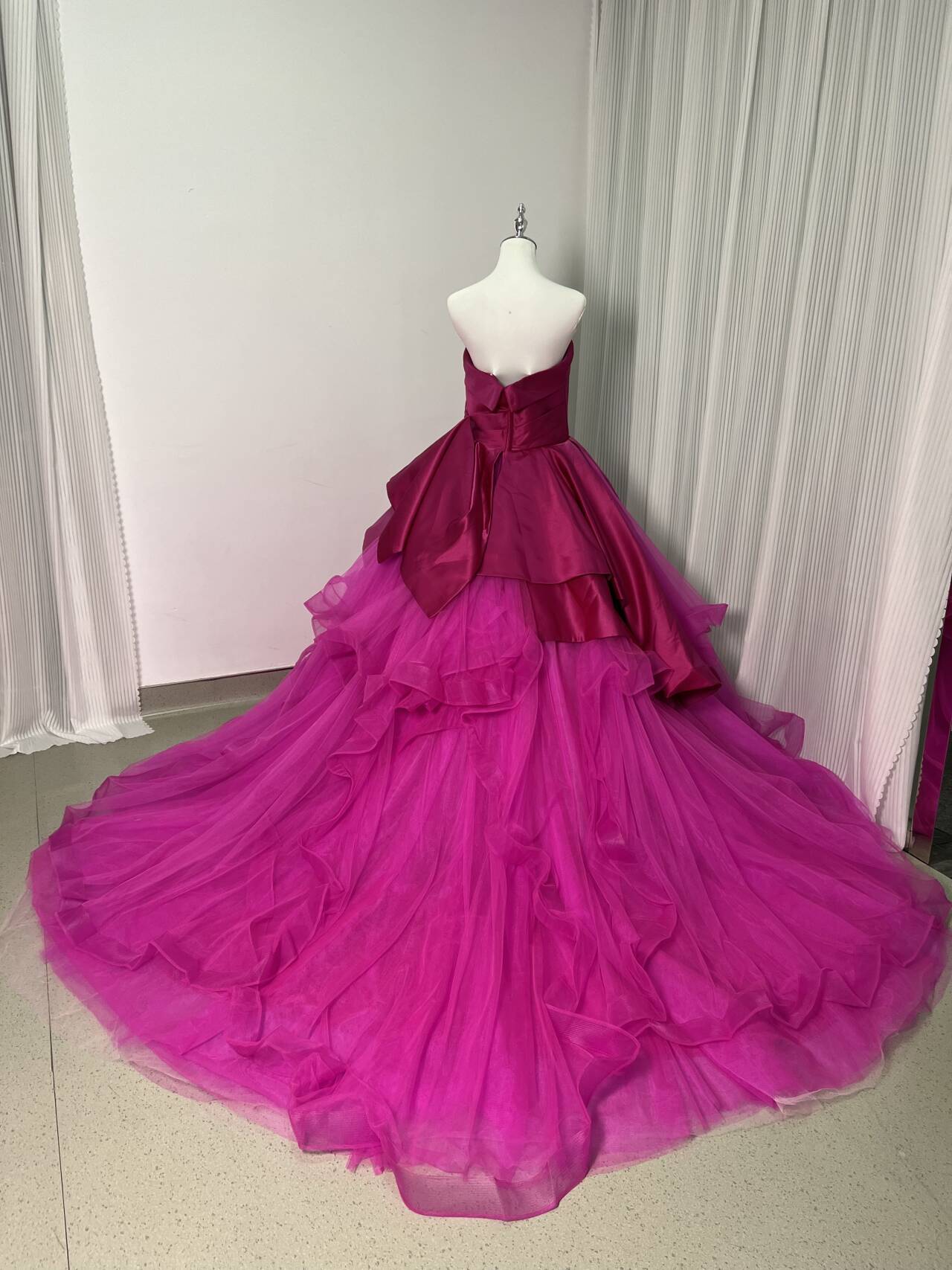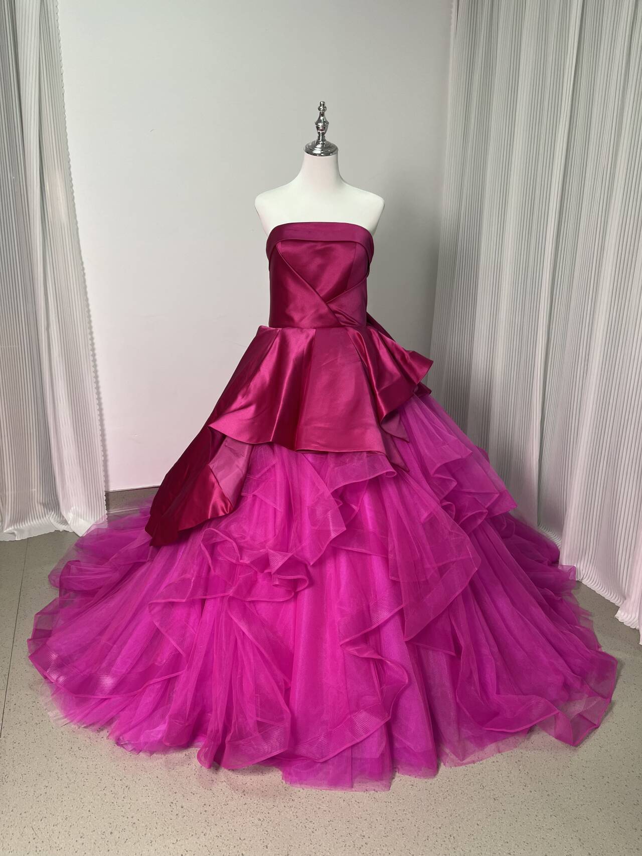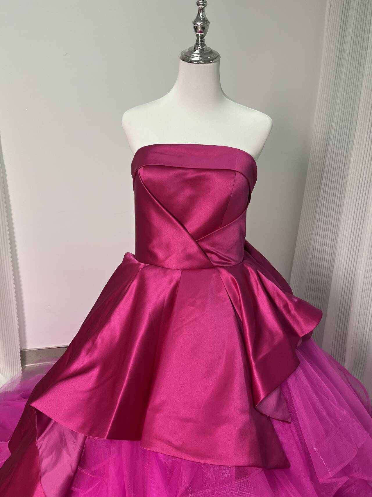カラードレス ビビッドピンク ベアトップ チュールスカート デザイン感 プリンセスライン 結婚式 前撮り