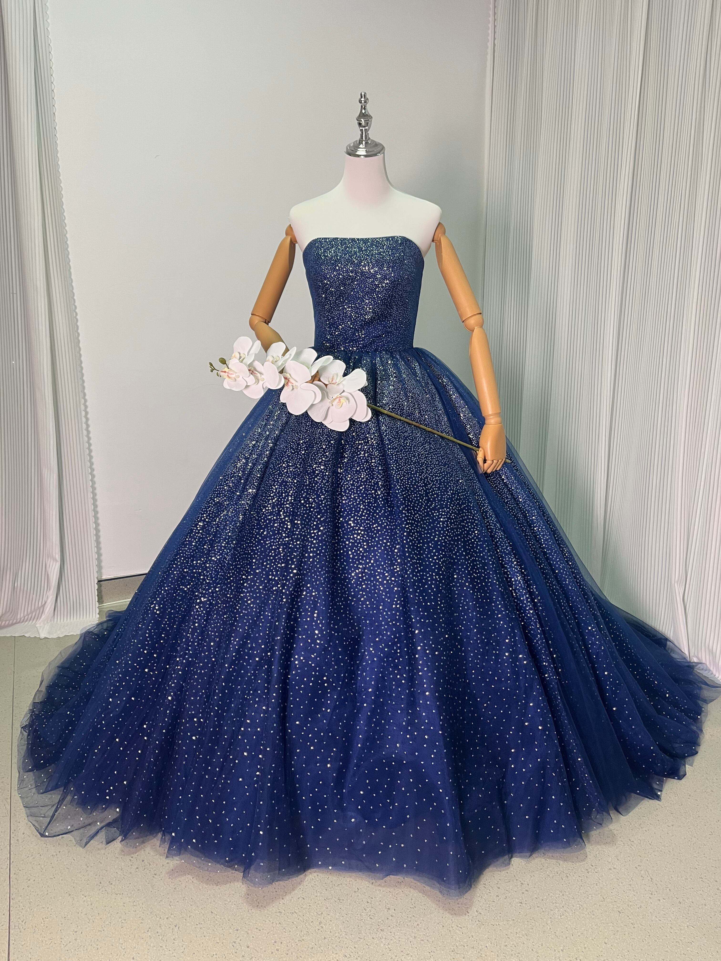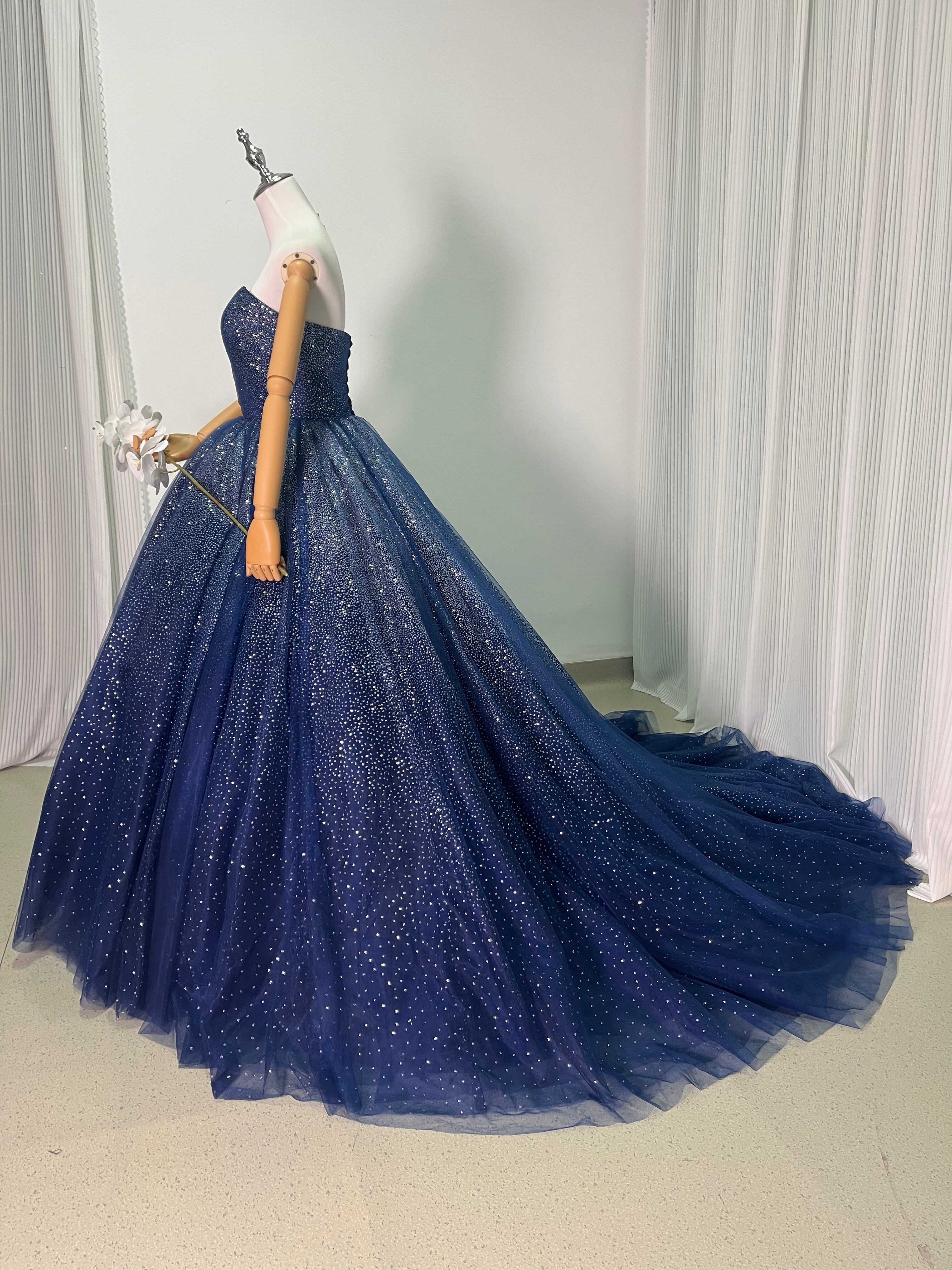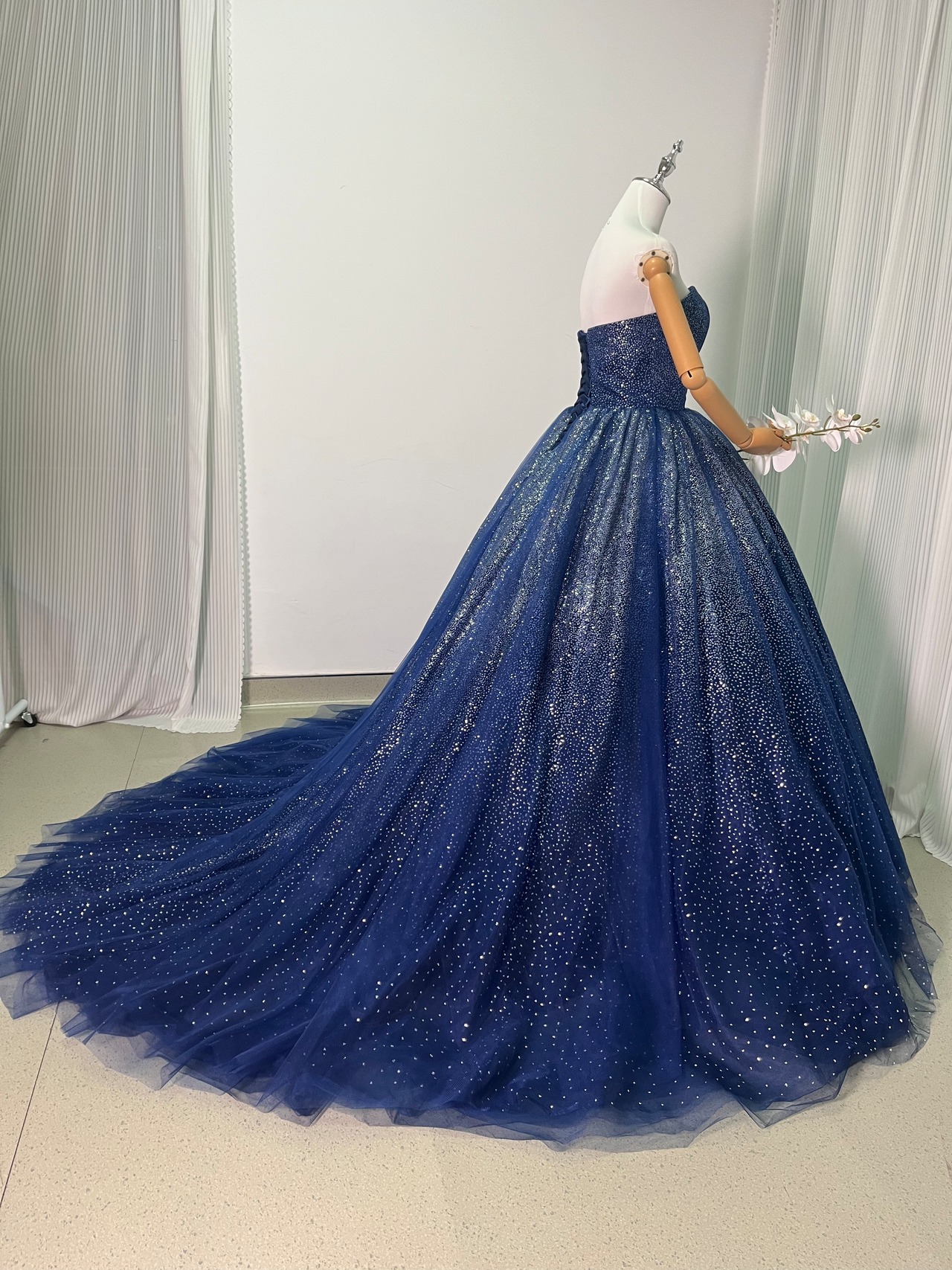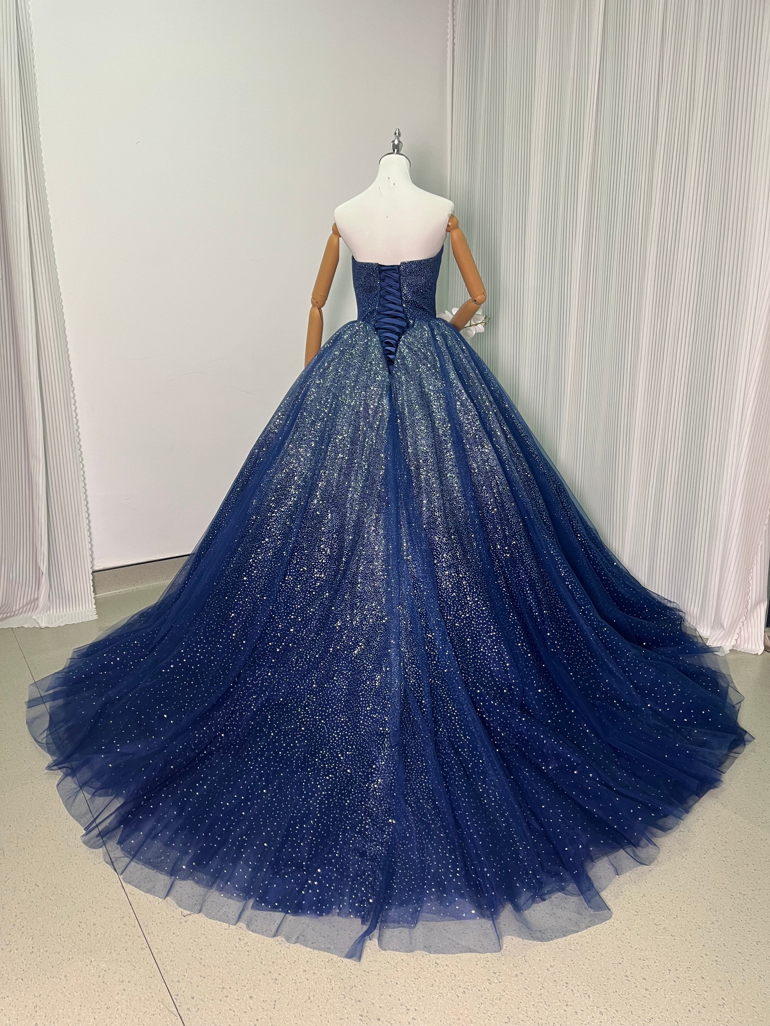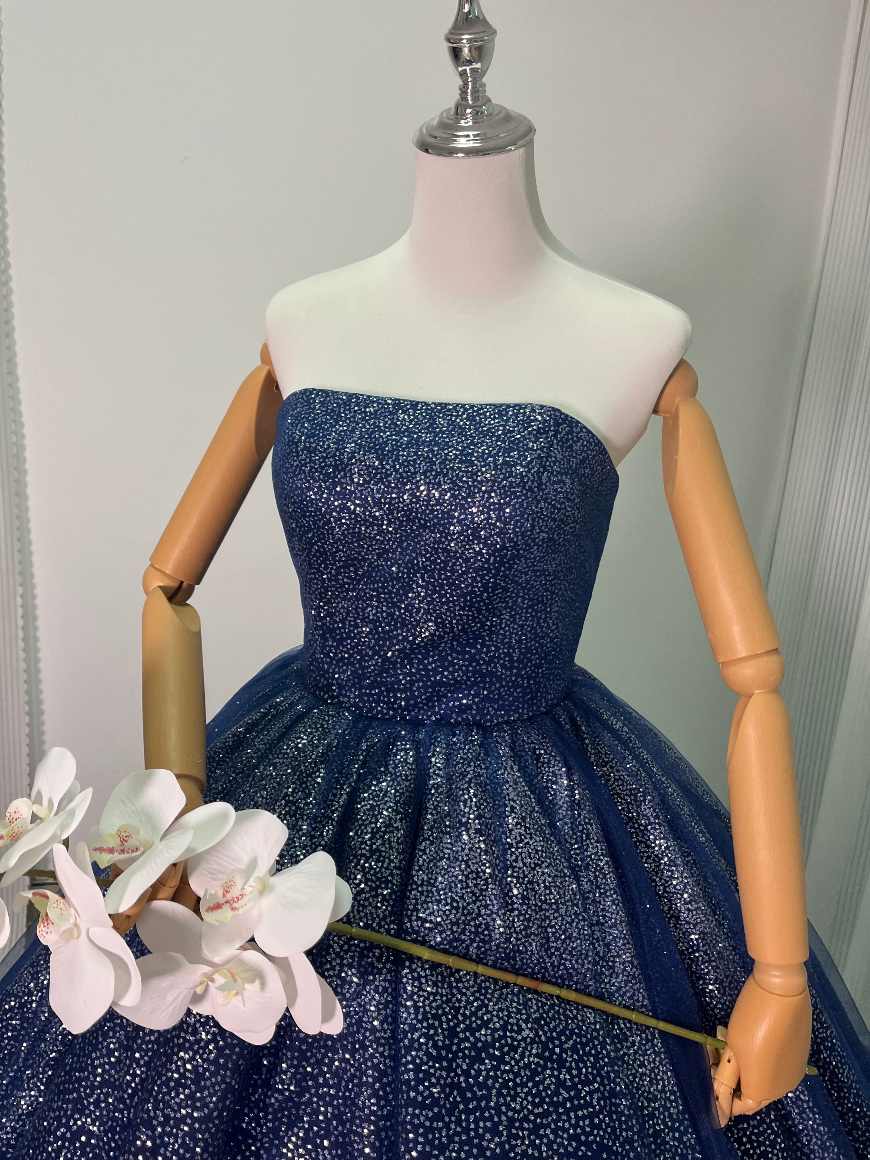 カラードレス ネイビー 編み上げ キラキラグリッターチュール グラデーションドレス エレガント 結婚式