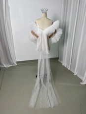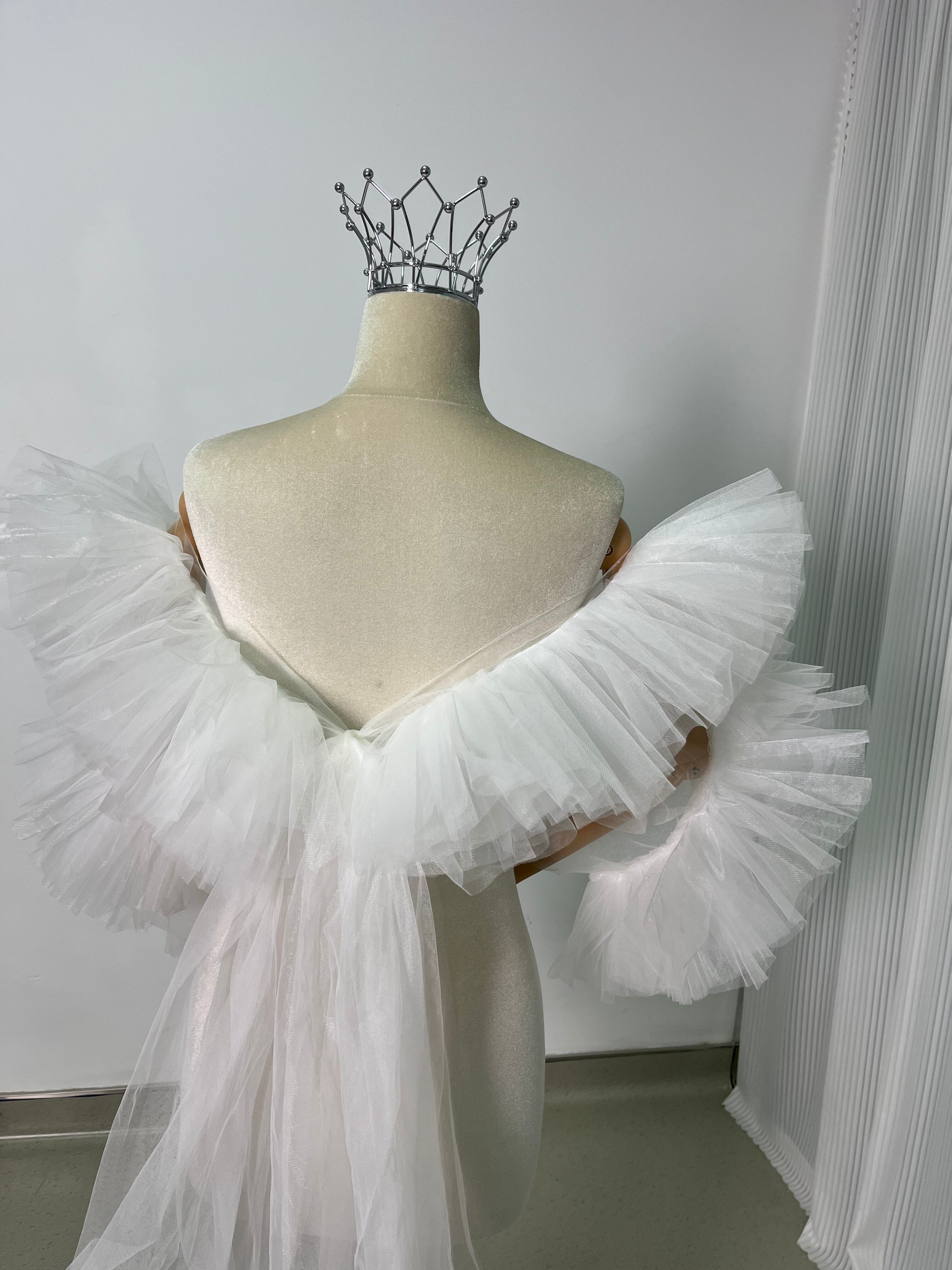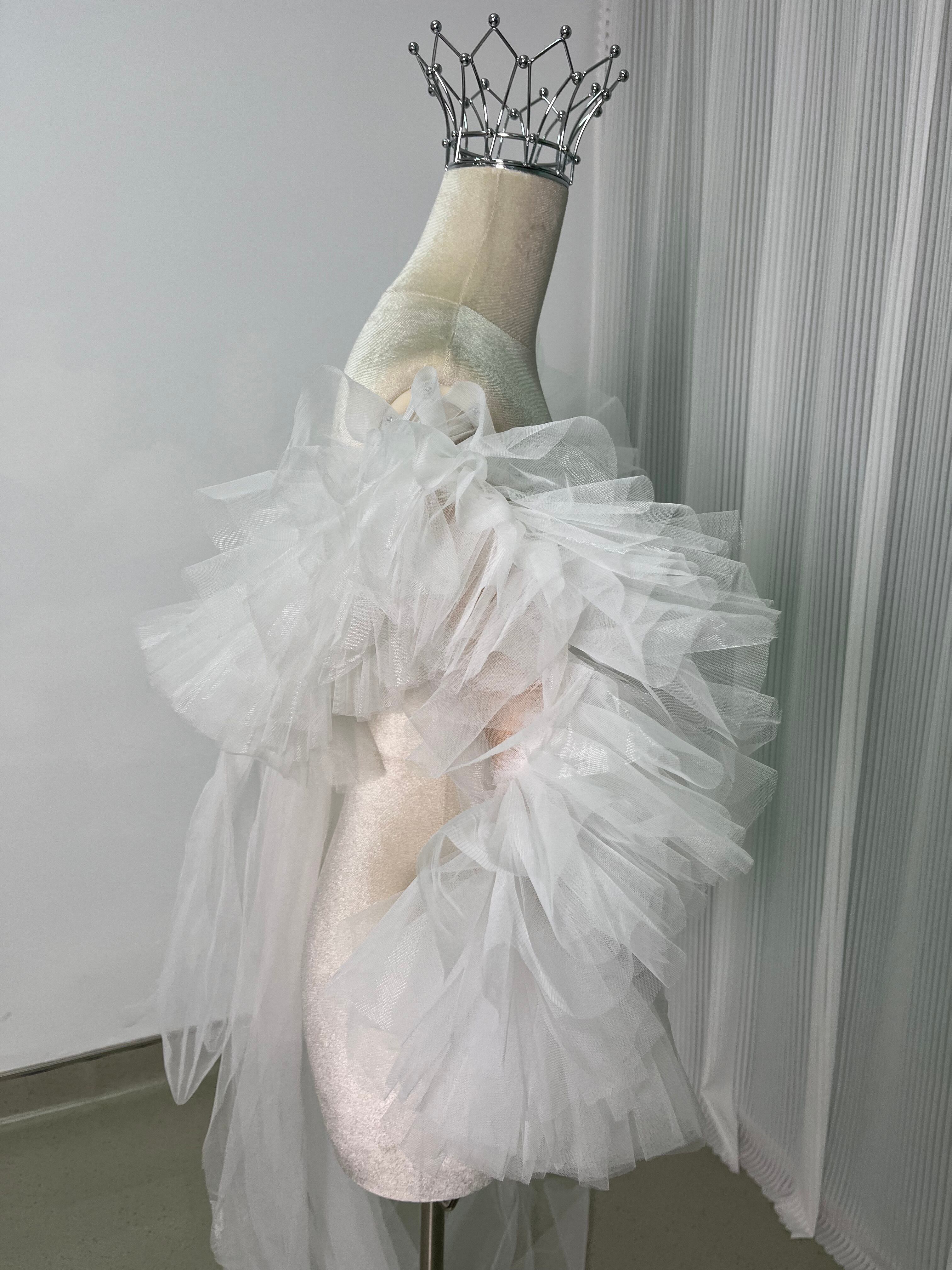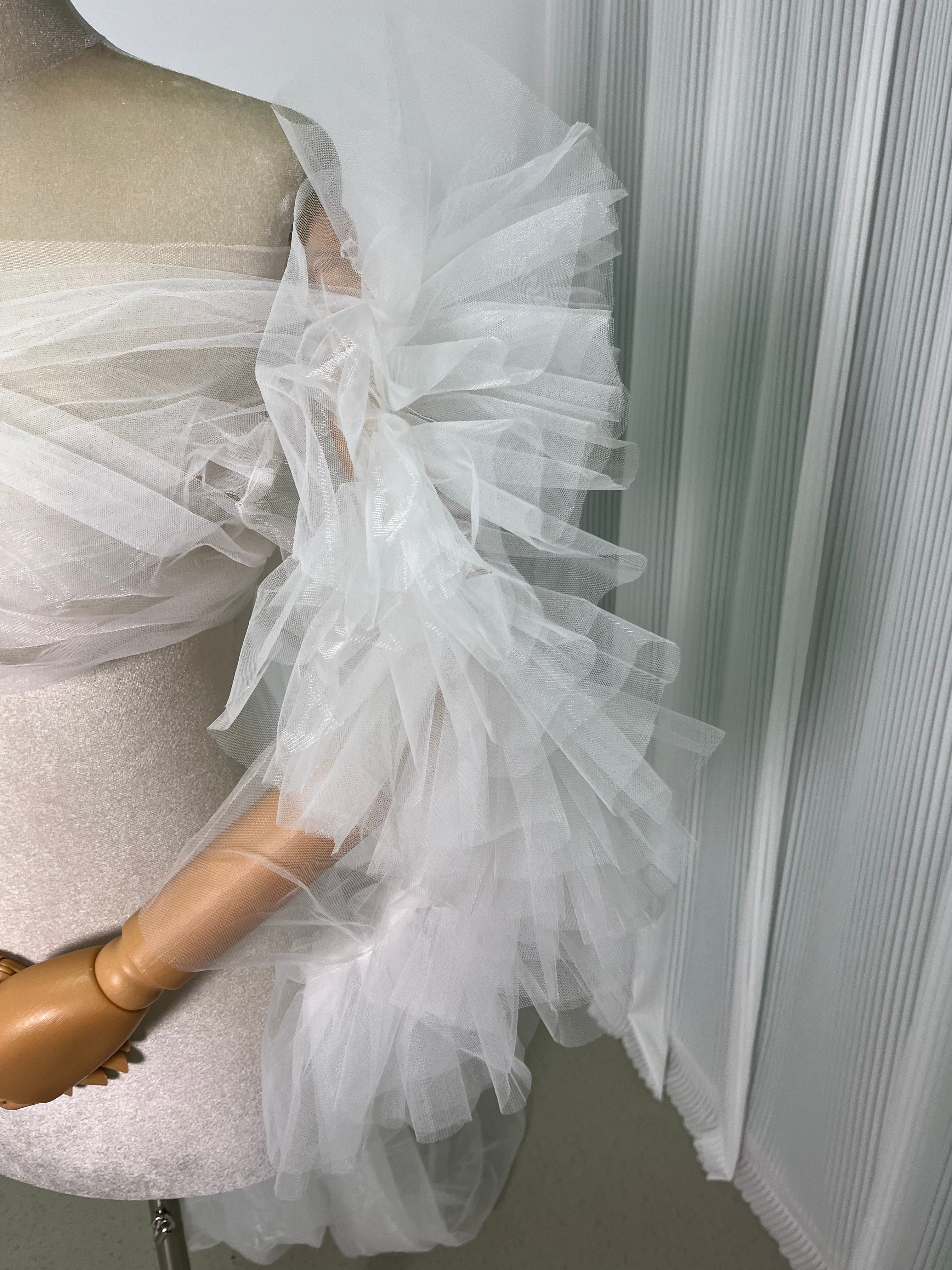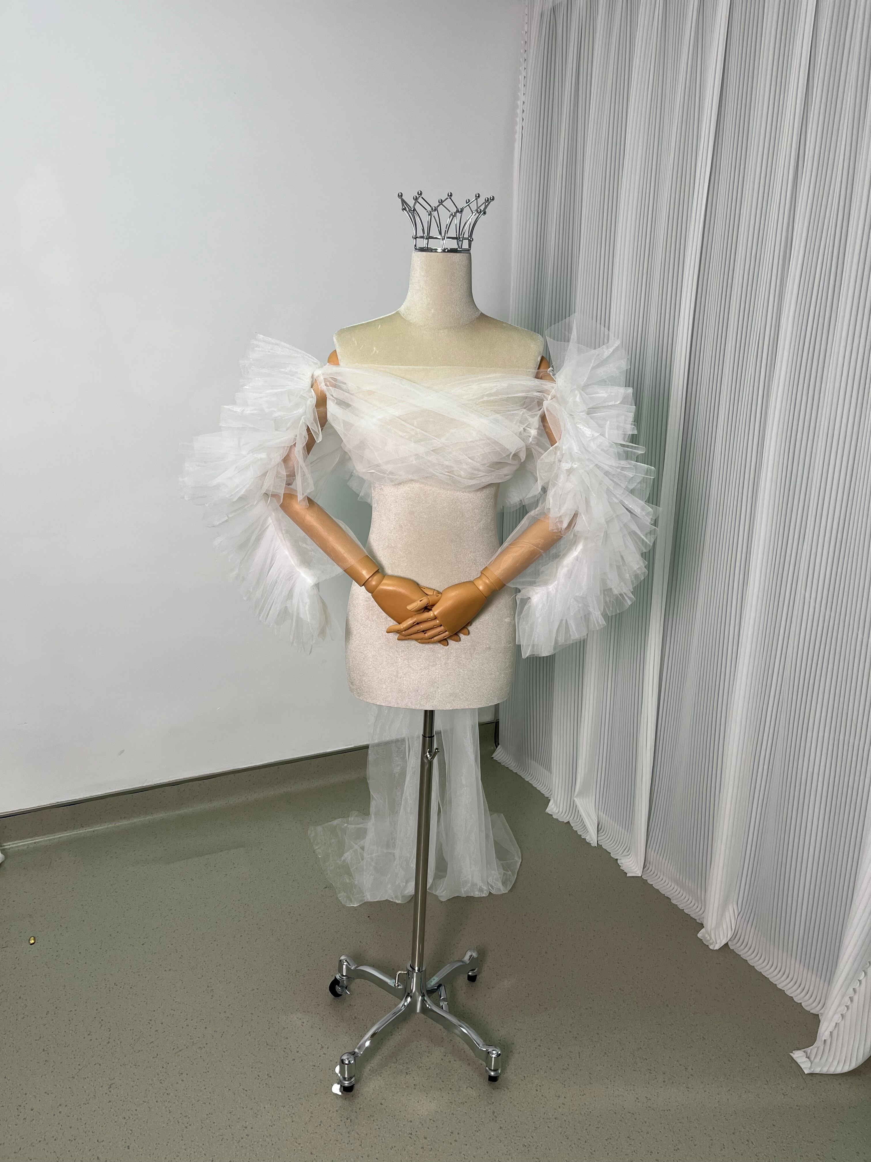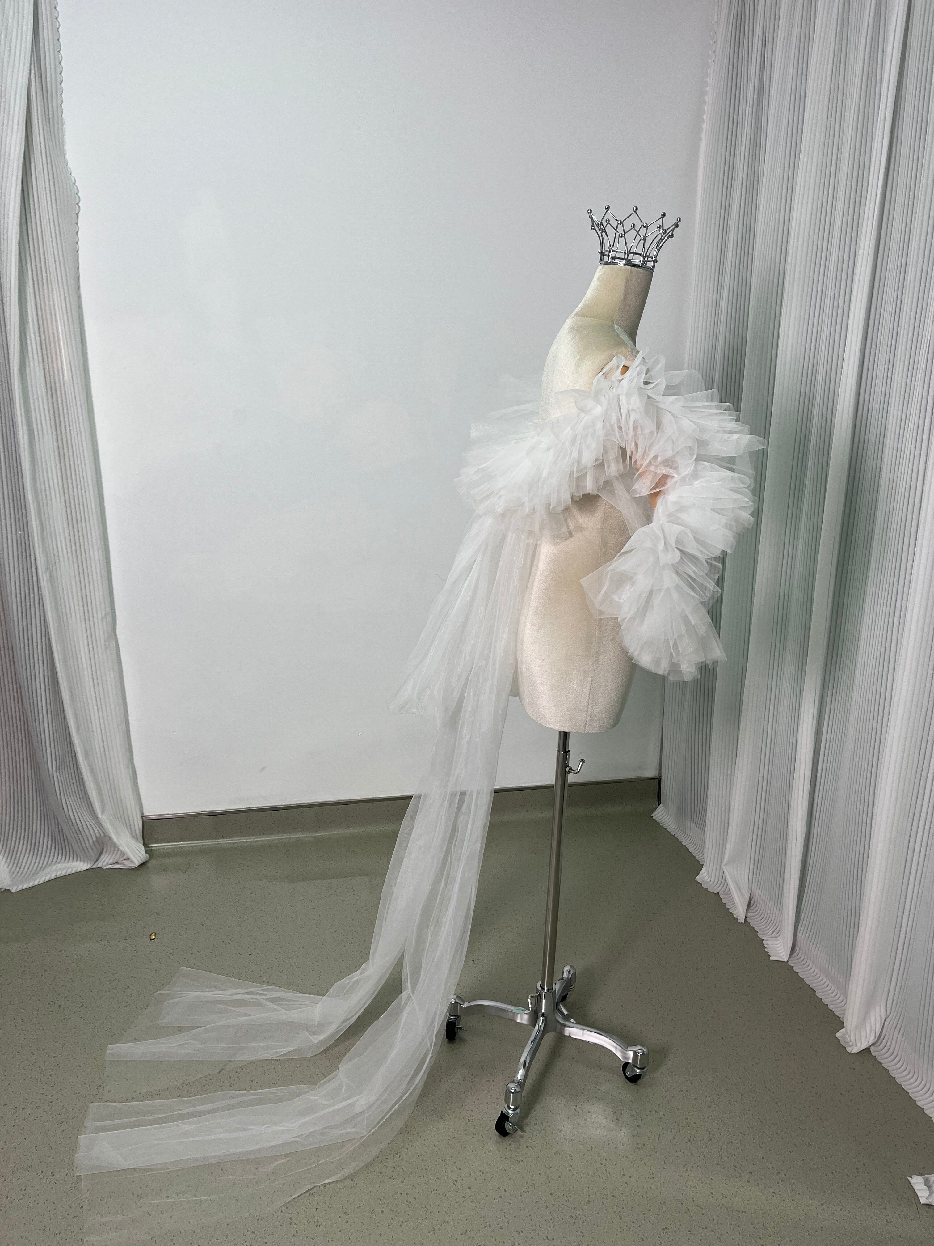 人気上昇! ドレスアレンジ用トップス ボレロのみ ソフトチュールポンチョ オフホワイト ロングトレーン 花嫁