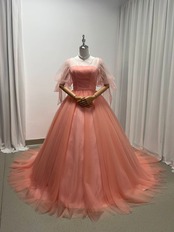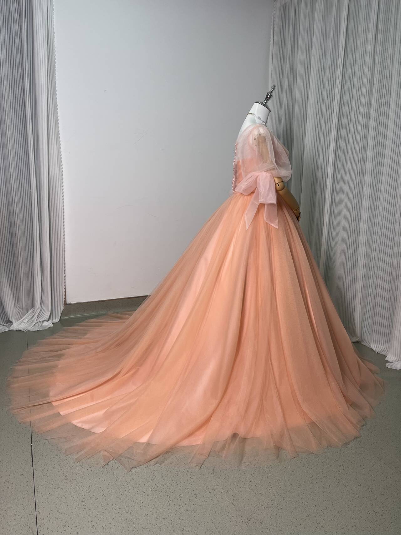 カラードレス 薄ピンク トップス+スカート くるみボタン 花嫁/ウェディングドレス 披露宴/結婚式 プリンセス