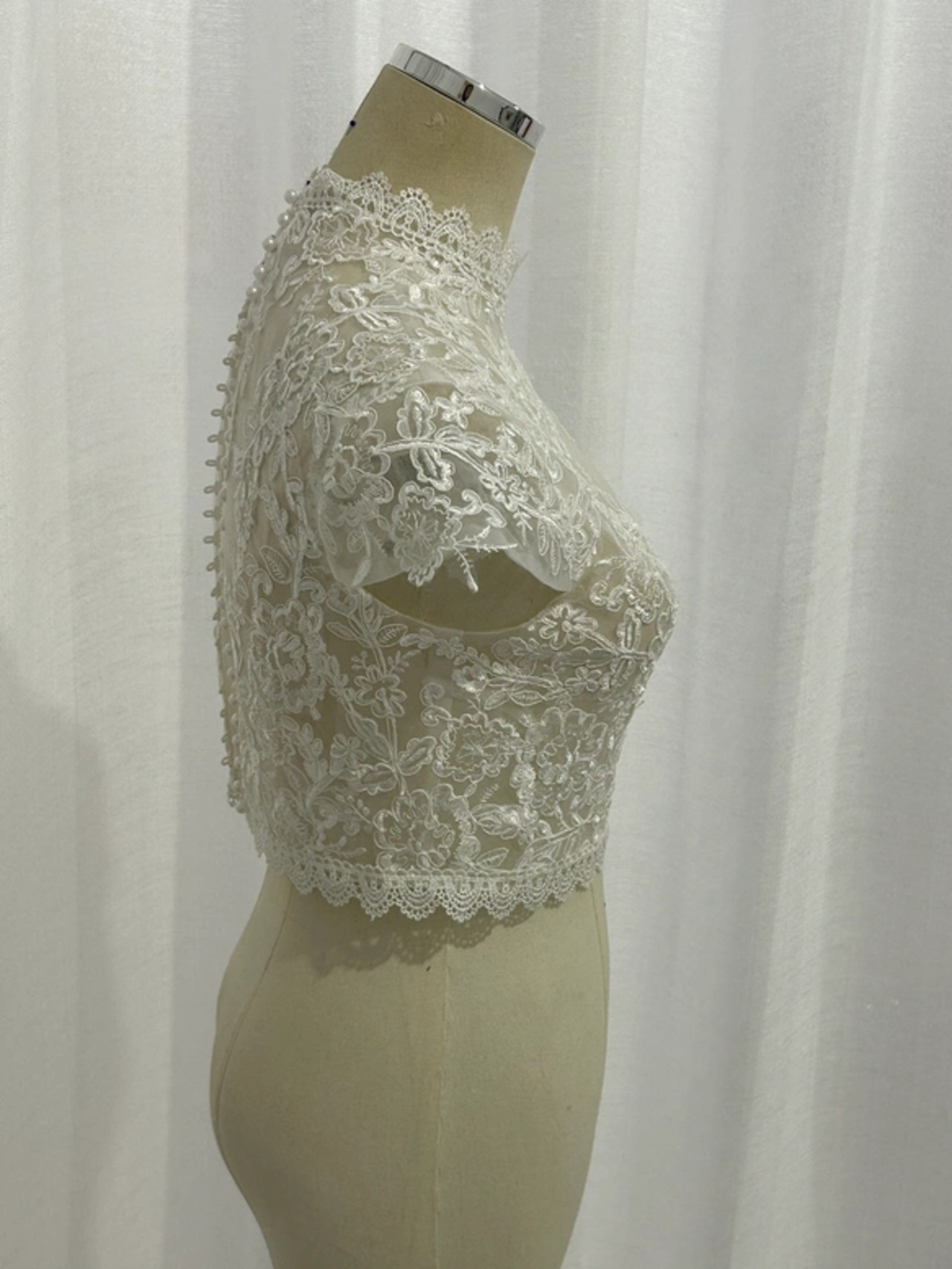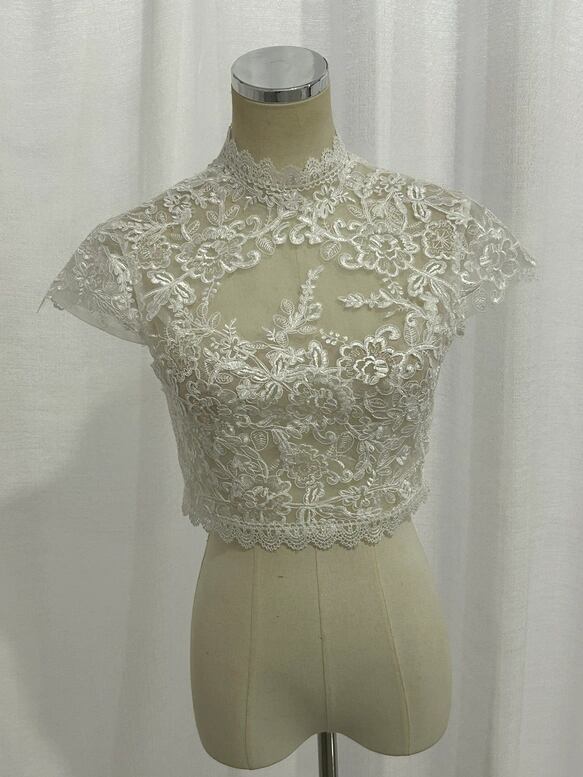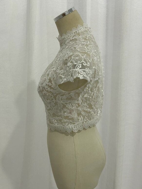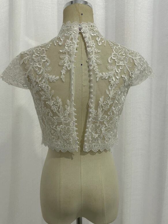ボレロ 短袖 くるみボタン 可憐な花刺繍のトップス エレガント 結婚式