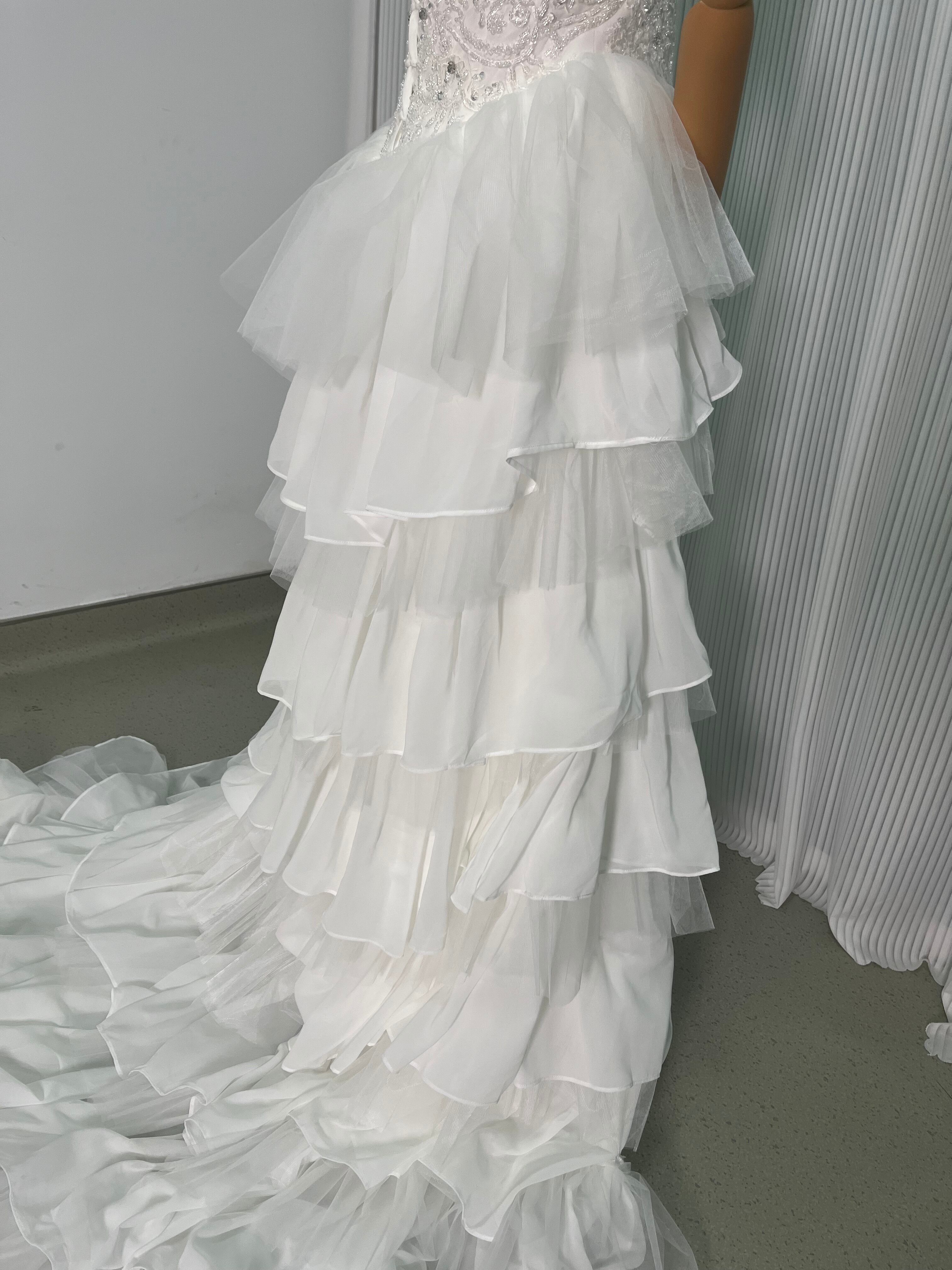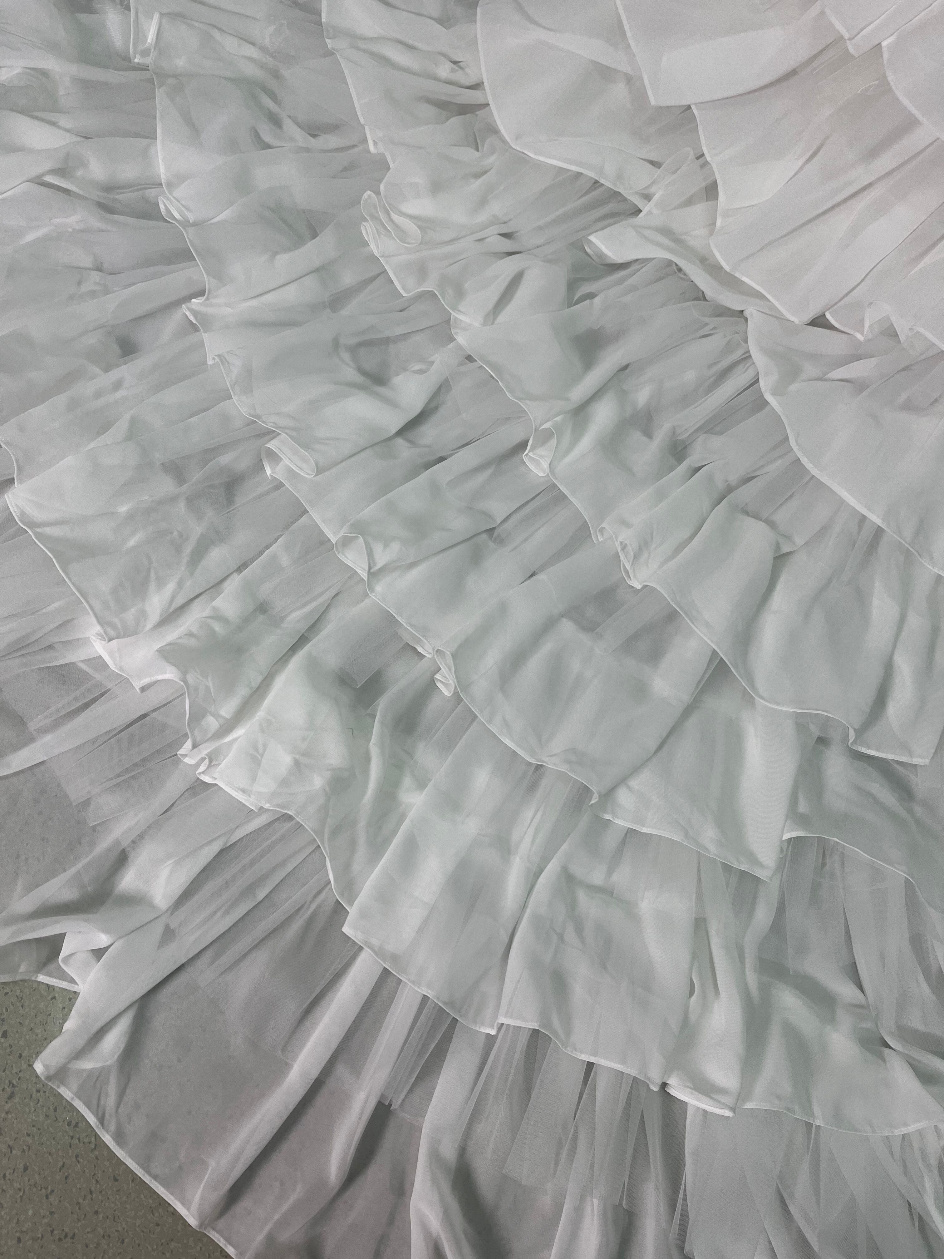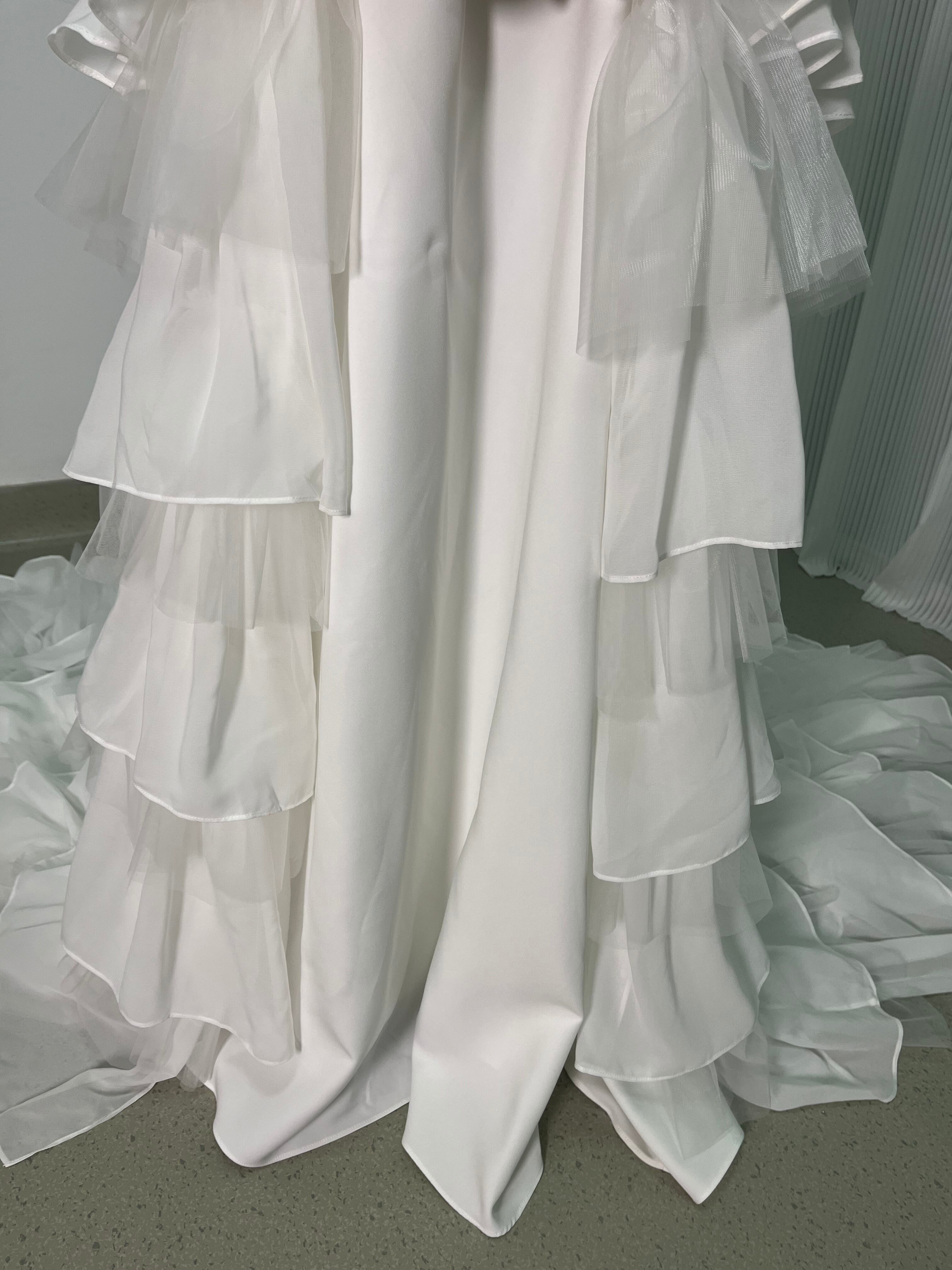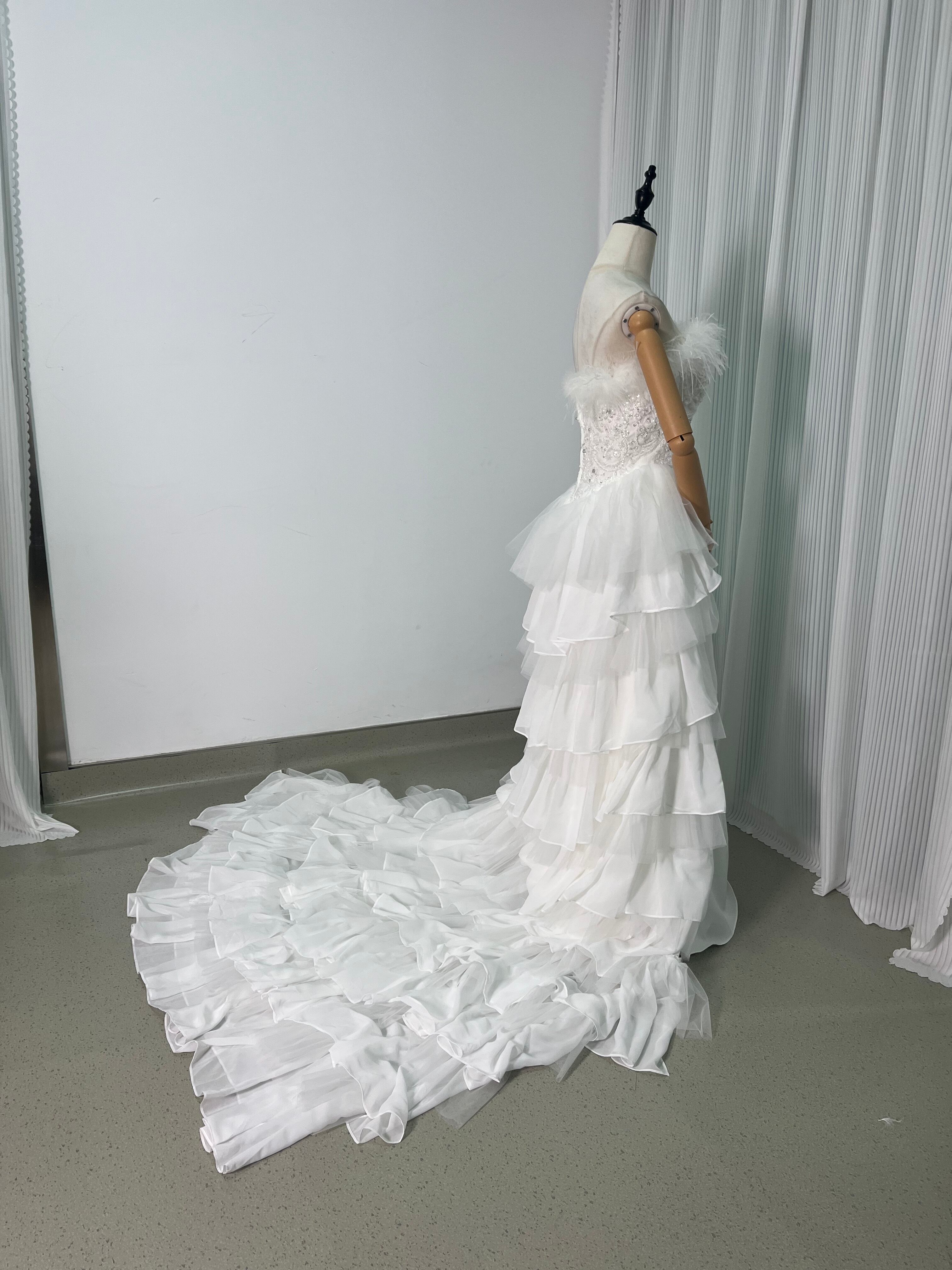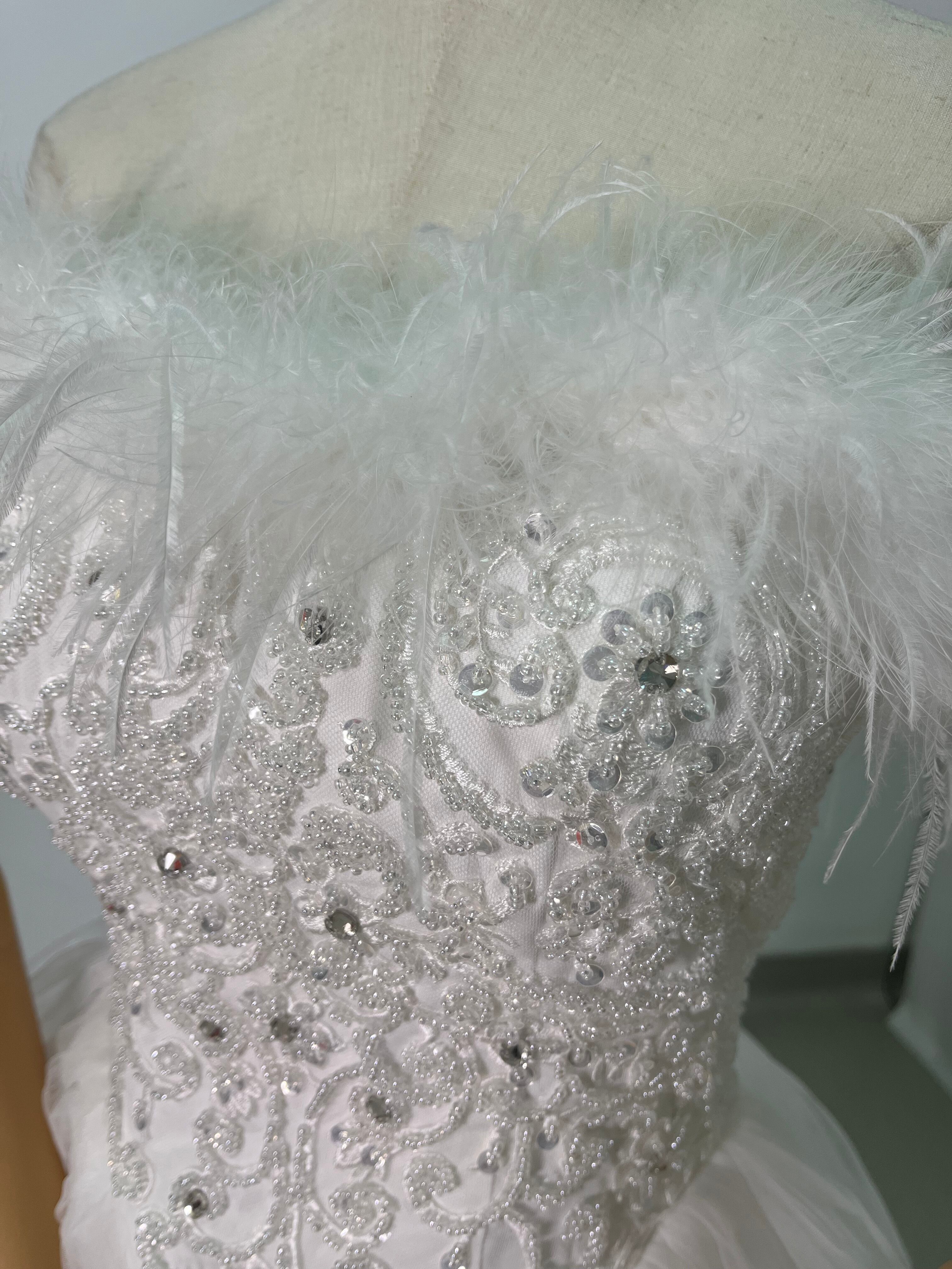 ウェディングドレス フェザードレス ビジュードレス ふんわりシフォン ソフトチュール 編み上げ デザイン感