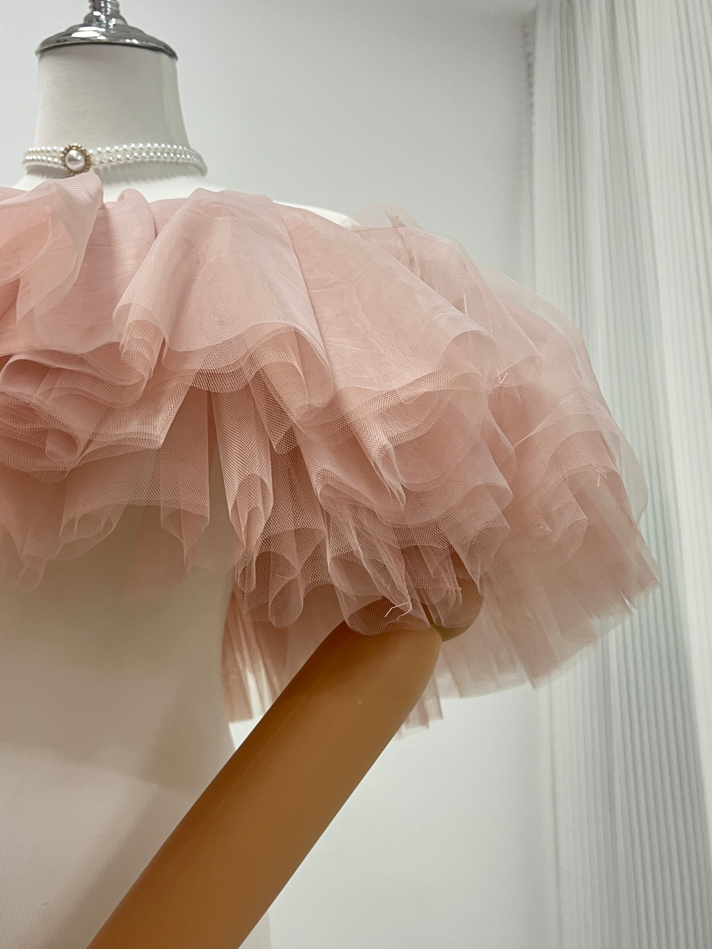 オフショルダー 取り外しオフショルダー ピンク ストレッチ 花嫁/ウェディングドレス