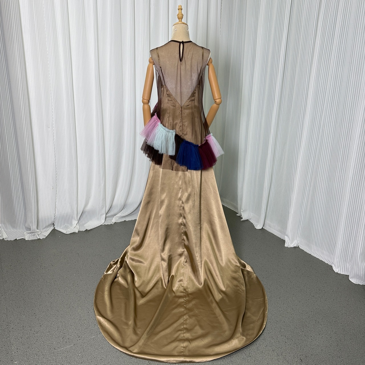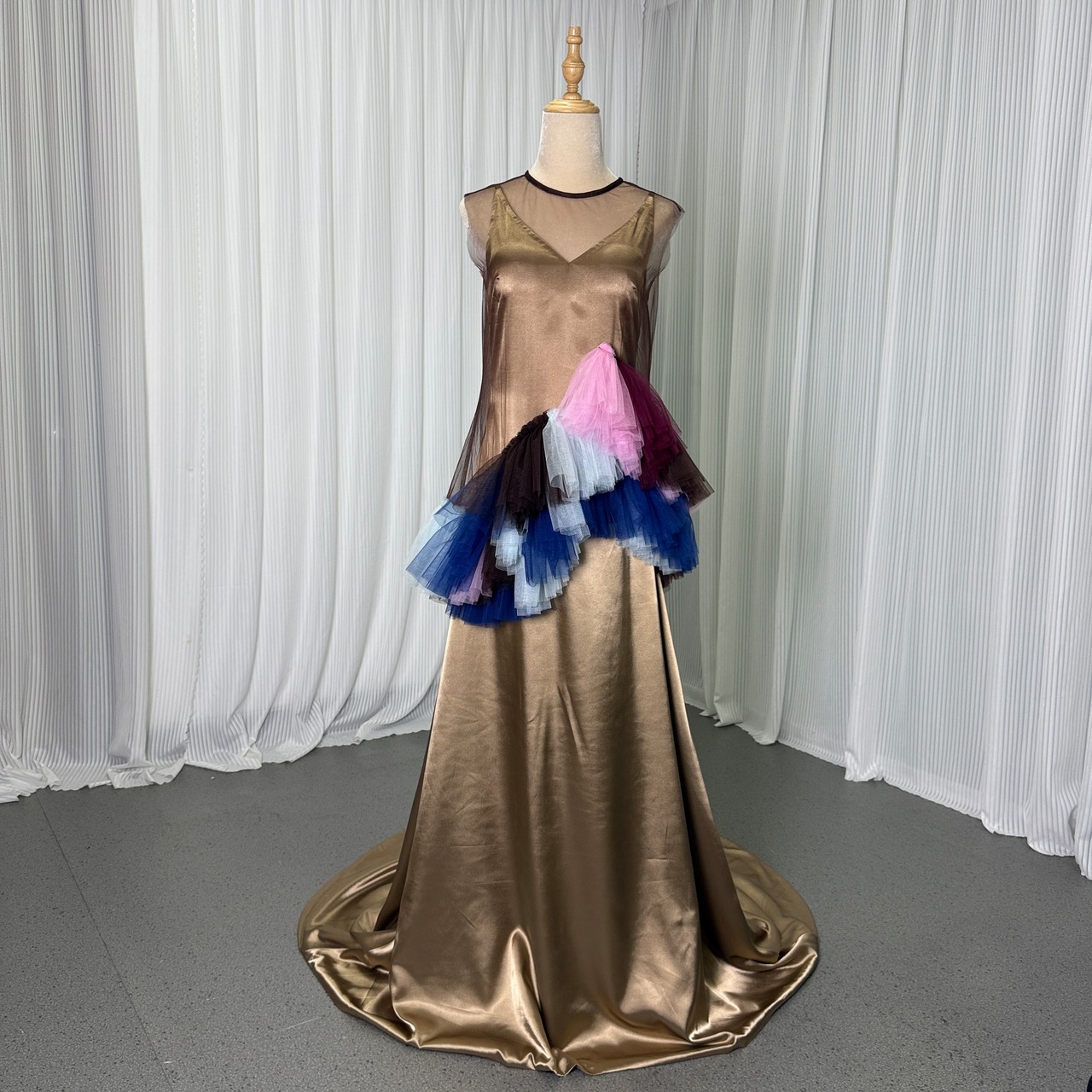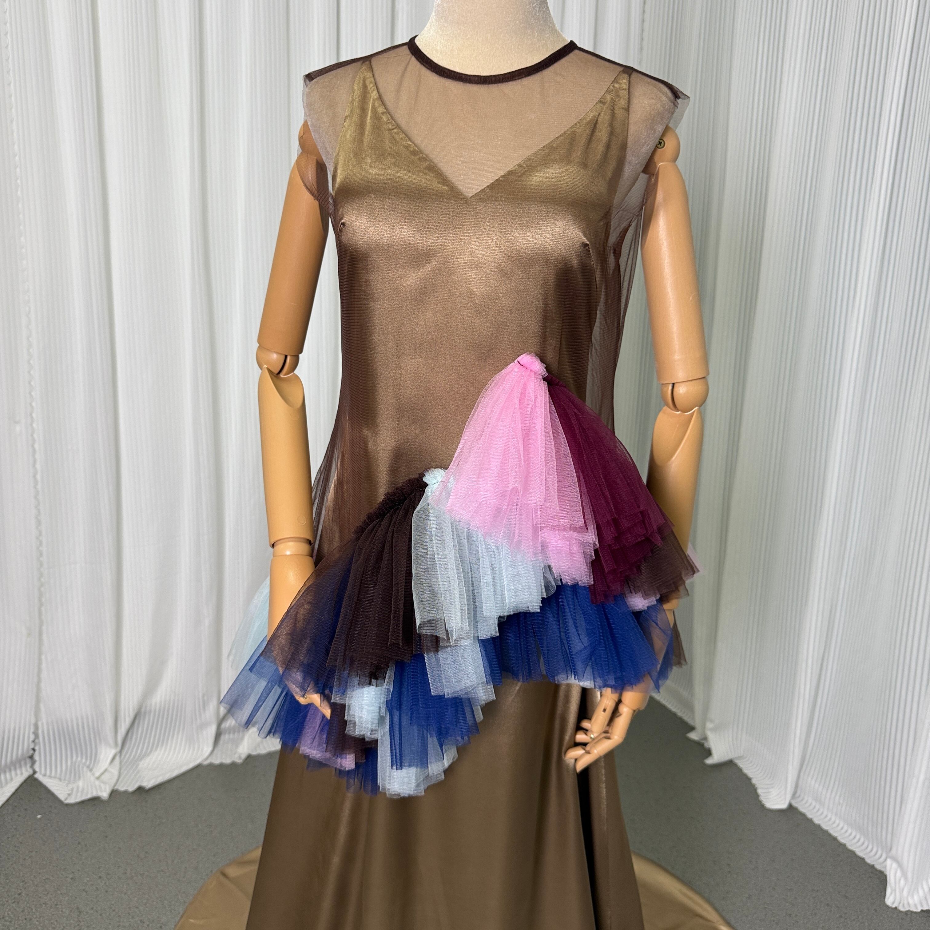 パーティードレス 前撮り 二次会 ツーピース アシメドレス 虹色 カーキ色 绮丽な 優しい