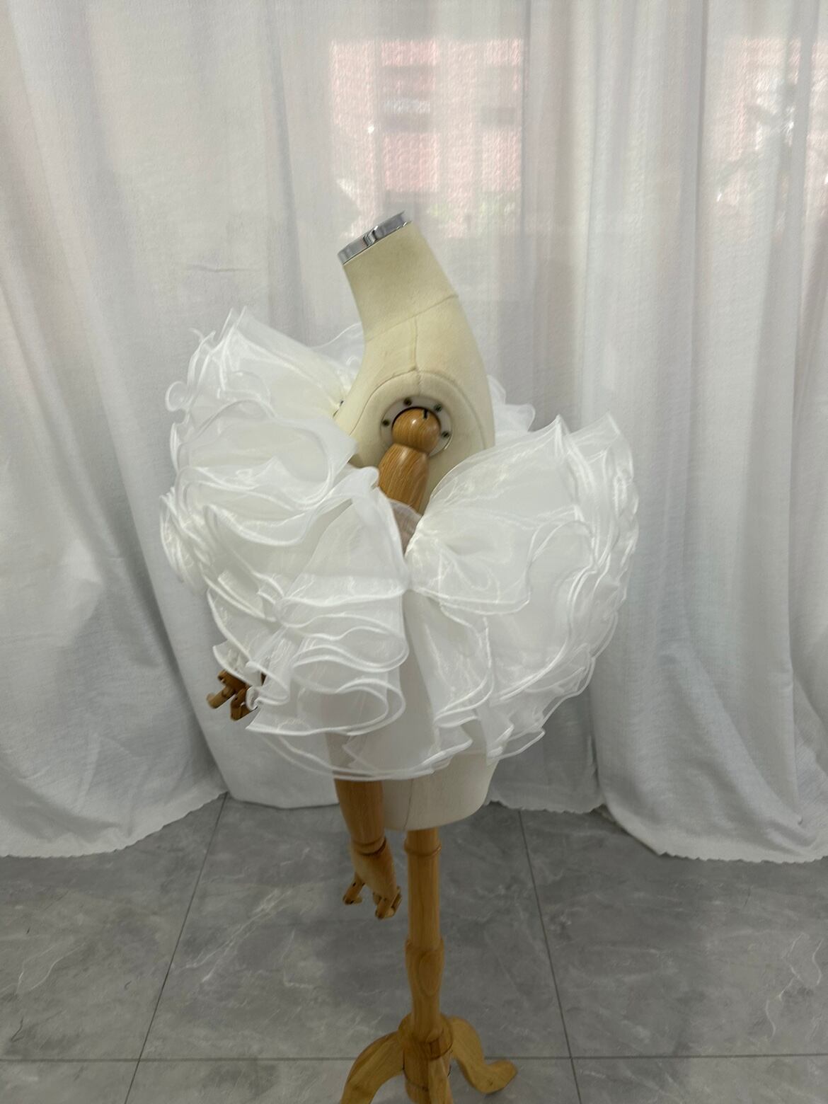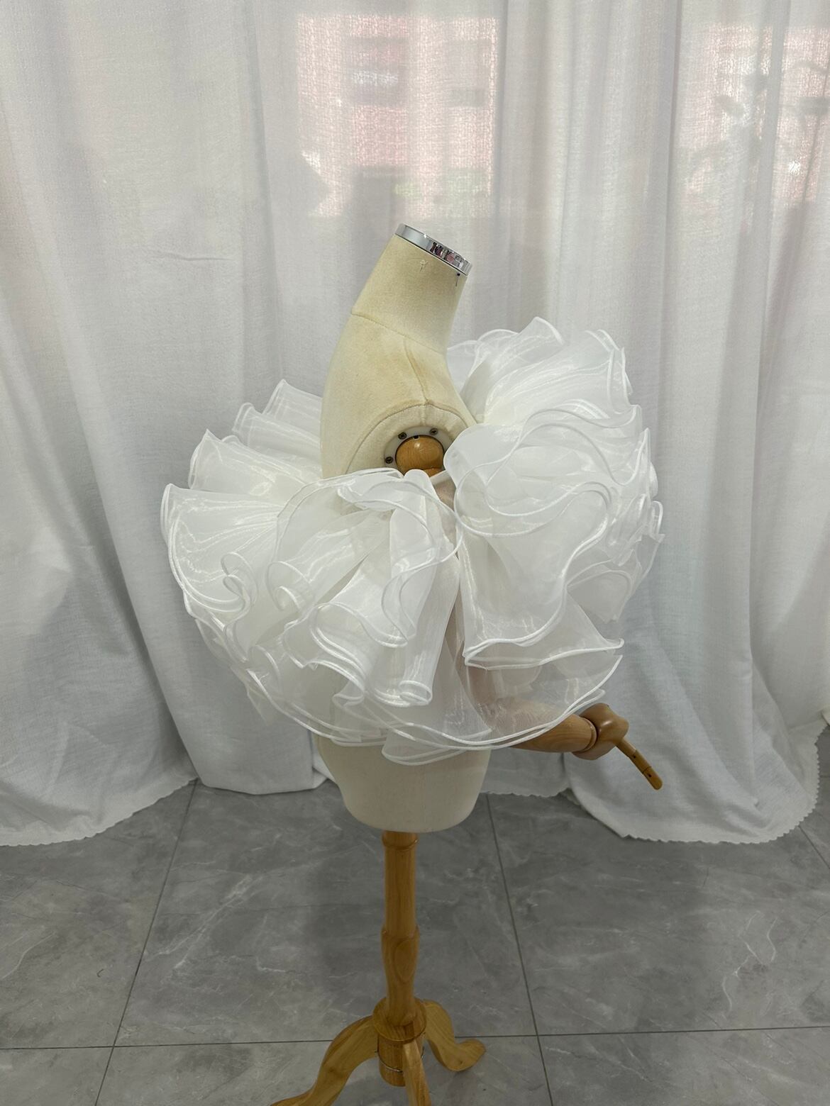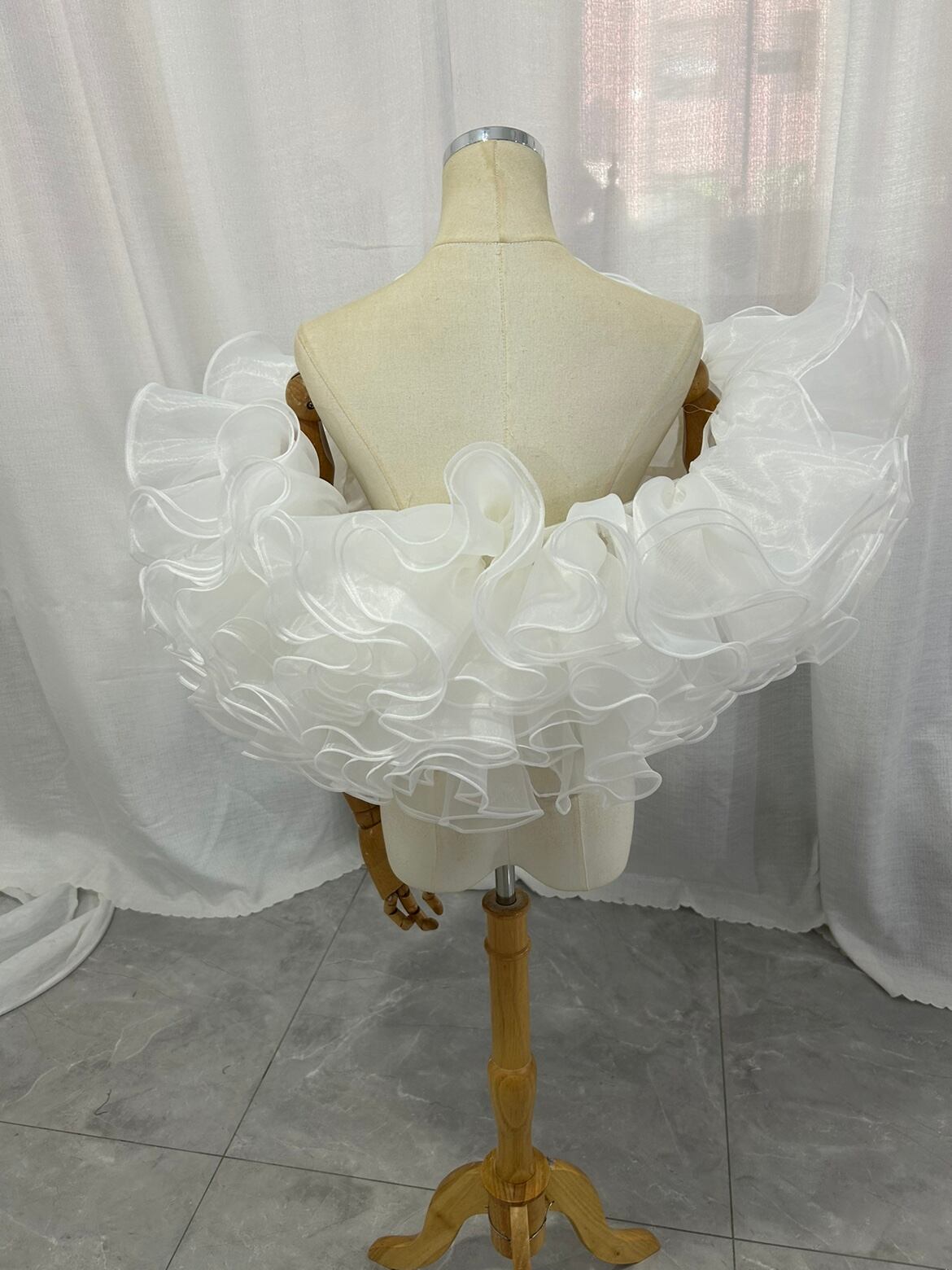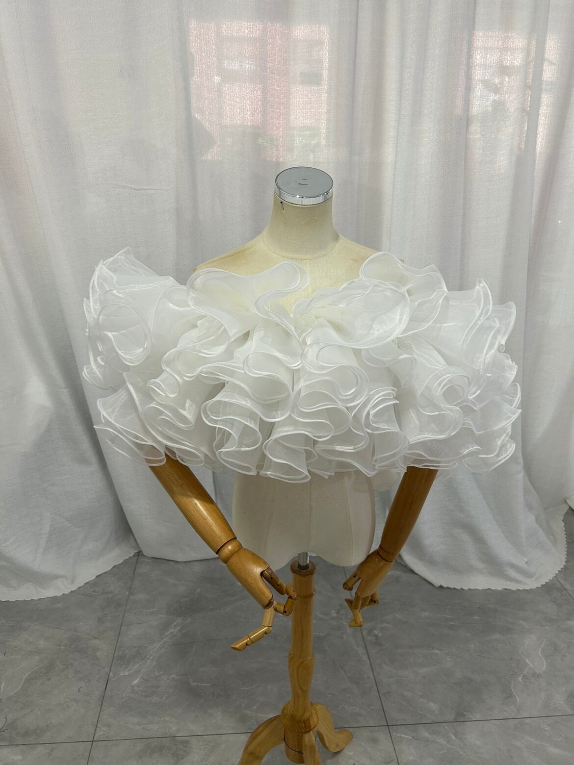 取り外しオフショルダー オーガンジー ラッフルフリル 可愛い オフホワイト 披露宴/結婚式