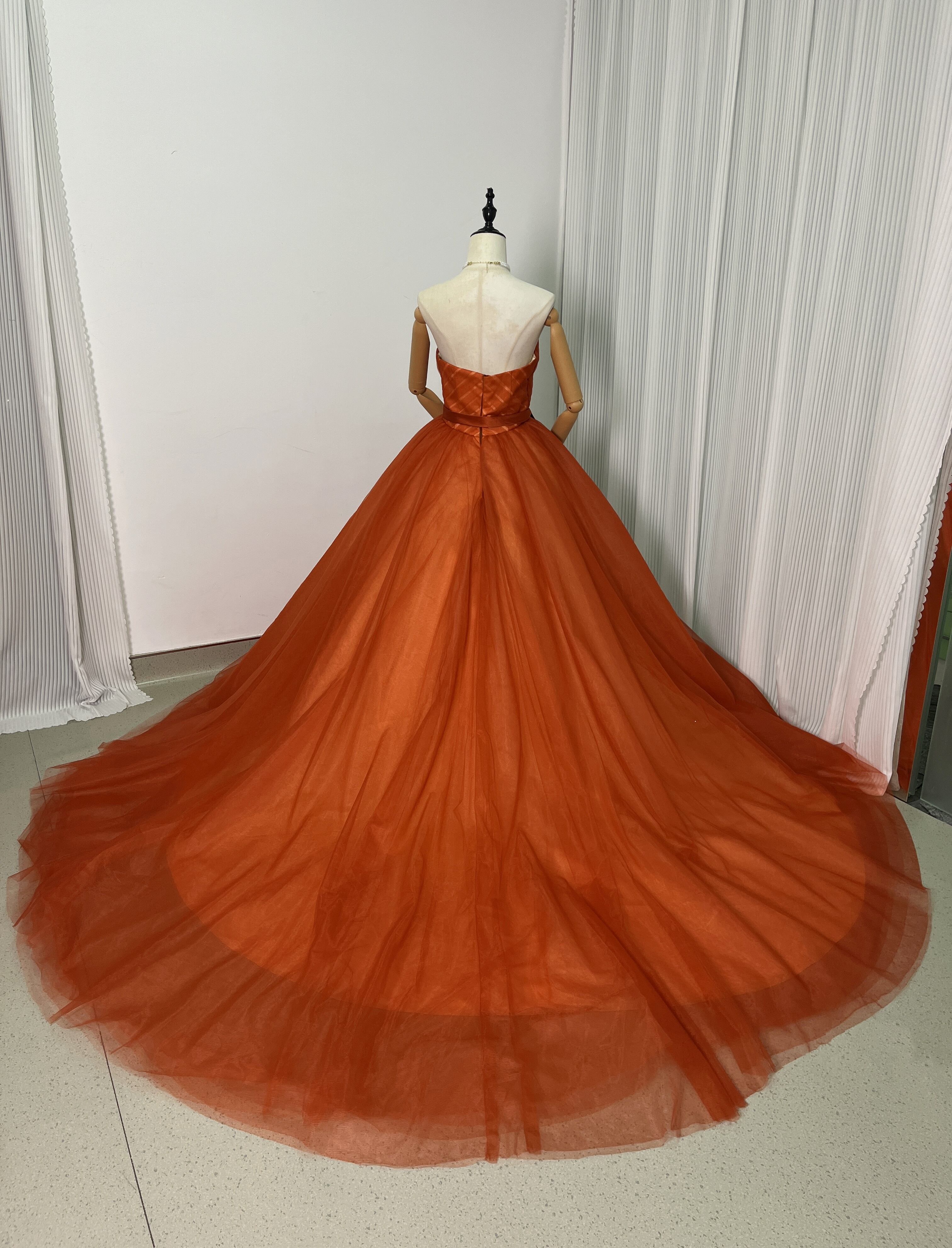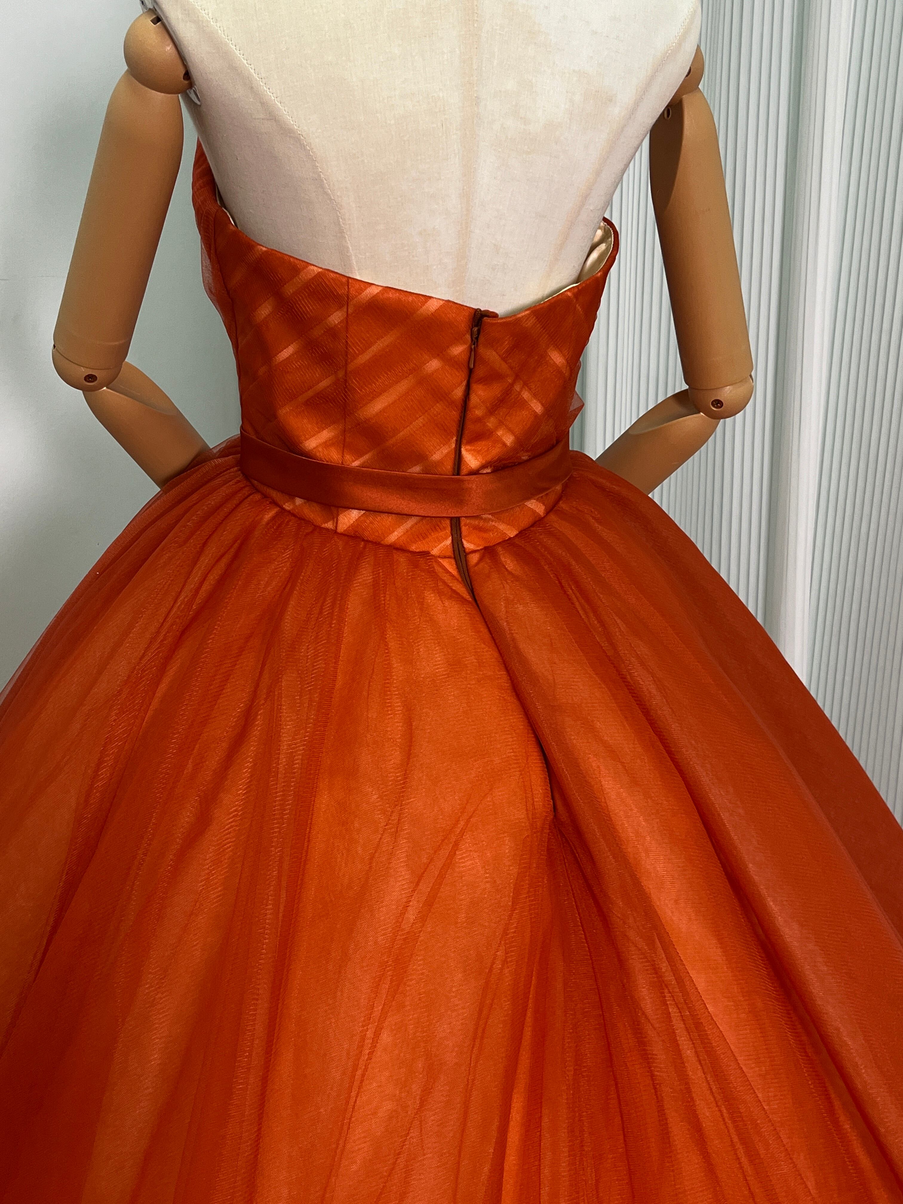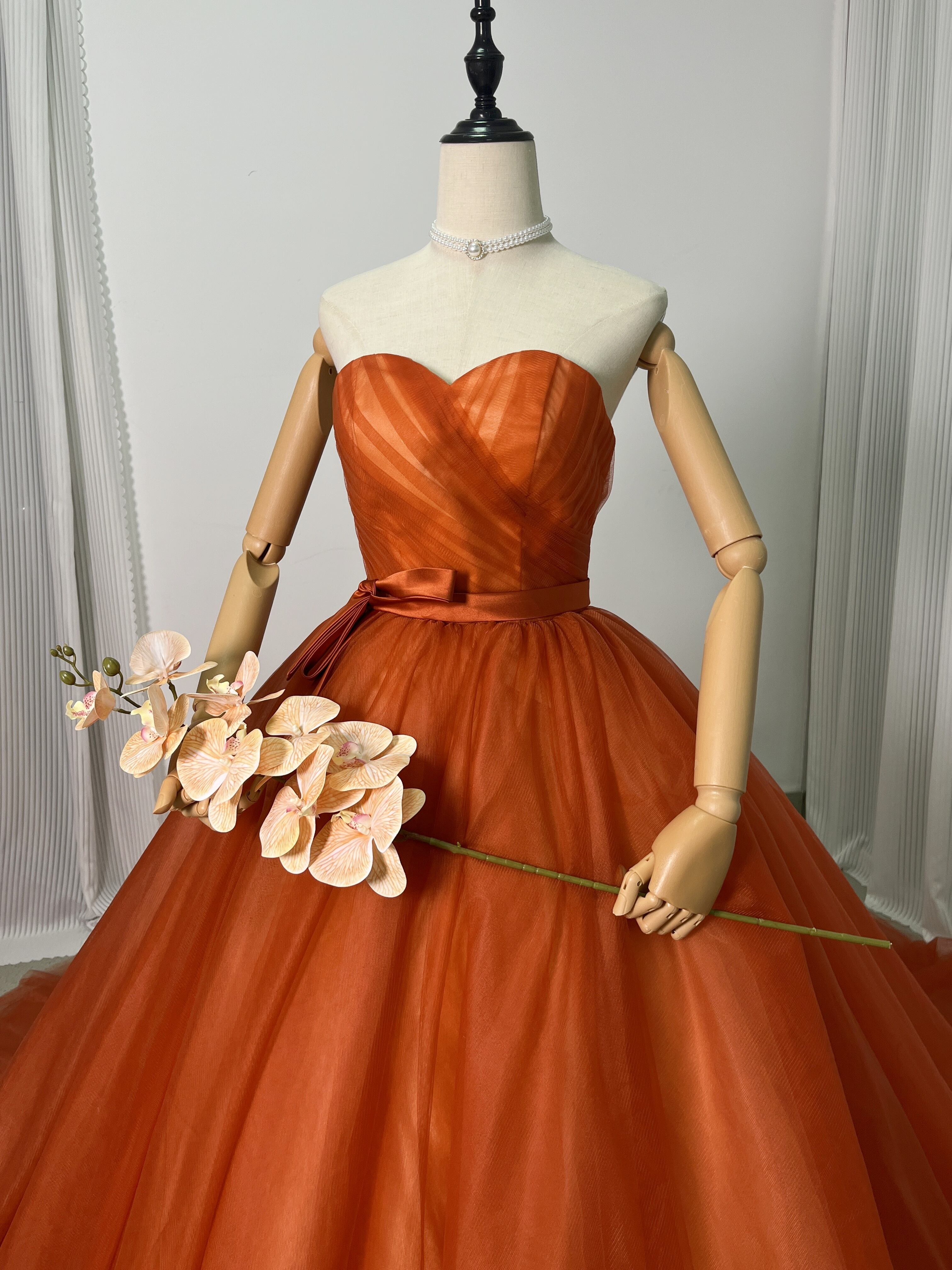 カラードレス テラコッタ色 ベアトップ Aライン ベアトップ 目立つ 派手な ふわふわドレス