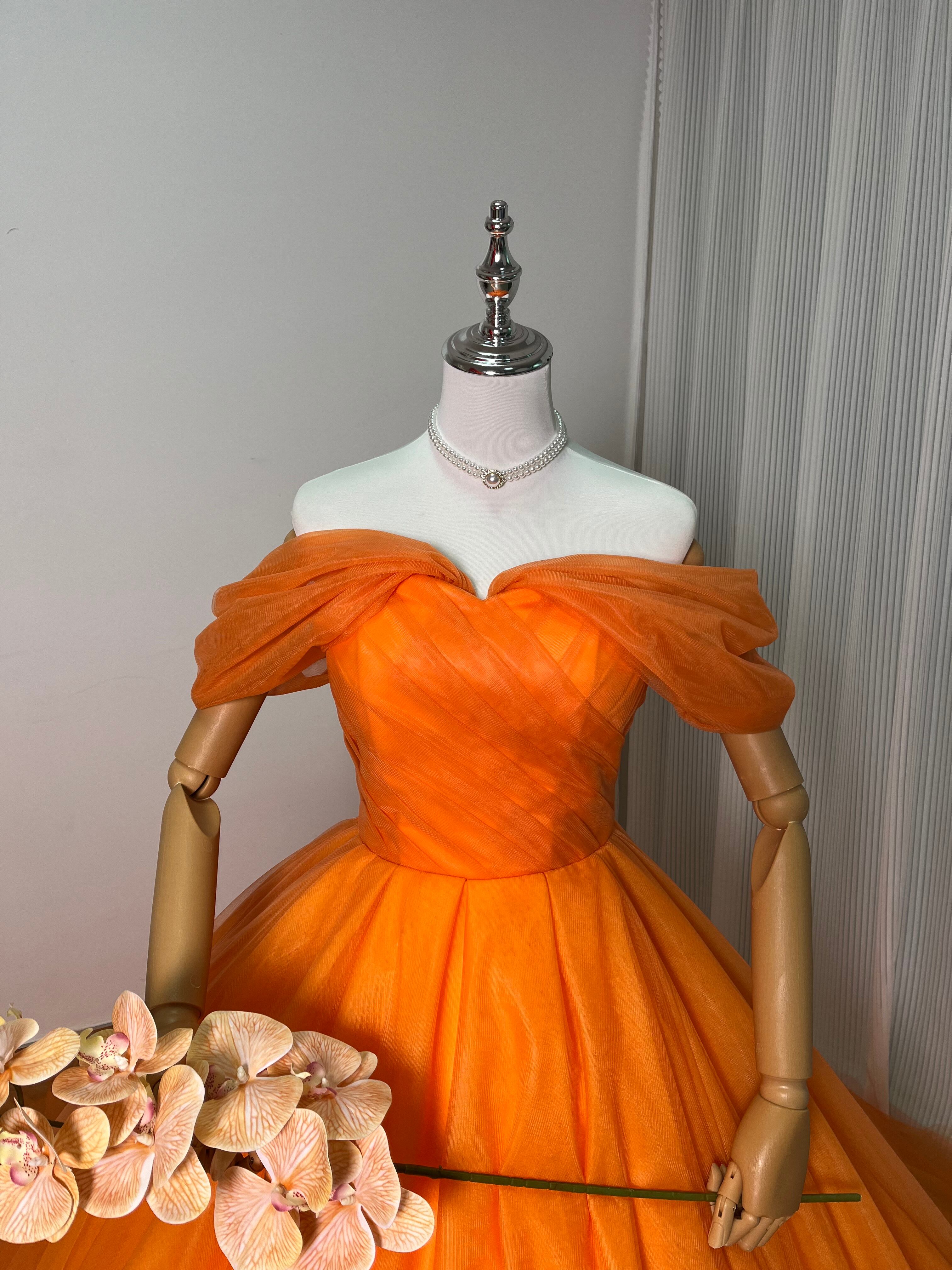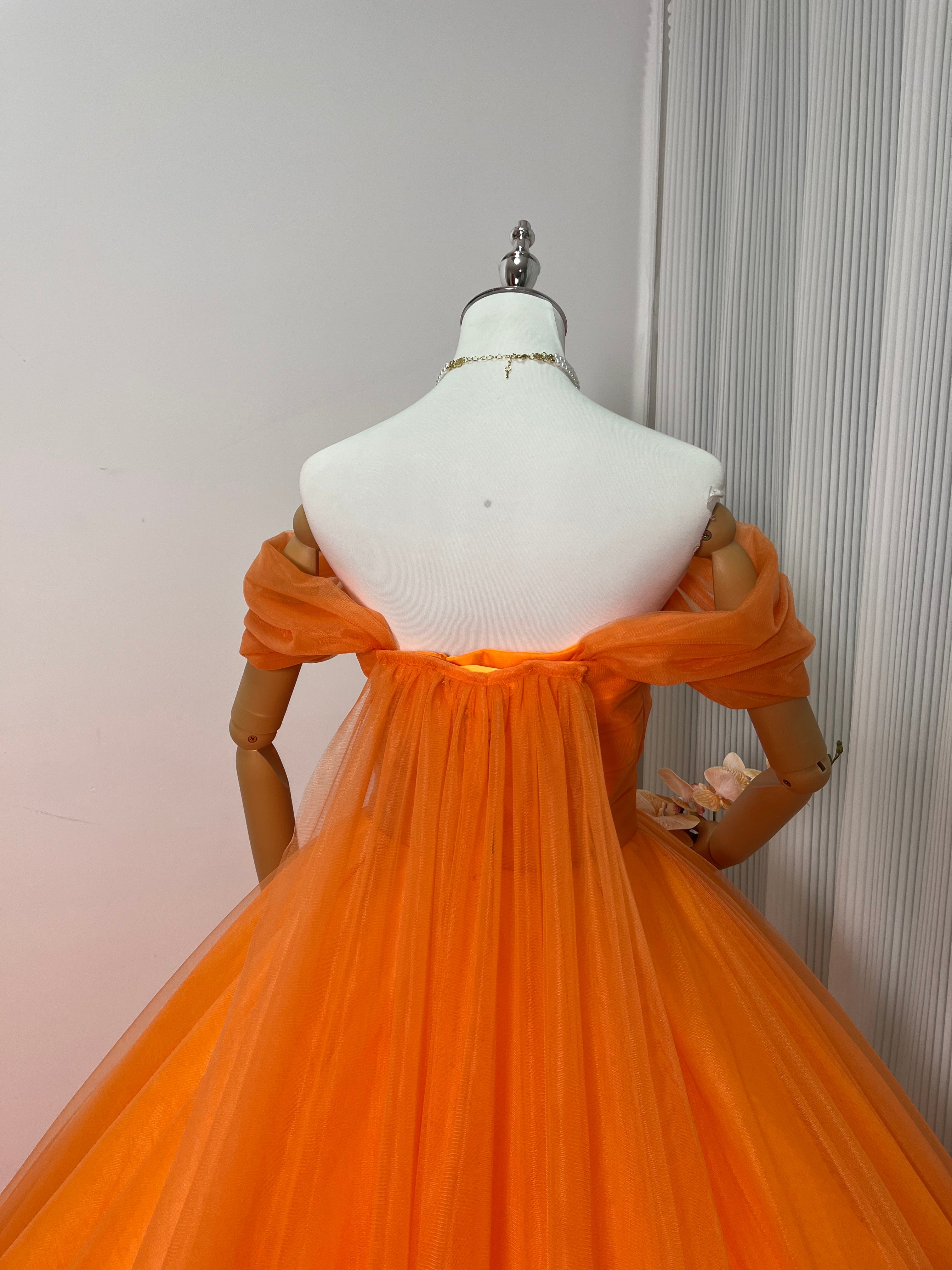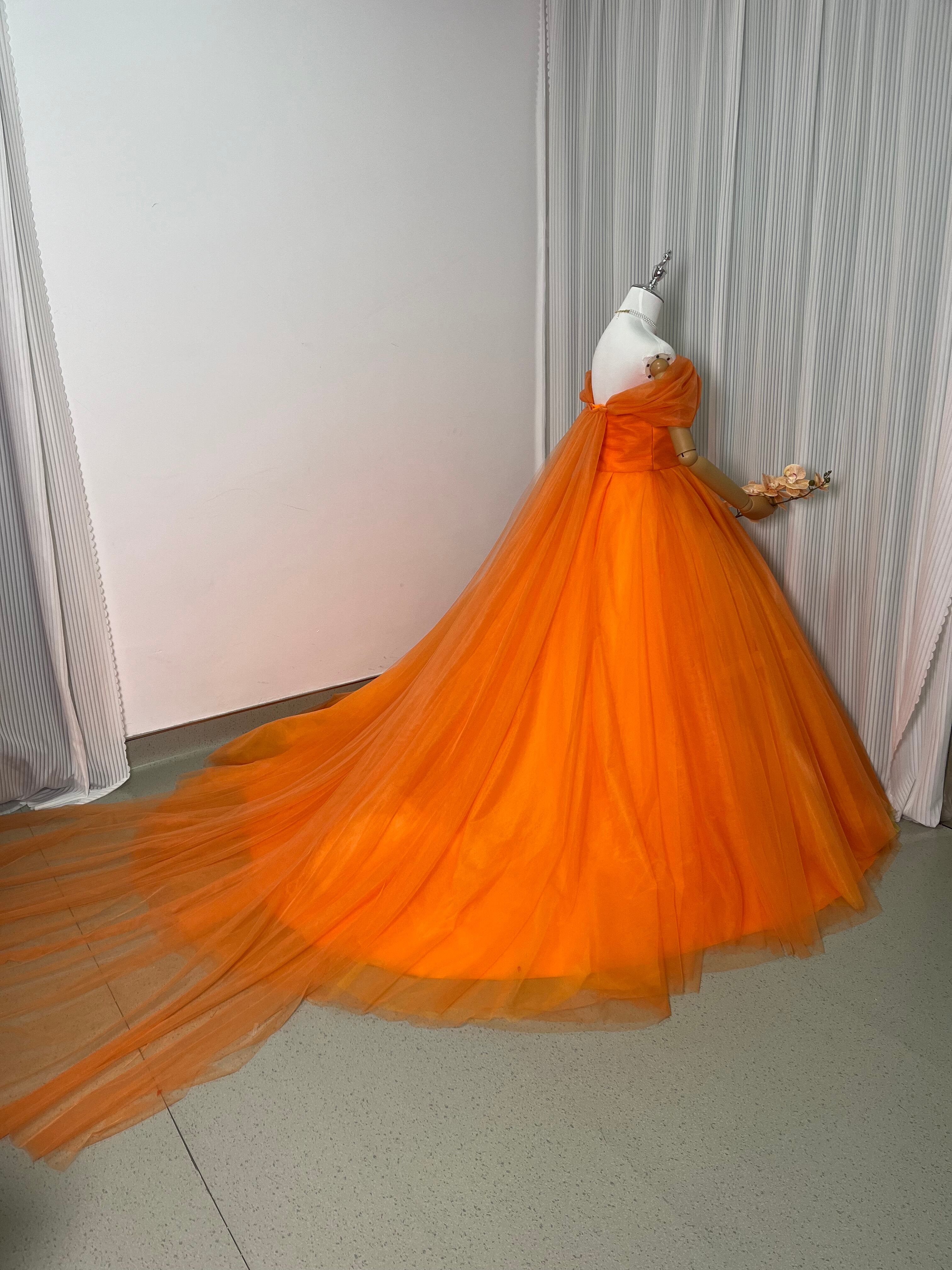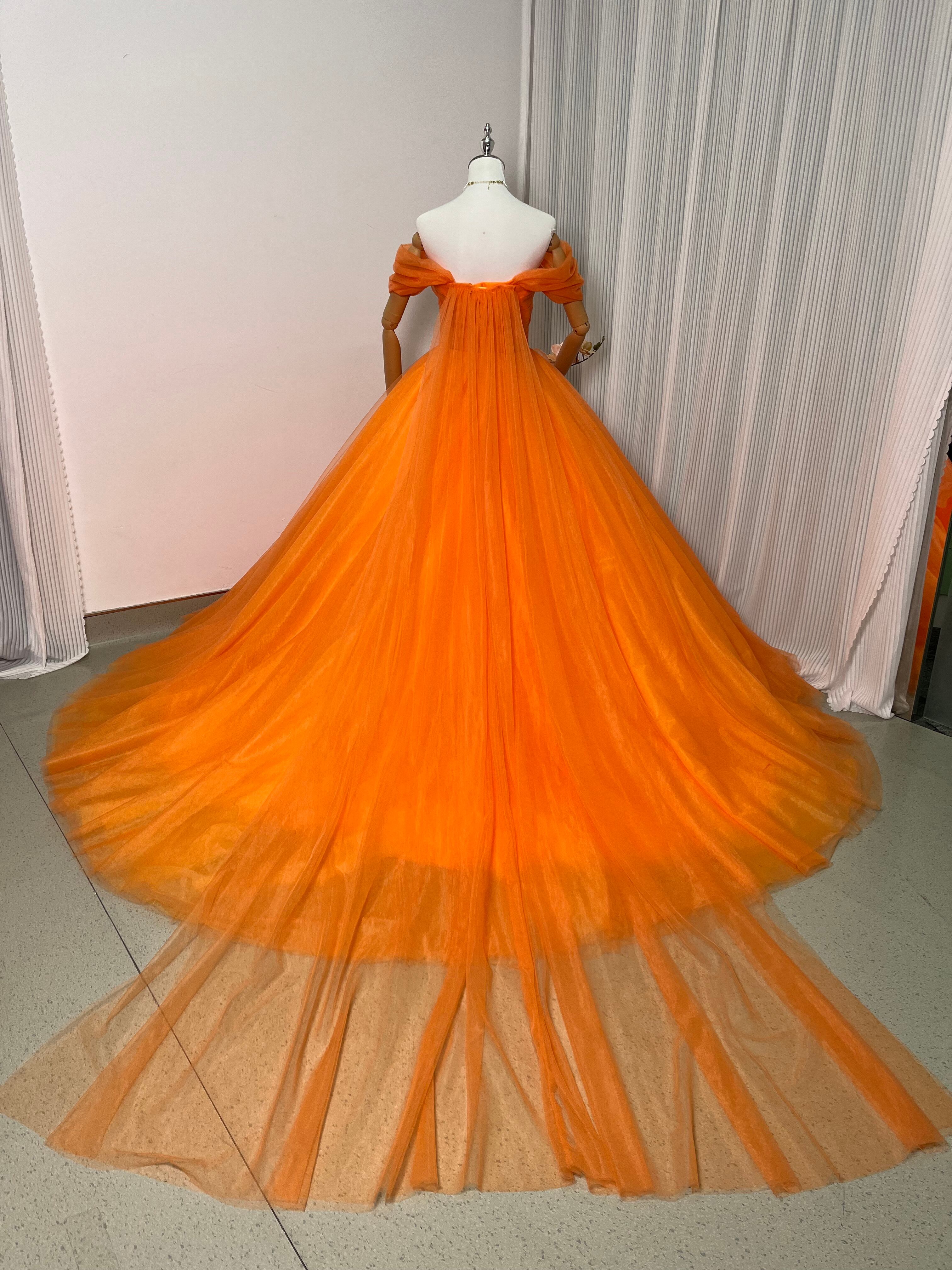 カラードレス オレンジ オフショルダー ロングトレーン 結婚式 抜群のおしゃれ見え 目立つ