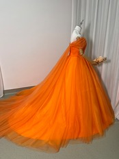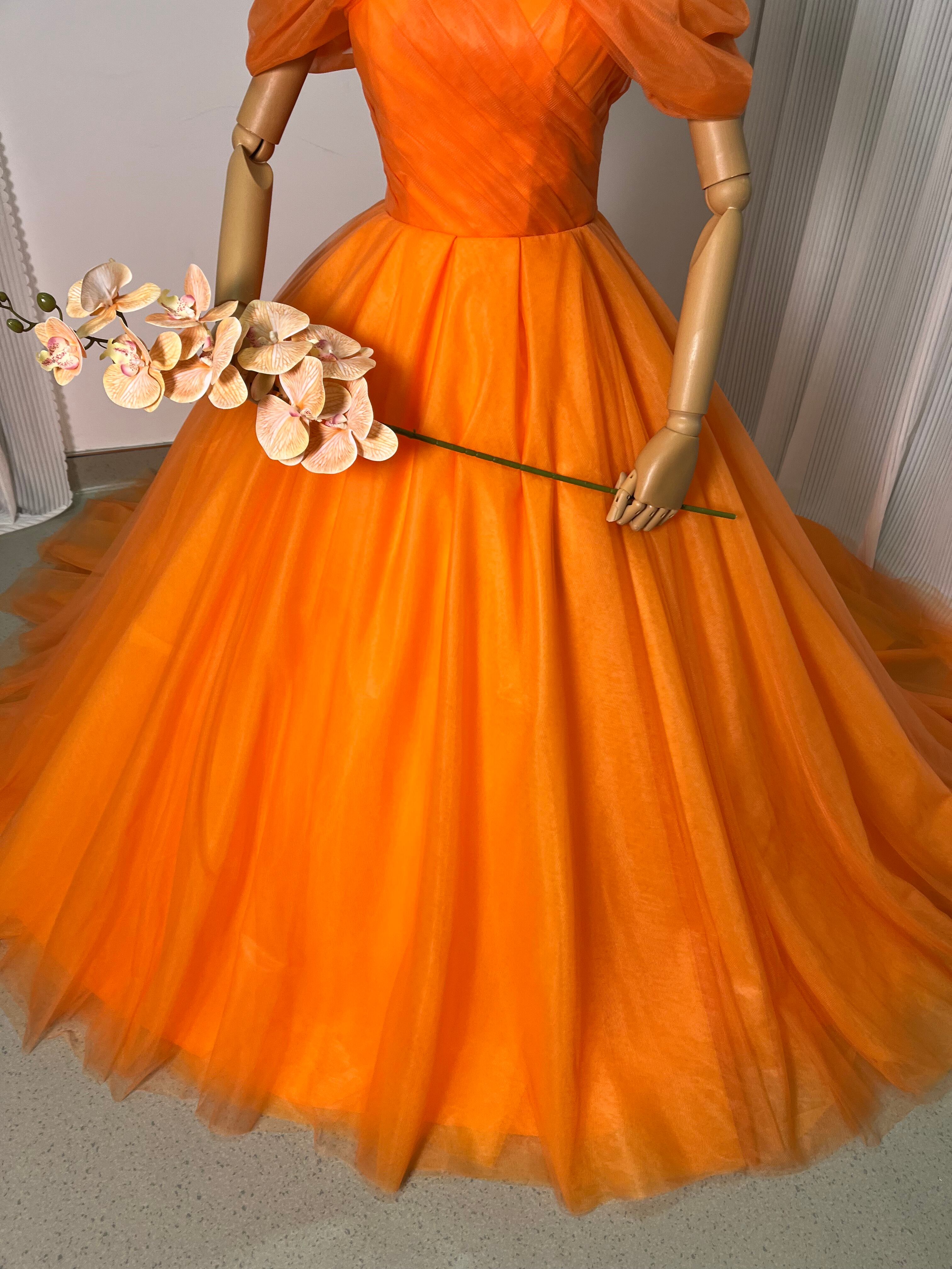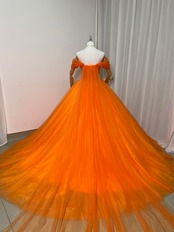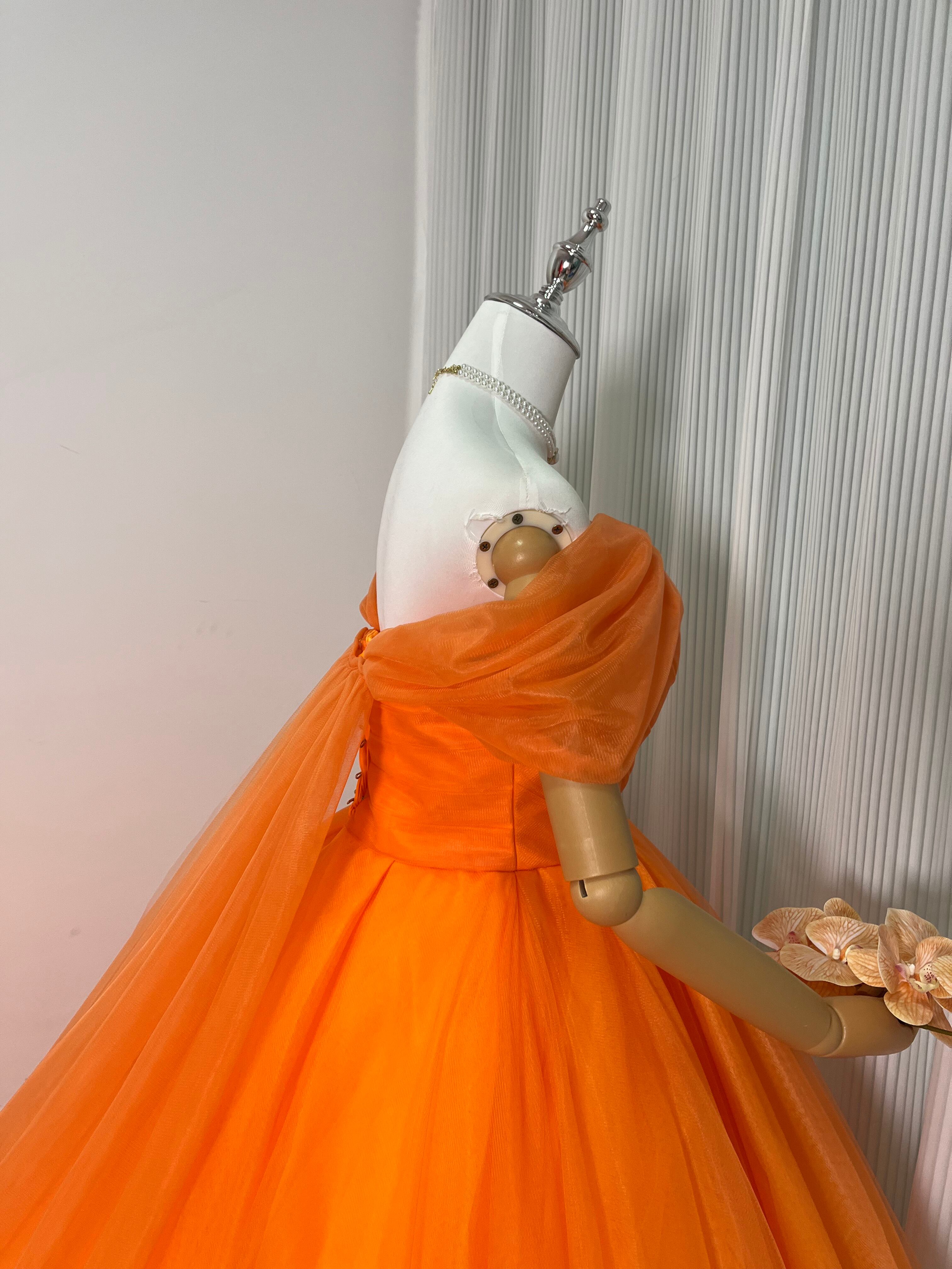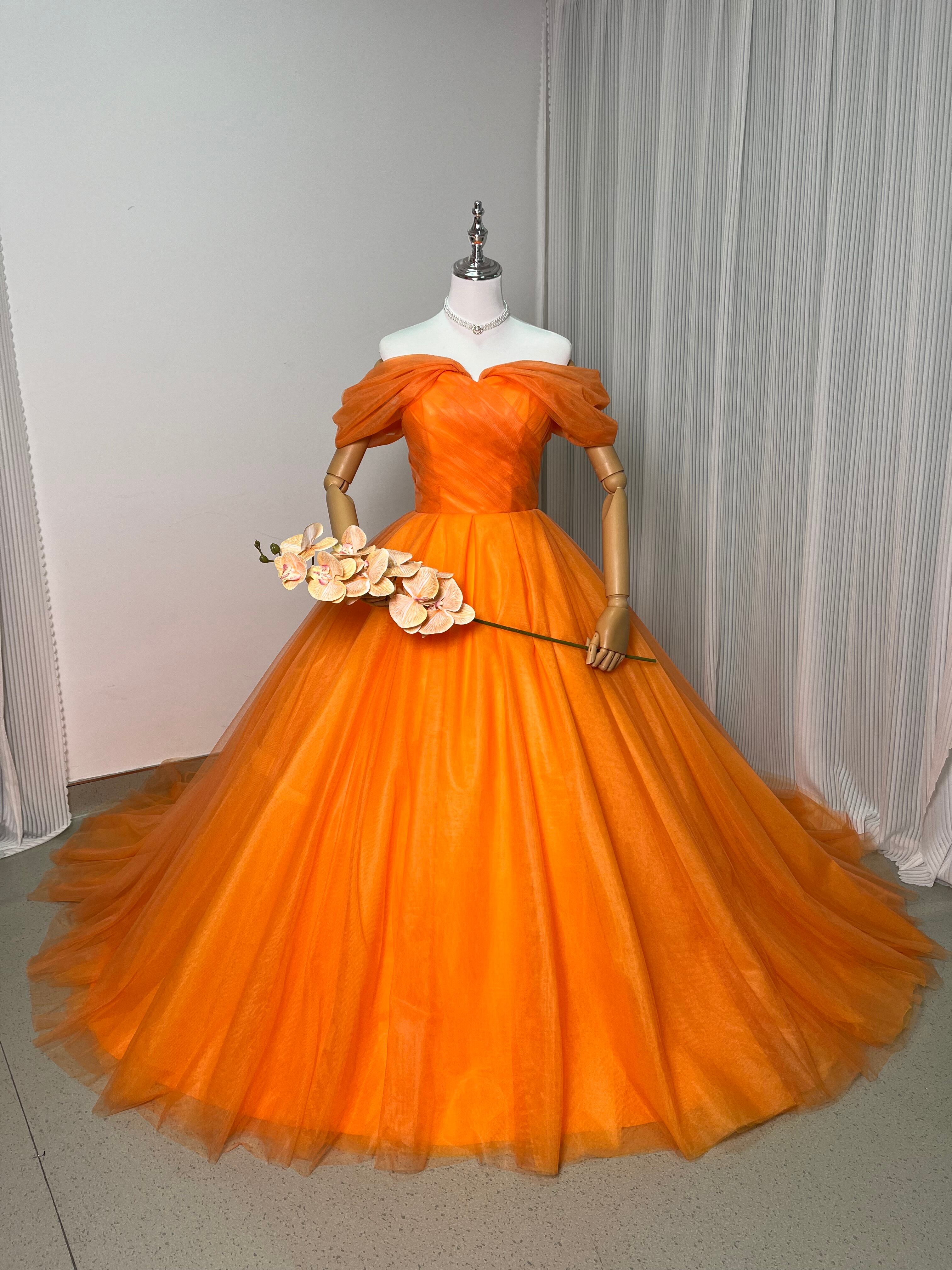 カラードレス オレンジ オフショルダー ロングトレーン 結婚式 抜群のおしゃれ見え 目立つ
