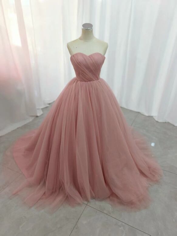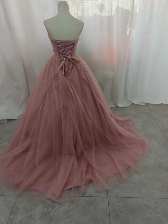 カラードレス ピンク ベアトップ ソフトチュール キラキラチュール ふわふわドレス 二次会