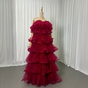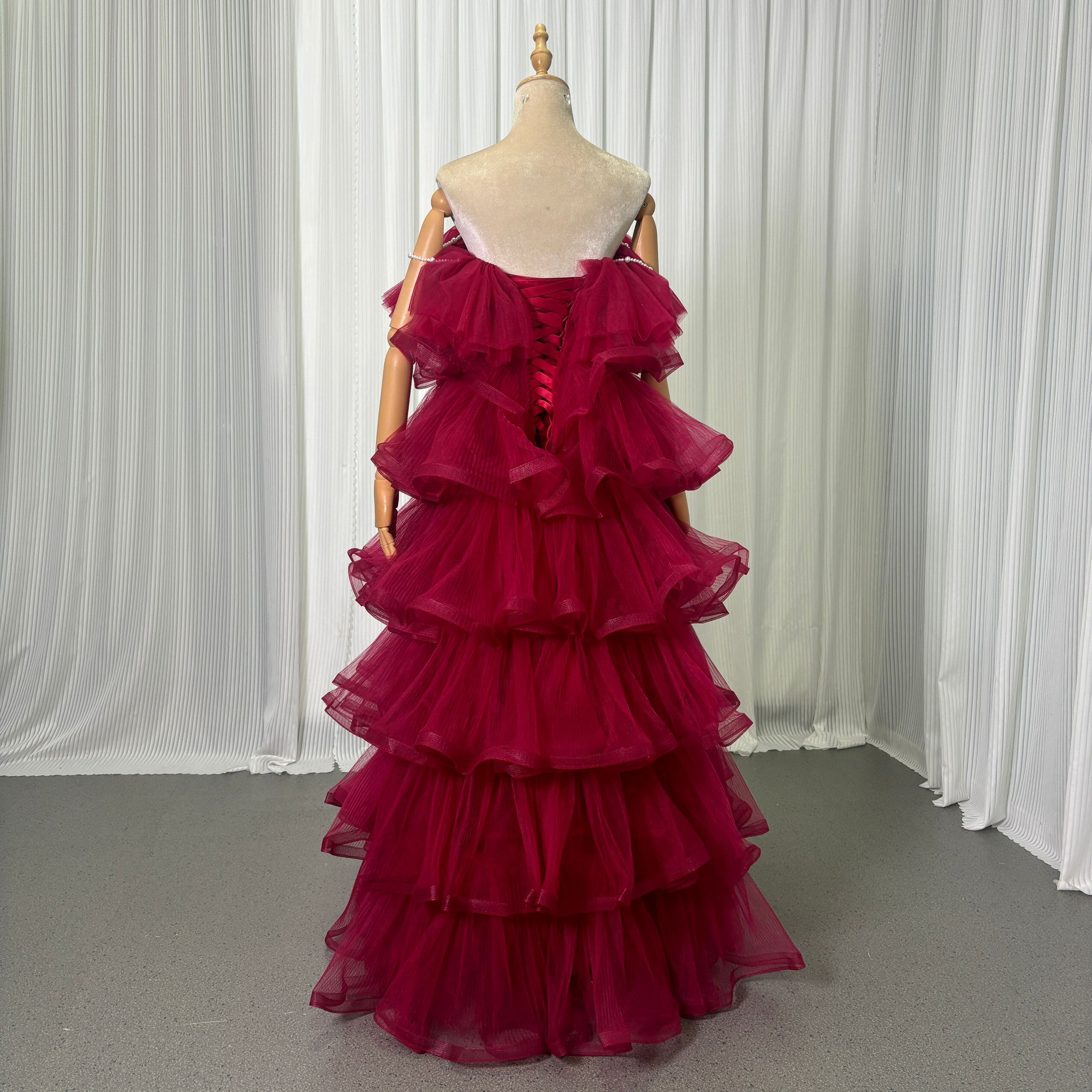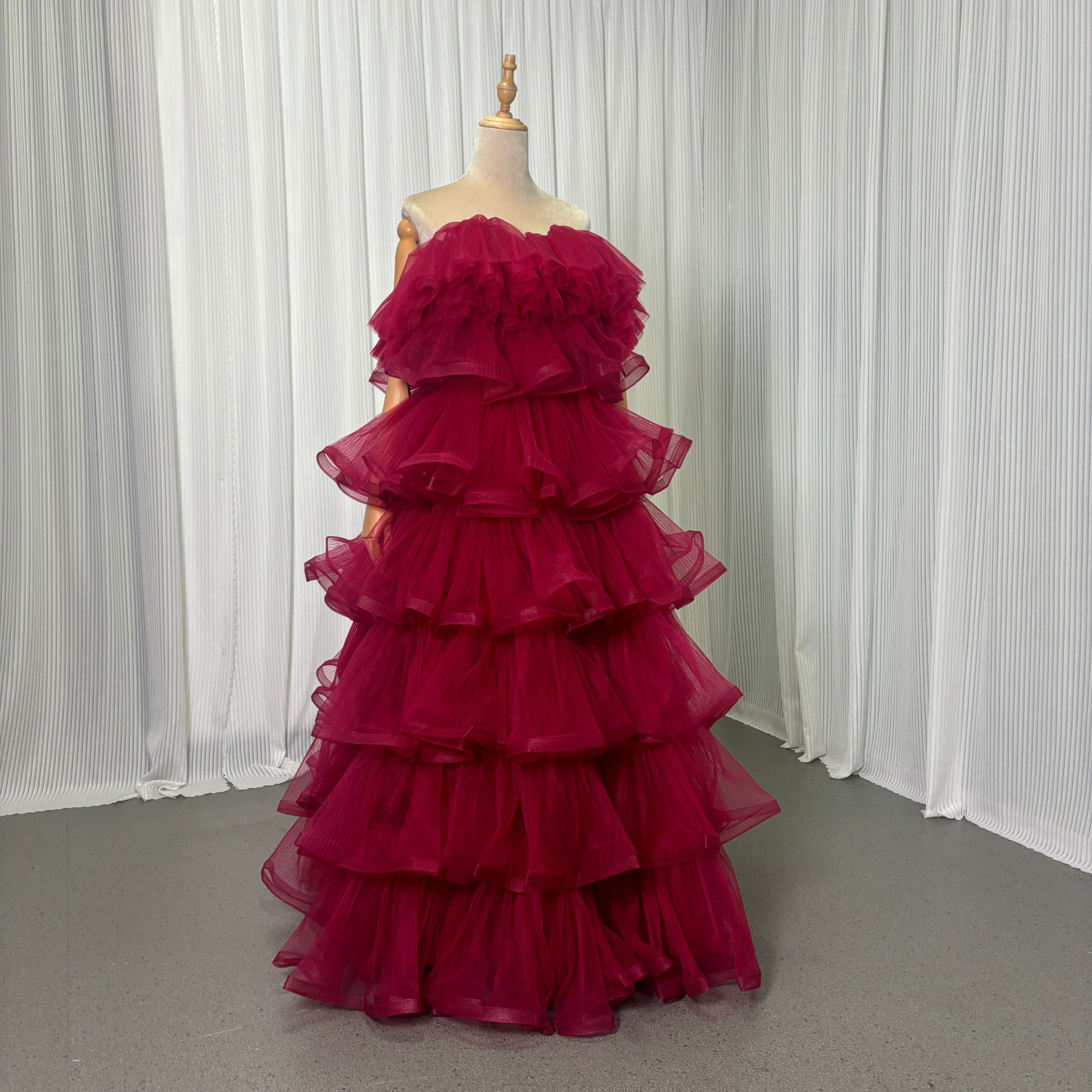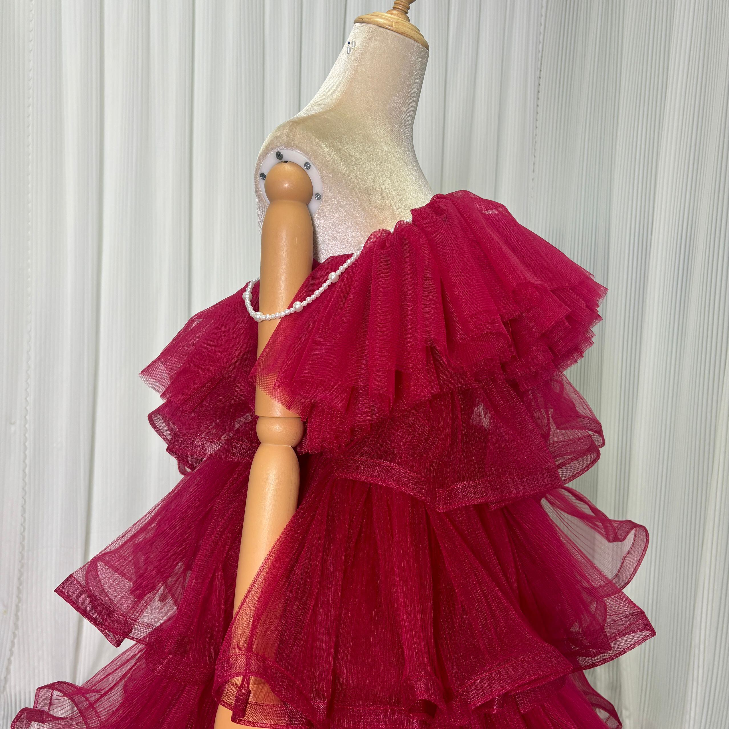 カラードレス キャミソール ビーズ えんじ色 ティアードのドレス ラッフルフリル 前撮り 二次会 ロング