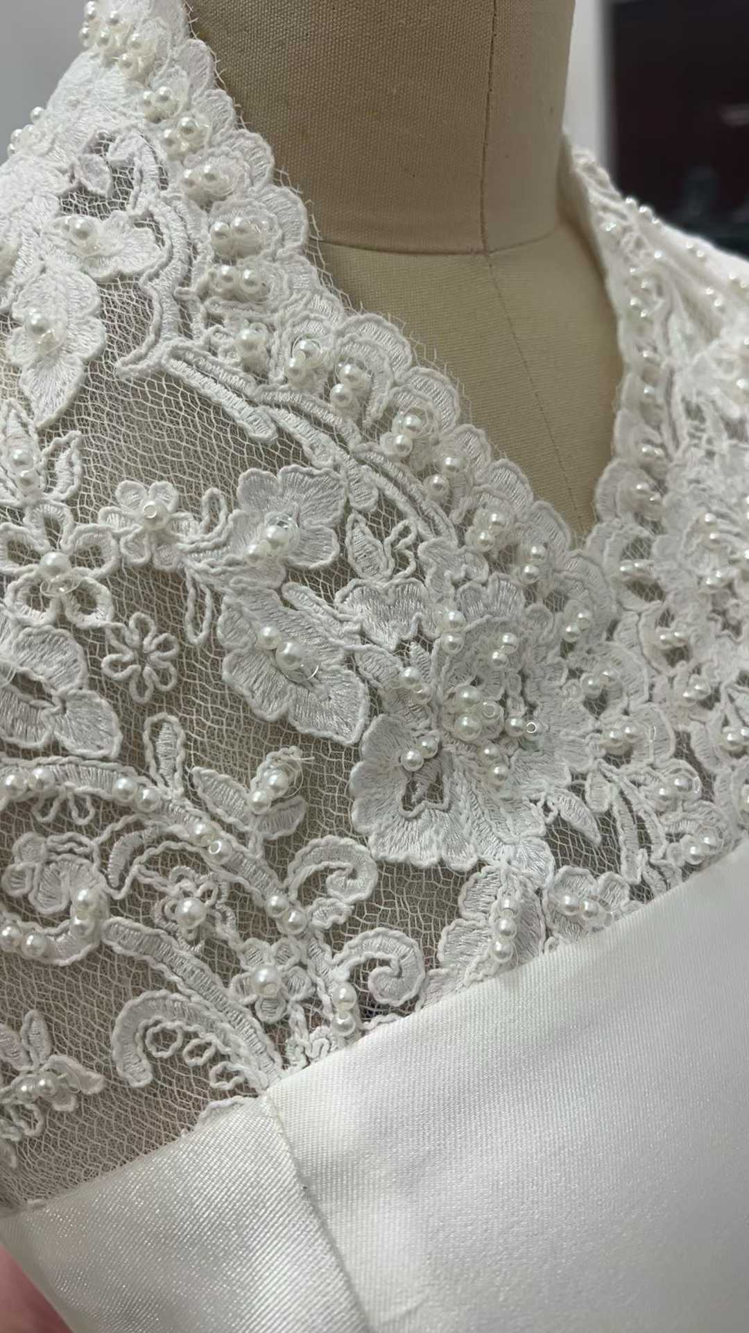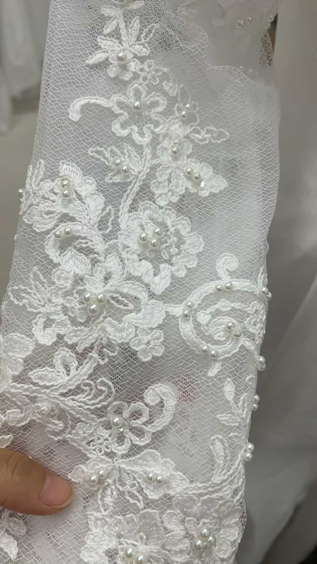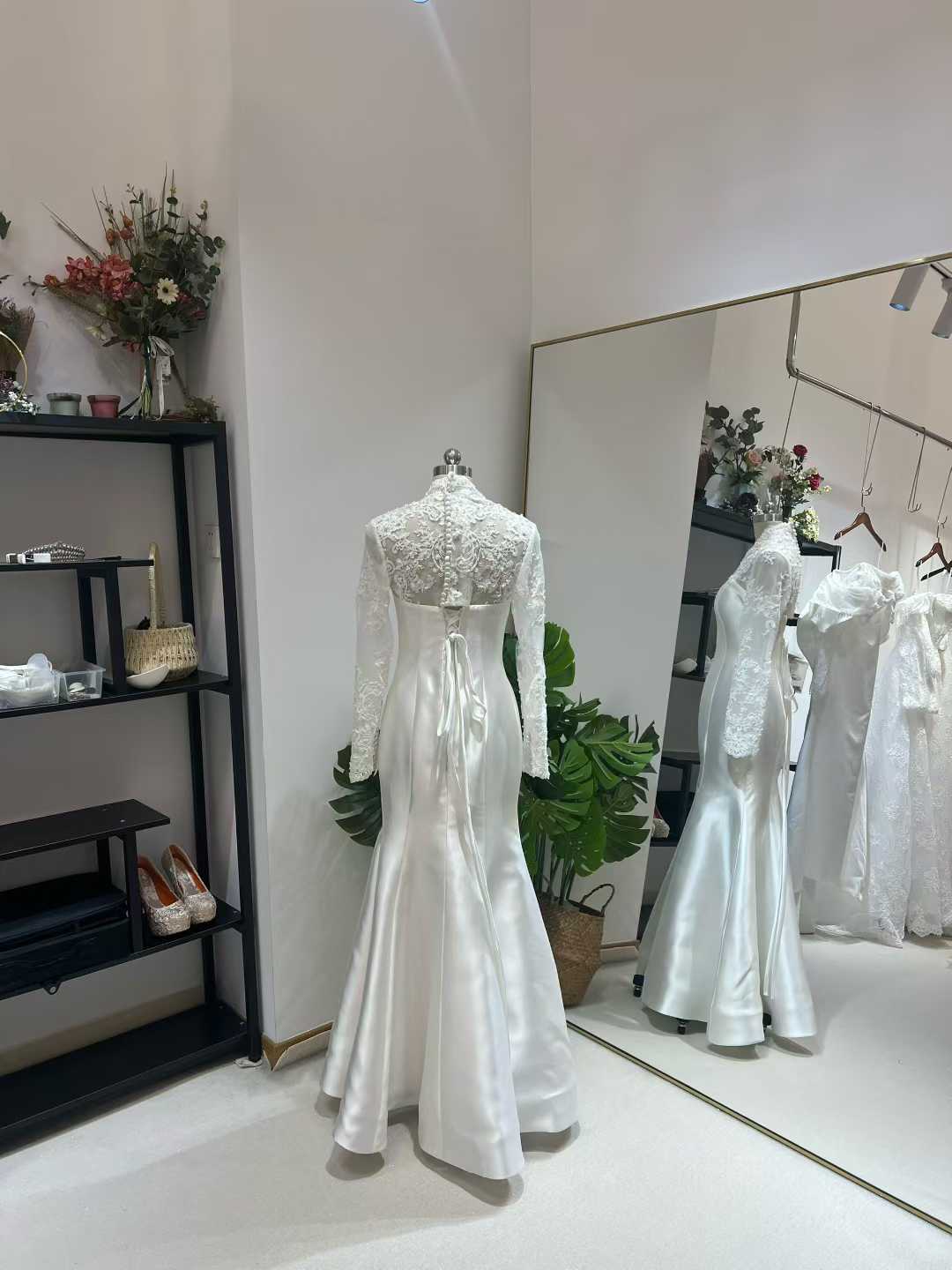 ウェディングドレス ミカドサテン ロングスリーブ マーメイドライン 床付く 結婚式 エレガント 魅惑の花レース